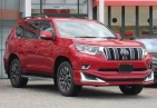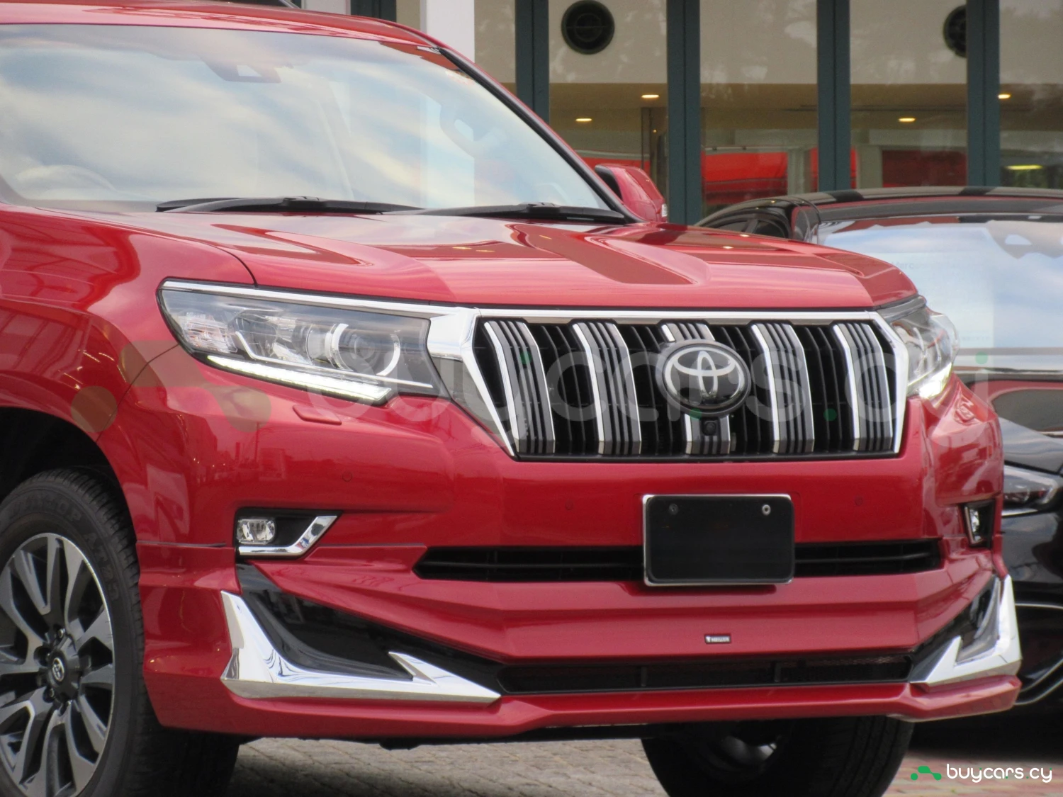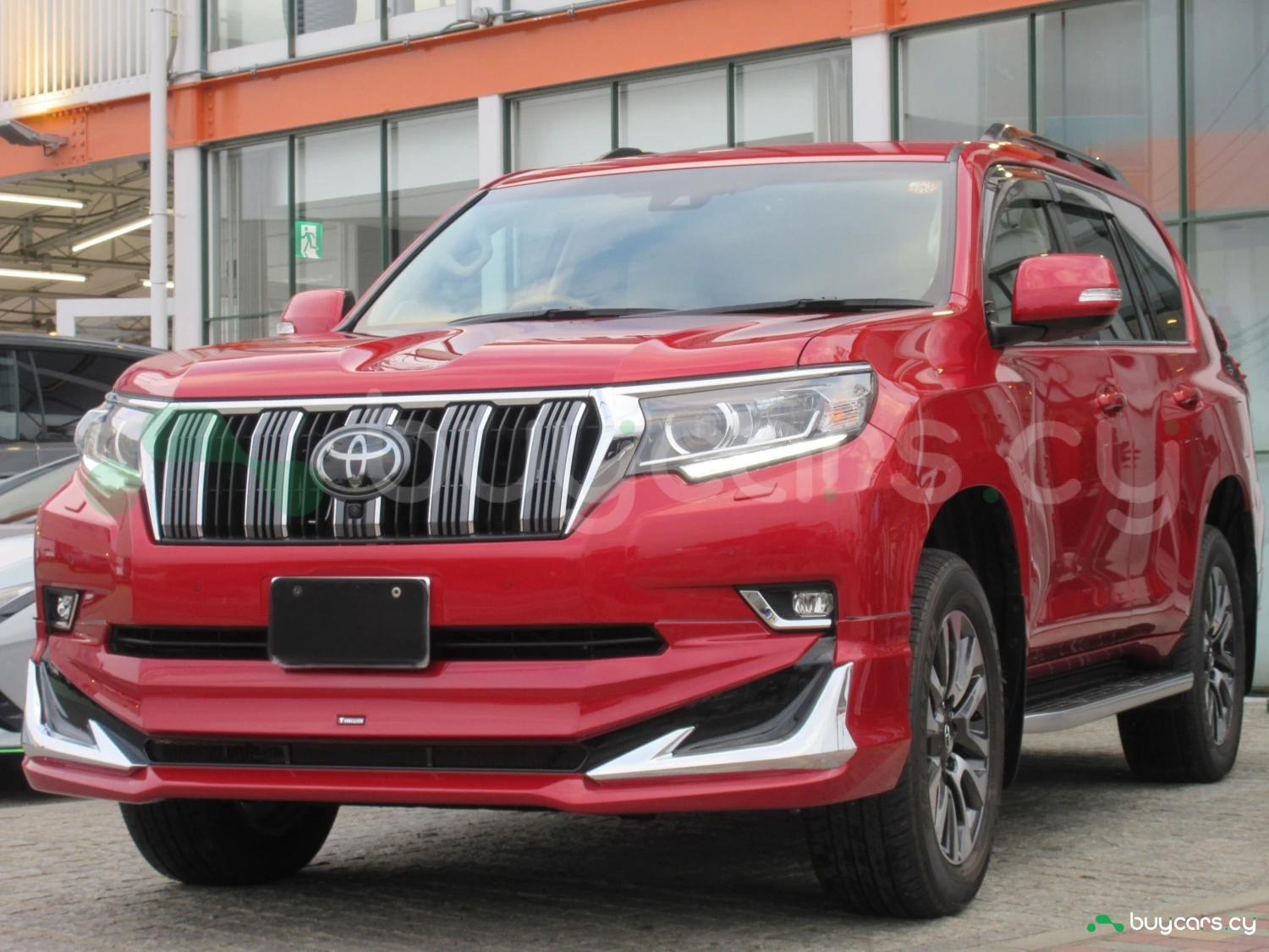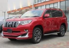 The Red Mica Metallic body combined with the Modellista aero kit, roof rails, and stylish alloy wheels gives the Prado a bold and sophisticated appearance, emphasizing its premium off-road character.