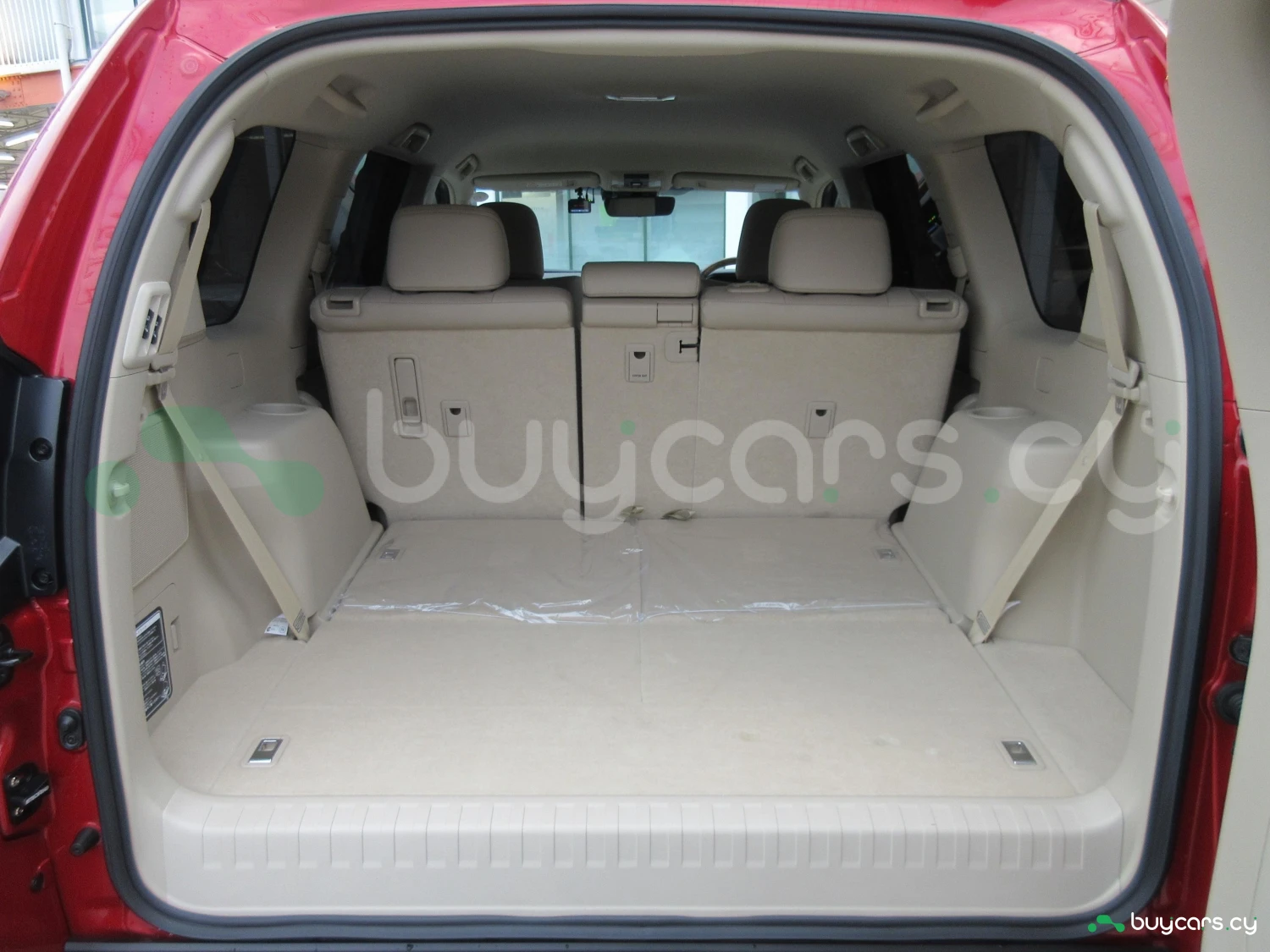 Off-road SUV, 5 doors, 7 seats, 2.8L diesel turbo engine (2800cc), 6-speed automatic transmission with manual mode, 4WD, right-hand drive, Red Mica Metallic, TZ-G grade, Modellista aero kit, multi-terrain monitor, multi-terrain select, electric rear differential lock, adaptive cruise control, lane keep assist, collision mitigation braking, blind spot monitor (BSM), rear traffic alert, LED adaptive headlights, front fog lights, roof rails, genuine leather seats (heated & ventilated), power seats, 3-row seating, cold weather package, navigation system, display audio (Apple CarPlay / Android Auto), ETC, dashcam, air suspension, smart key, keyless entry, power windows, dual-zone automatic air conditioning, aluminum wheels, anti-skid system, anti-theft device.