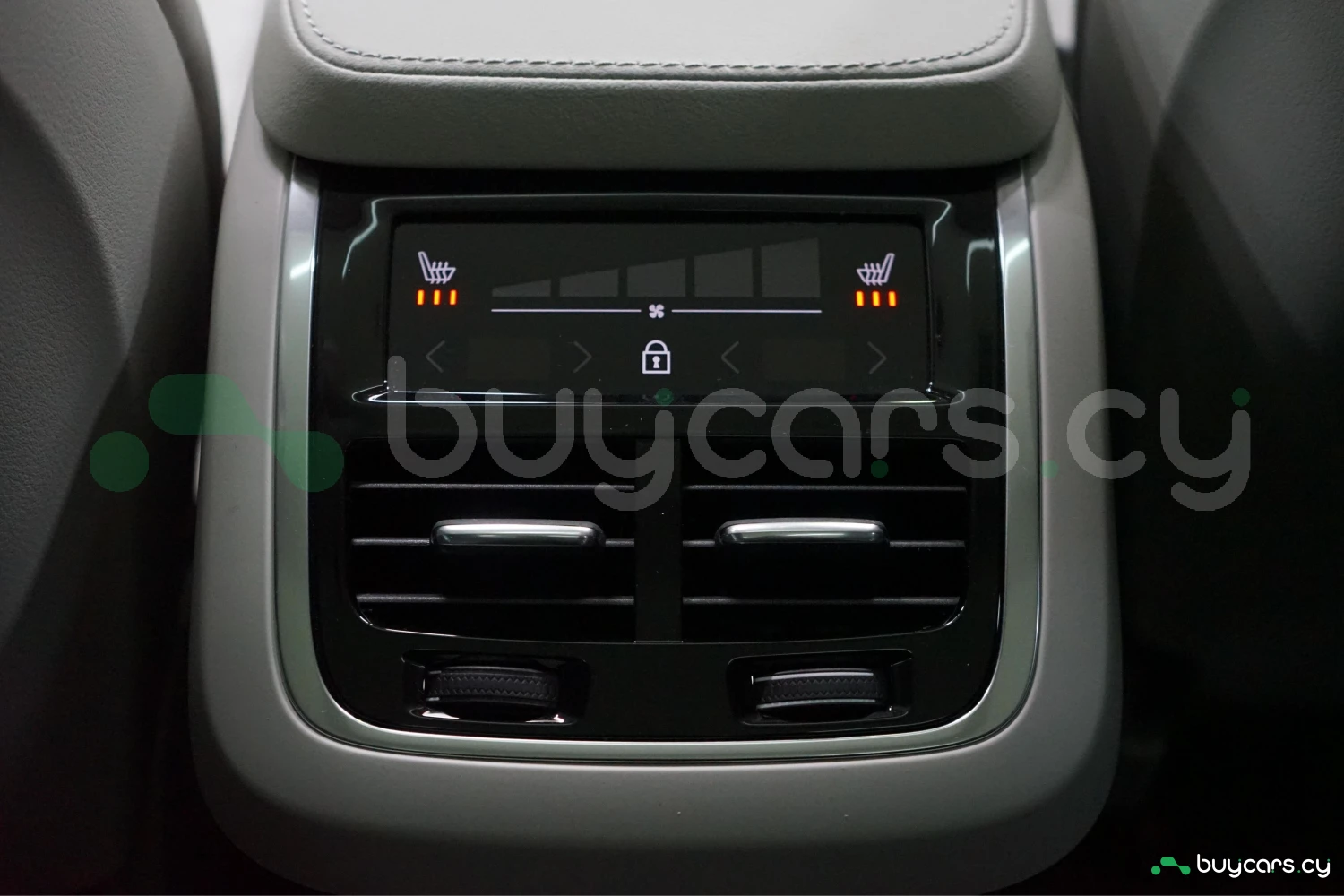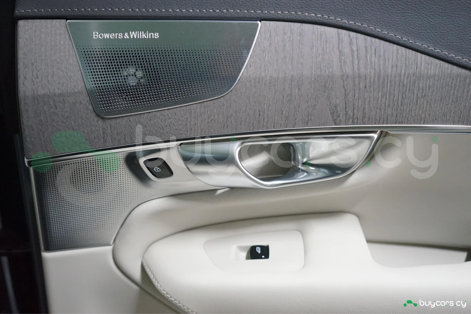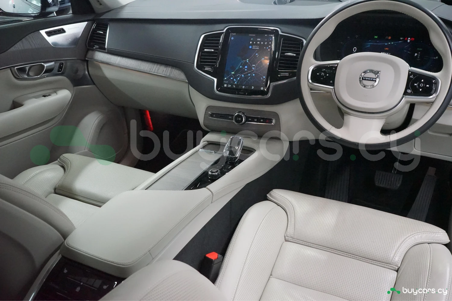 The cabin accommodates seven passengers with heated leather seats, panoramic sunroof, Bowers & Wilkins audio, and Volvo Intellisafe. Navigation, Bluetooth, USB connectivity, and a power back door enhance convenience.