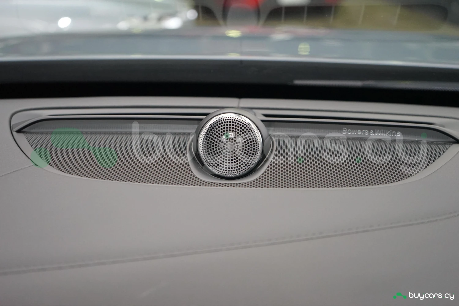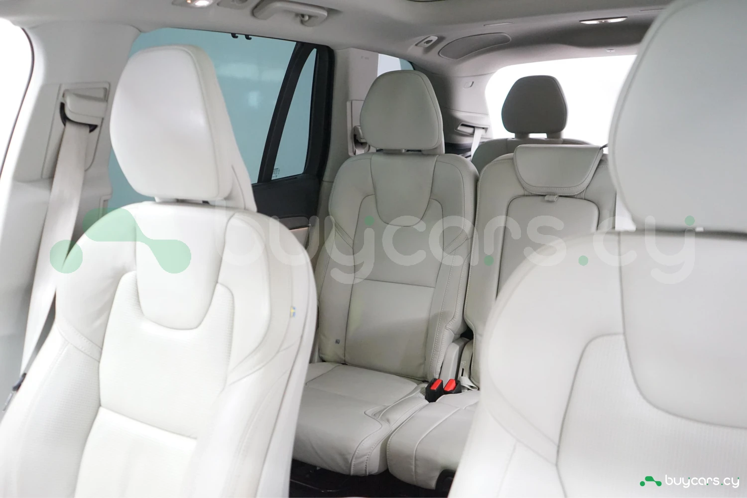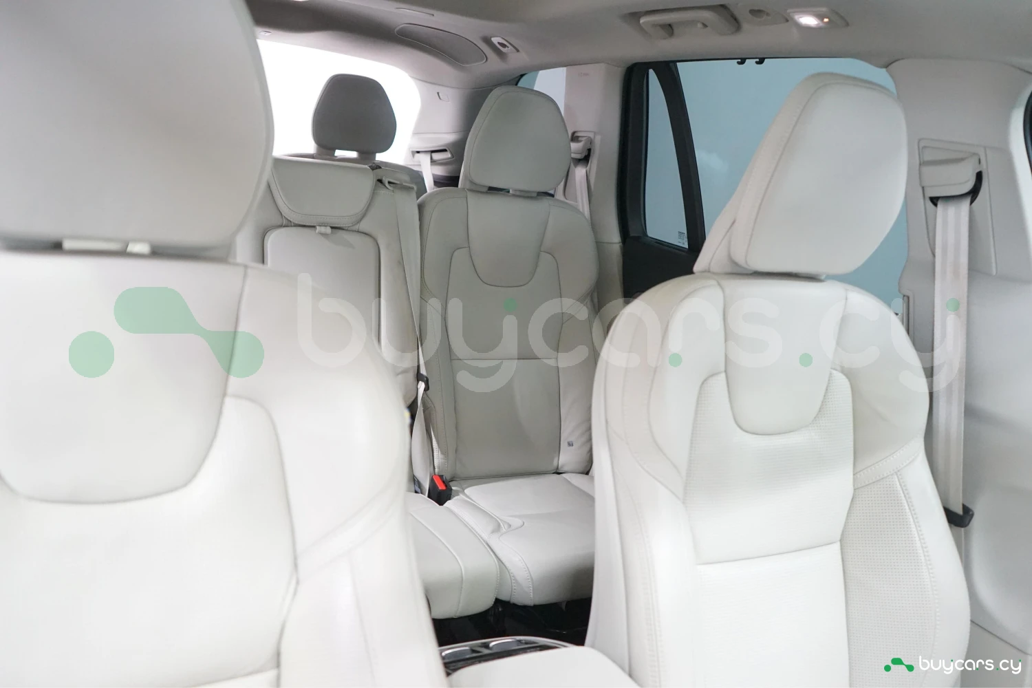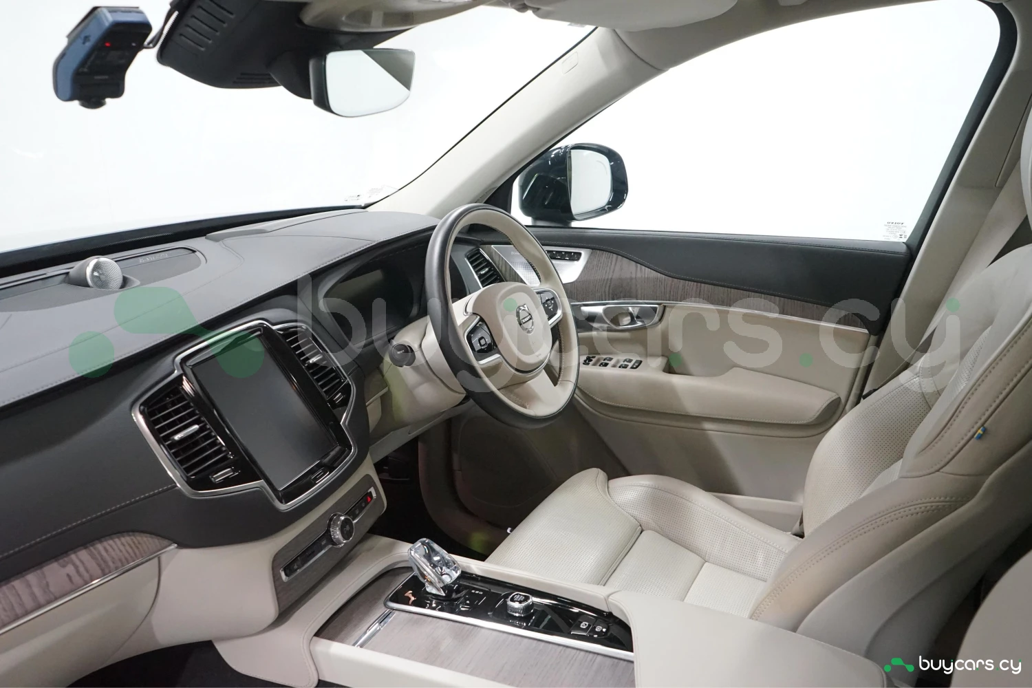 The cabin accommodates seven passengers with heated leather seats, panoramic sunroof, Bowers & Wilkins audio, and Volvo Intellisafe. Navigation, Bluetooth, USB connectivity, and a power back door enhance convenience.