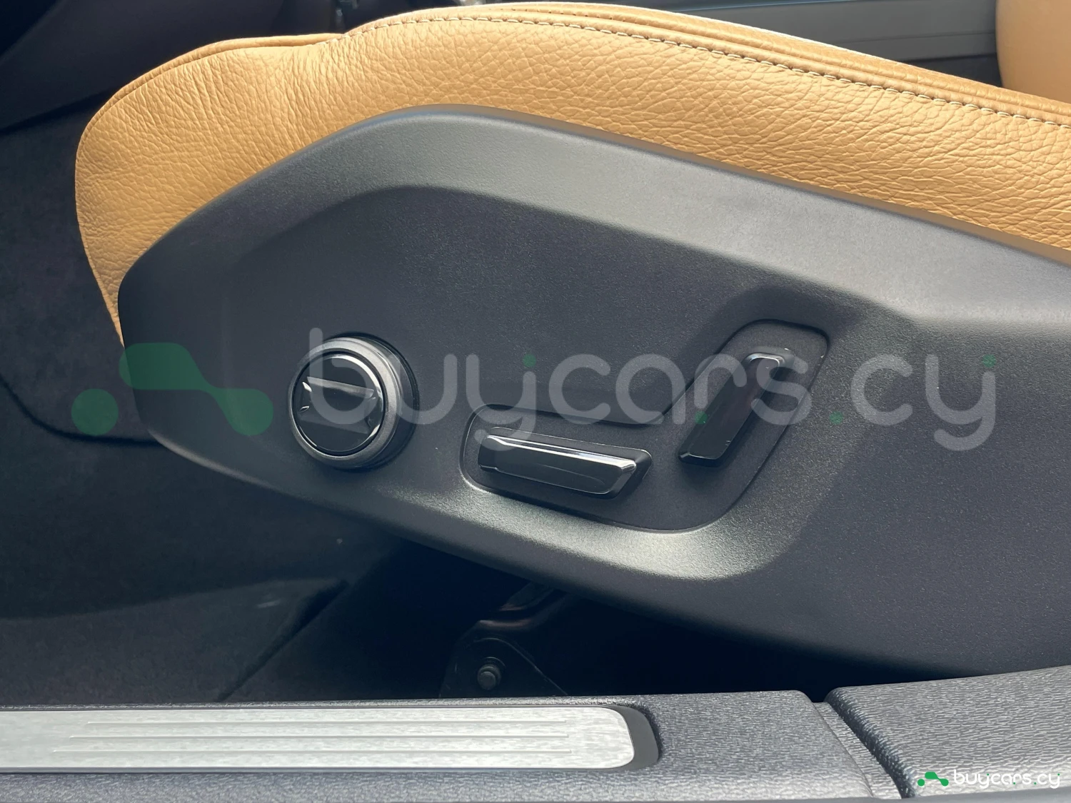 The cabin features charcoal interior trim, combining modern design with premium comfort. Equipment includes leather package, power-adjustable seats, dual-zone automatic climate control, and a multifunction steering wheel. The spacious 5-seat interior ensures both driver and passengers enjoy comfort and practicality.