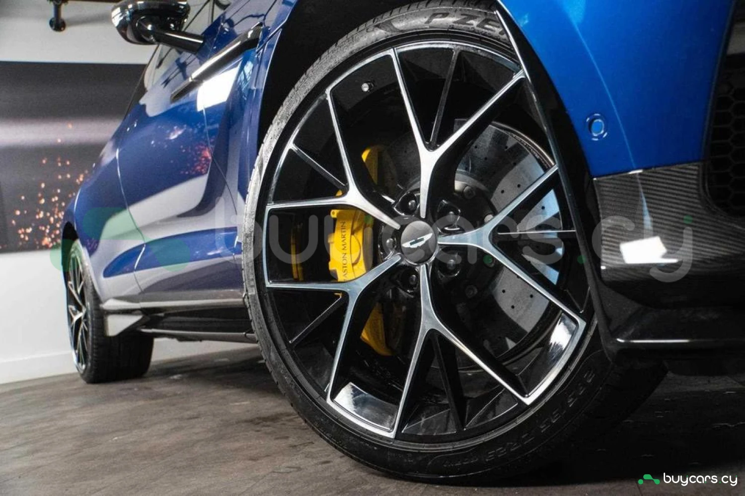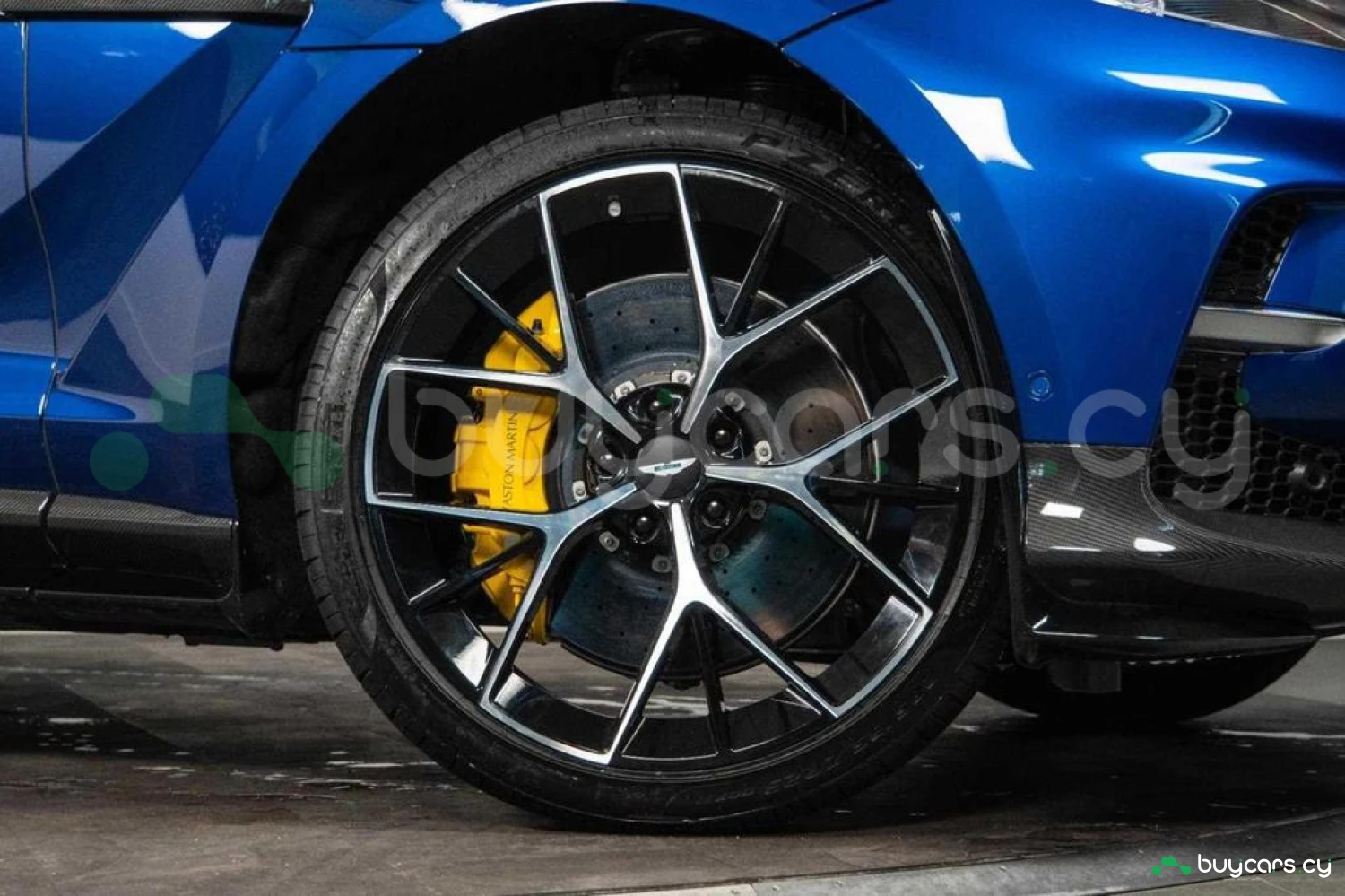 Экстерьер и колеса: 23-дюймовые алмазно-фрезерованные легкосплавные диски Fortis, карбоновый аэродинамический пакет (верхний и нижний) для агрессивного дизайна, желтые тормозные суппорты, тонированные задние фонари, черные эмблемы Aston Martin, акустическое тонированное стекло для улучшенной шумоизоляции.