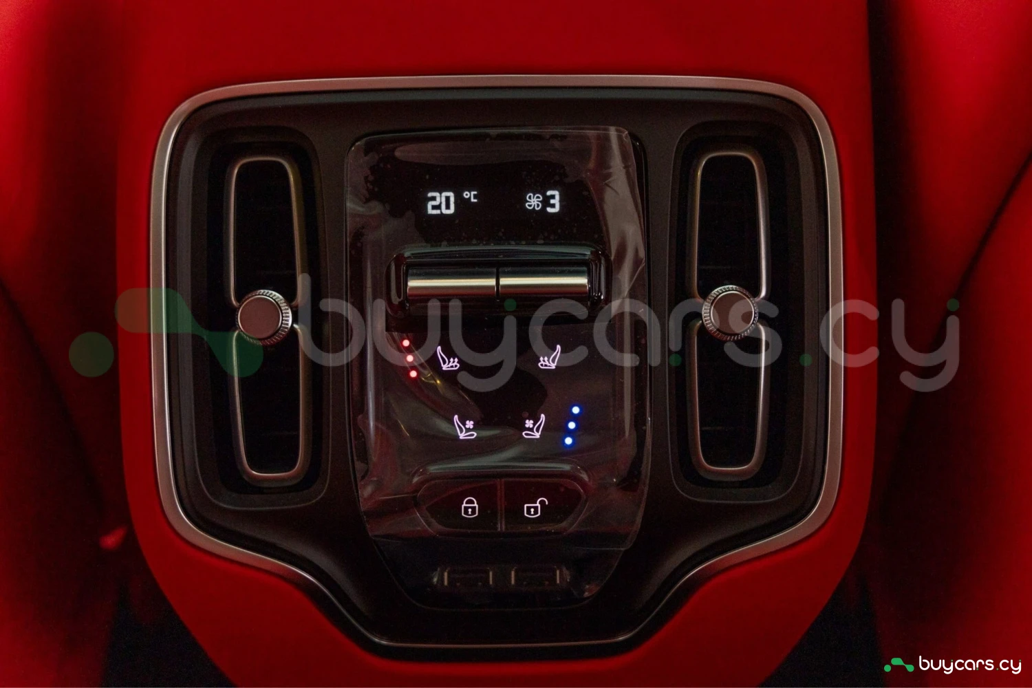 Салон рассчитан на 5 человек и отделан кожей Spicy Red премиального качества. Передние и задние сиденья оснащены функциями подогрева и вентиляции, а панорамная крыша создаёт ощущение простора и света.