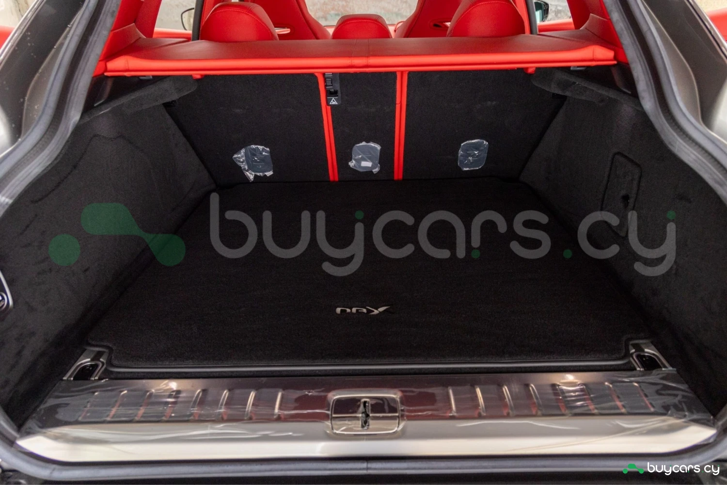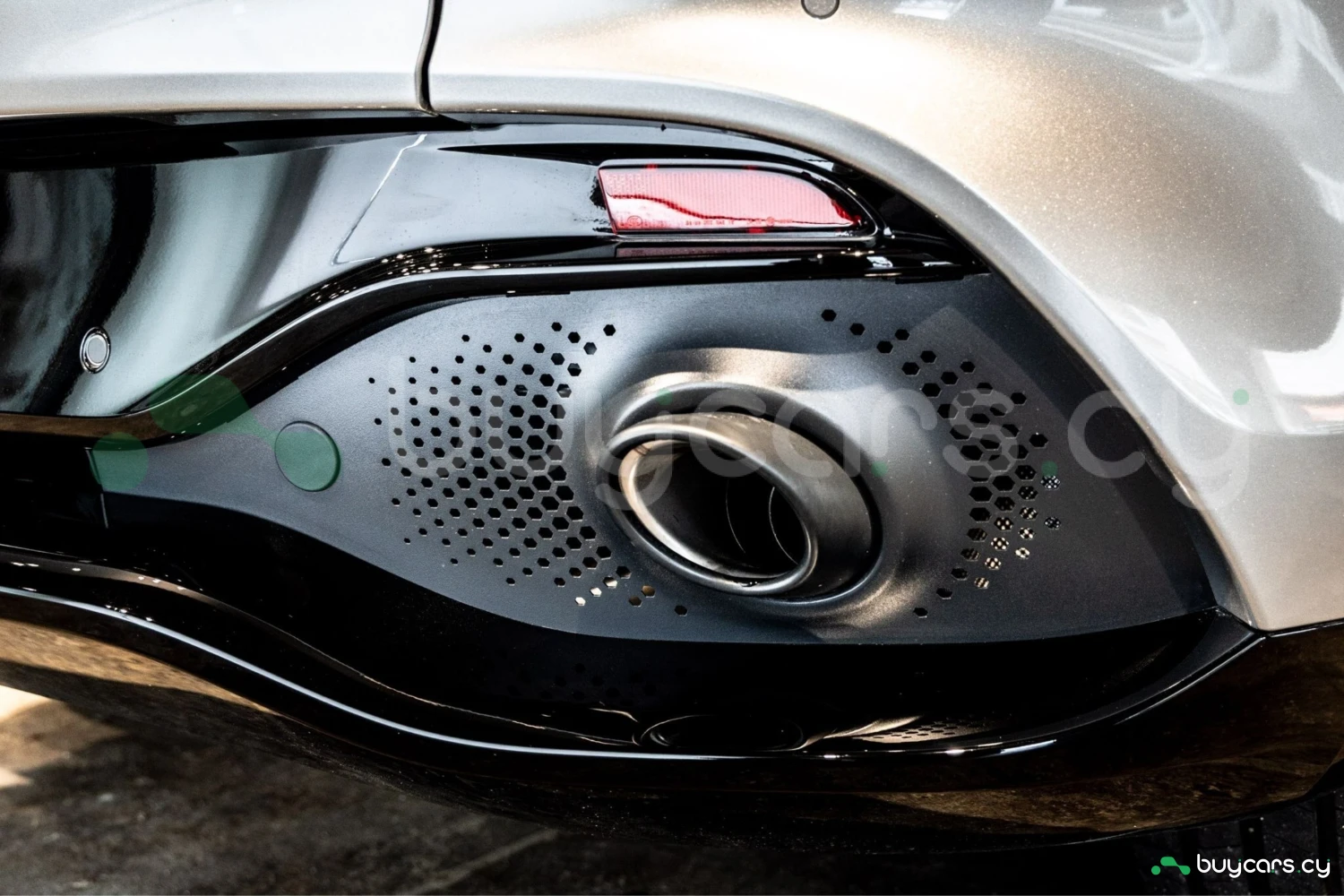 Серый кузов с чёрными эмблемами подчёркивает спортивный характер модели. 23-дюймовые диски, красные тормозные суппорты и панорамная крыша завершают выразительный и премиальный внешний вид.
