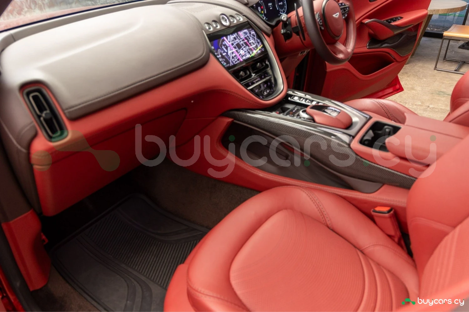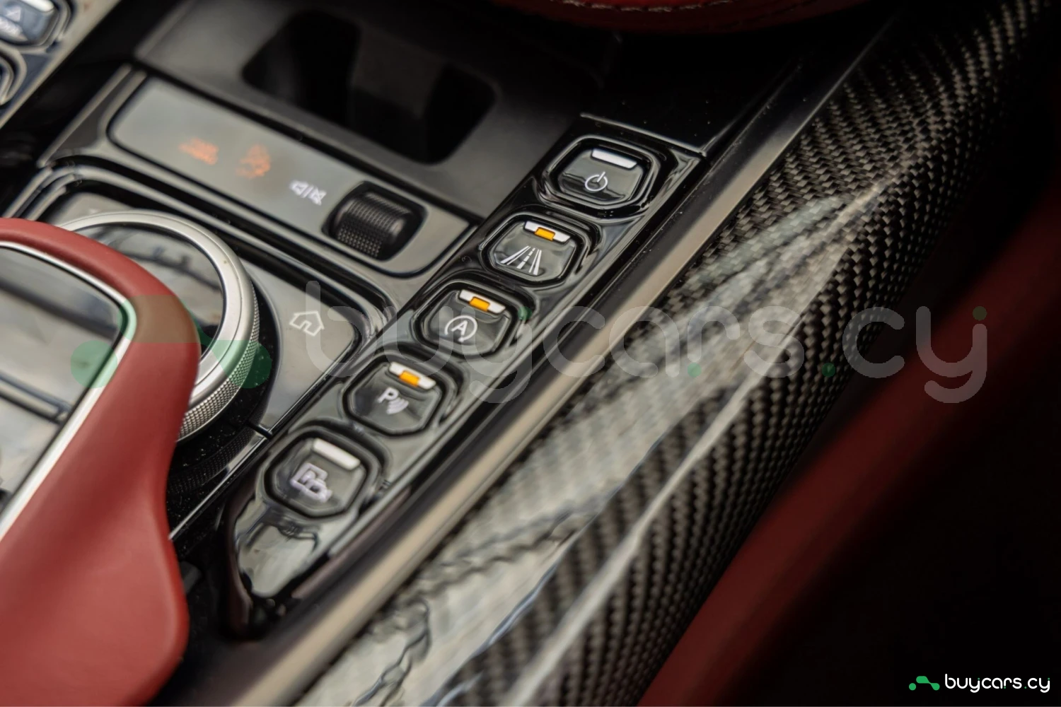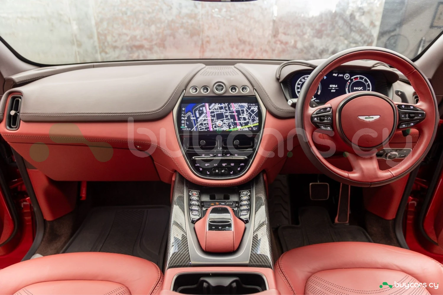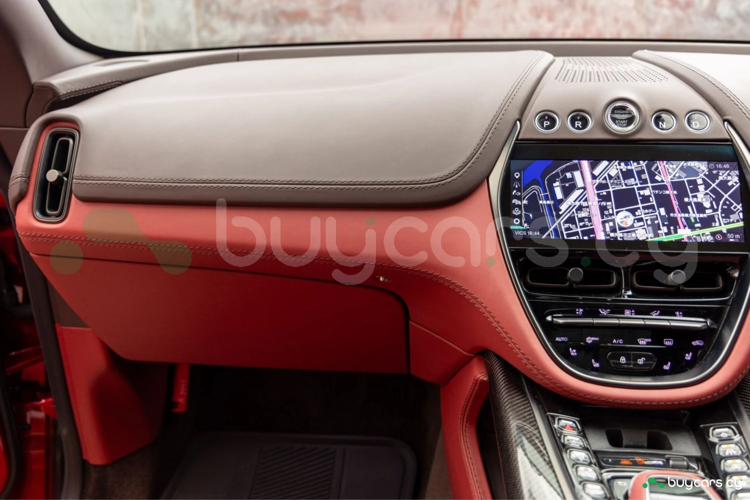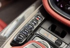 Салон рассчитан на пять человек и отделан Duotone Leather (Red/Brown) с leather roof liner и элементами Carbon Interior. Из оборудования — Heated & Ventilated Seats, Seat air conditioning, Seat heater, электрические регулировки сидений, TV: Full-segment, Display audio с поддержкой Apple CarPlay/Android Auto, Car navigation system (HDD) и dashcam. Для удобства предусмотрены Keyless, Smart key, Power windows и возможность подключения музыкального плеера.