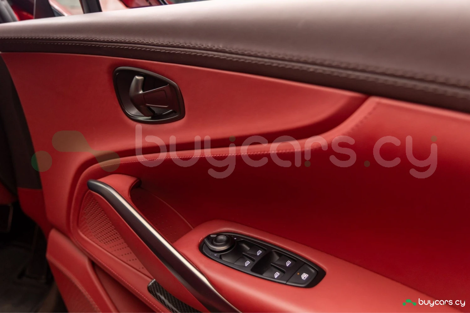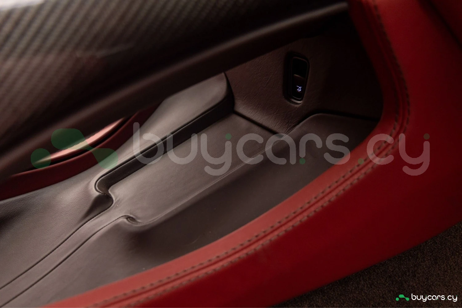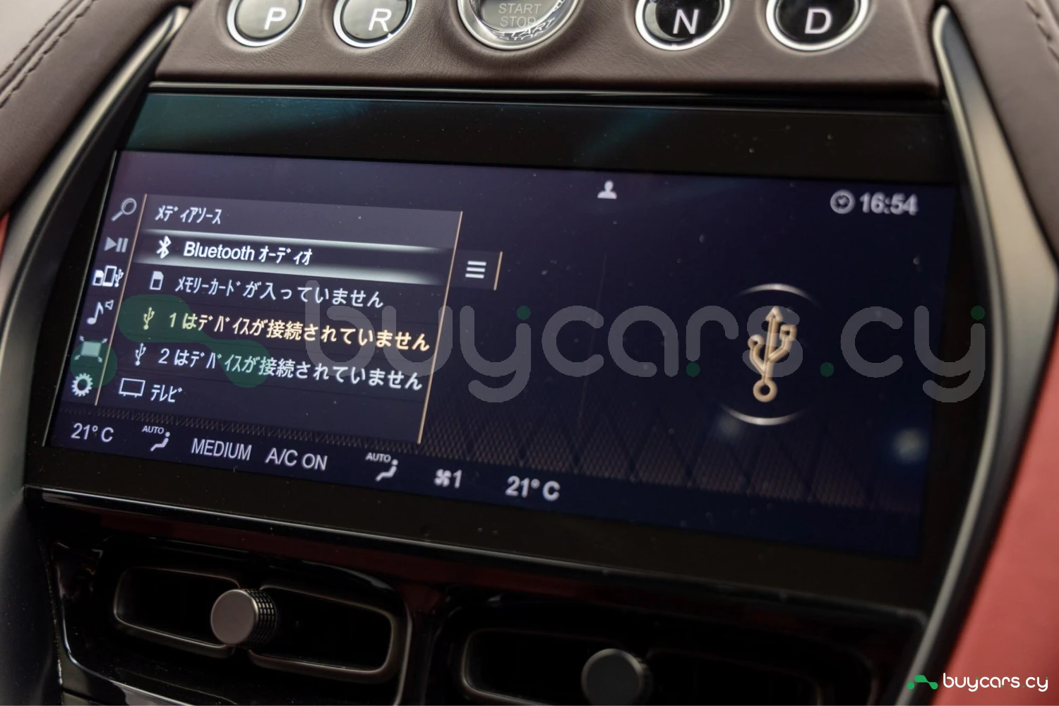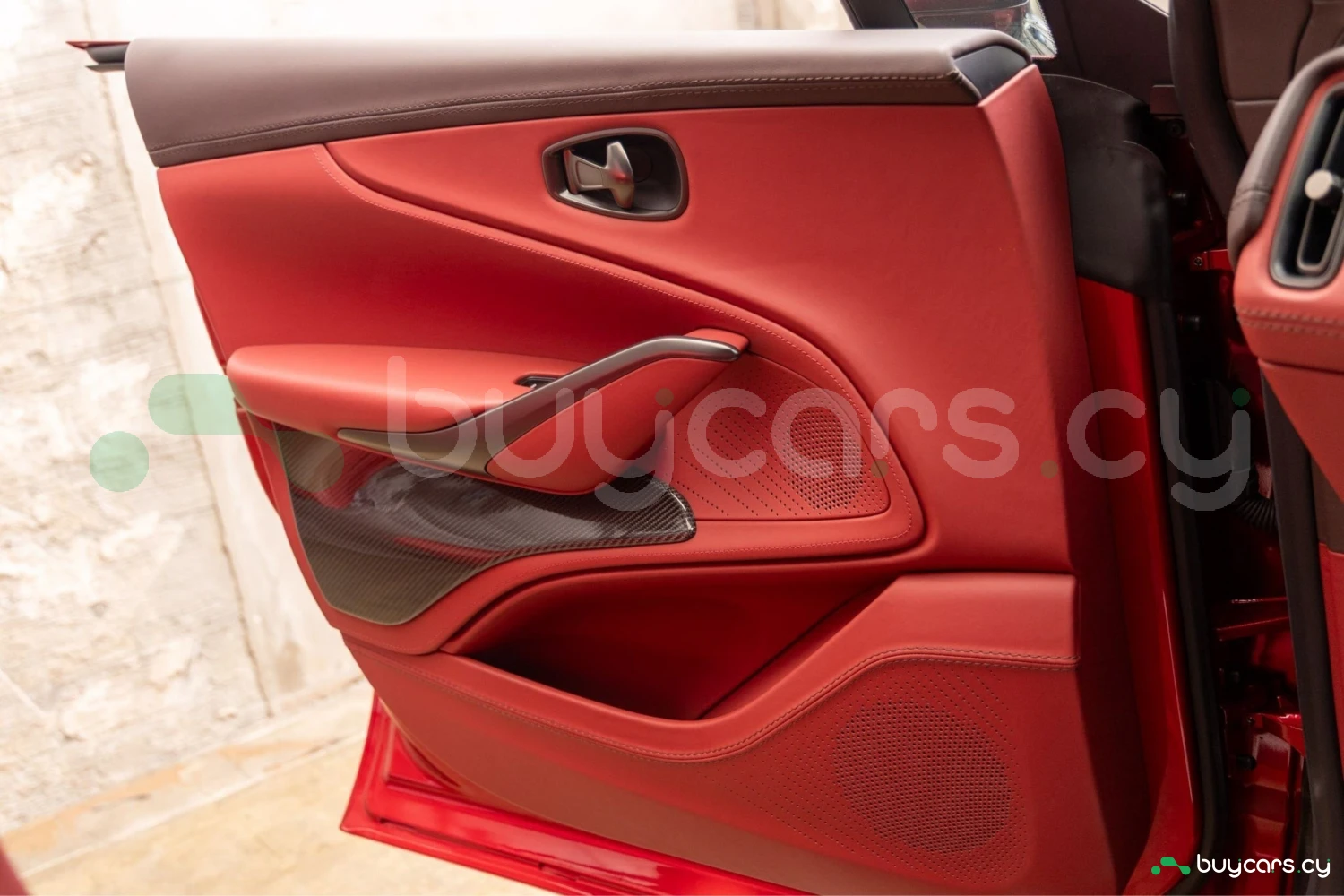 Салон рассчитан на пять человек и отделан Duotone Leather (Red/Brown) с leather roof liner и элементами Carbon Interior. Из оборудования — Heated & Ventilated Seats, Seat air conditioning, Seat heater, электрические регулировки сидений, TV: Full-segment, Display audio с поддержкой Apple CarPlay/Android Auto, Car navigation system (HDD) и dashcam. Для удобства предусмотрены Keyless, Smart key, Power windows и возможность подключения музыкального плеера.
