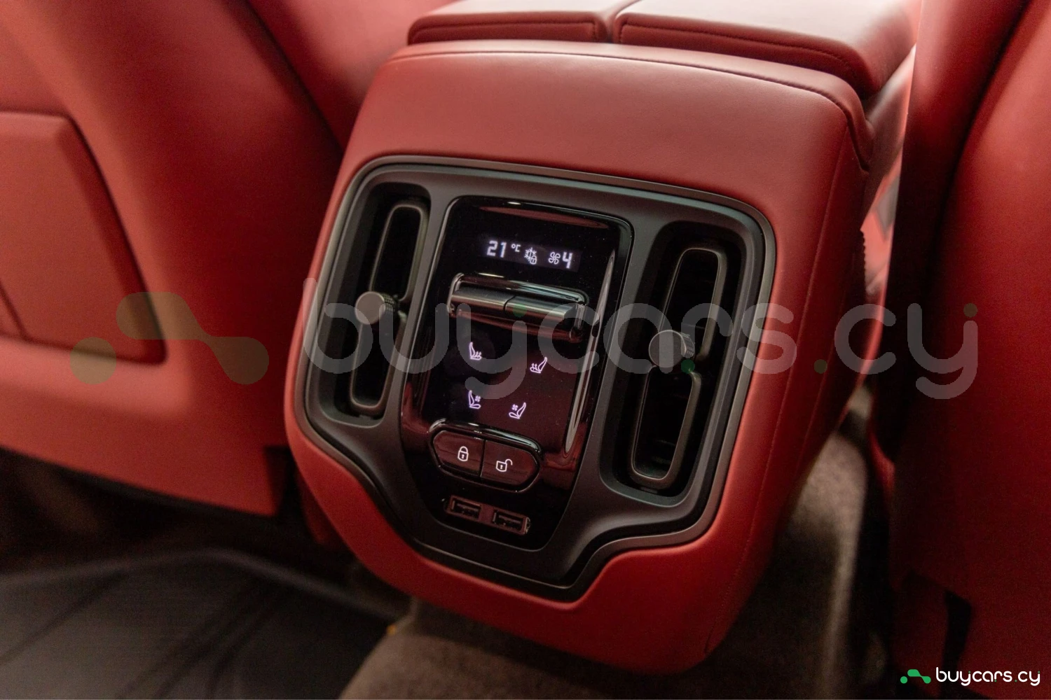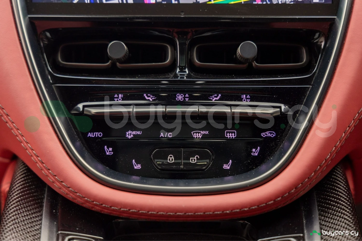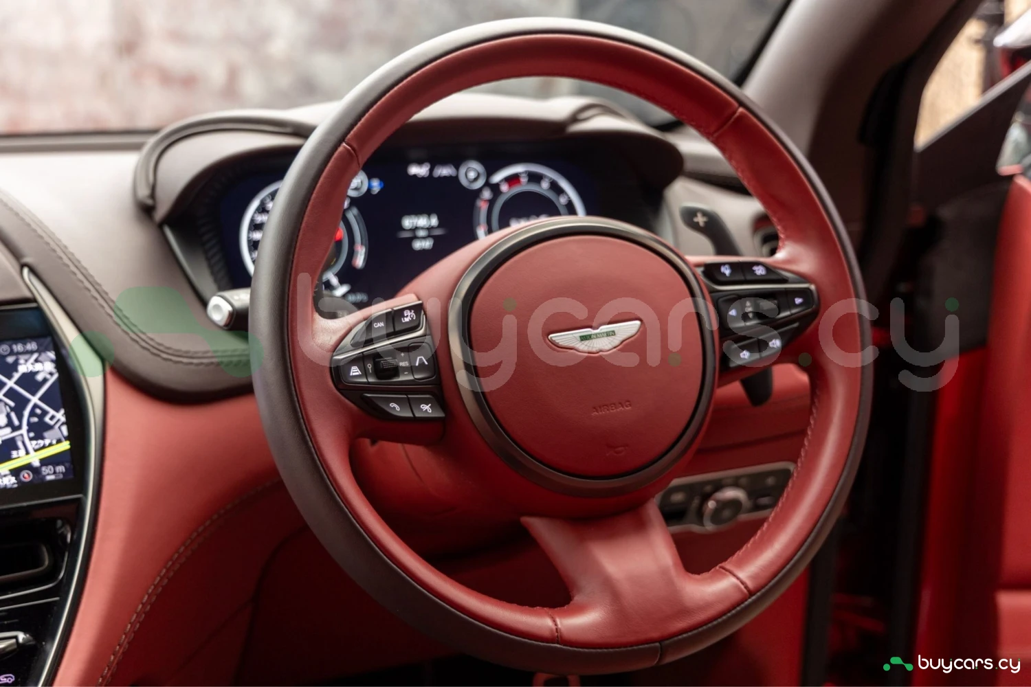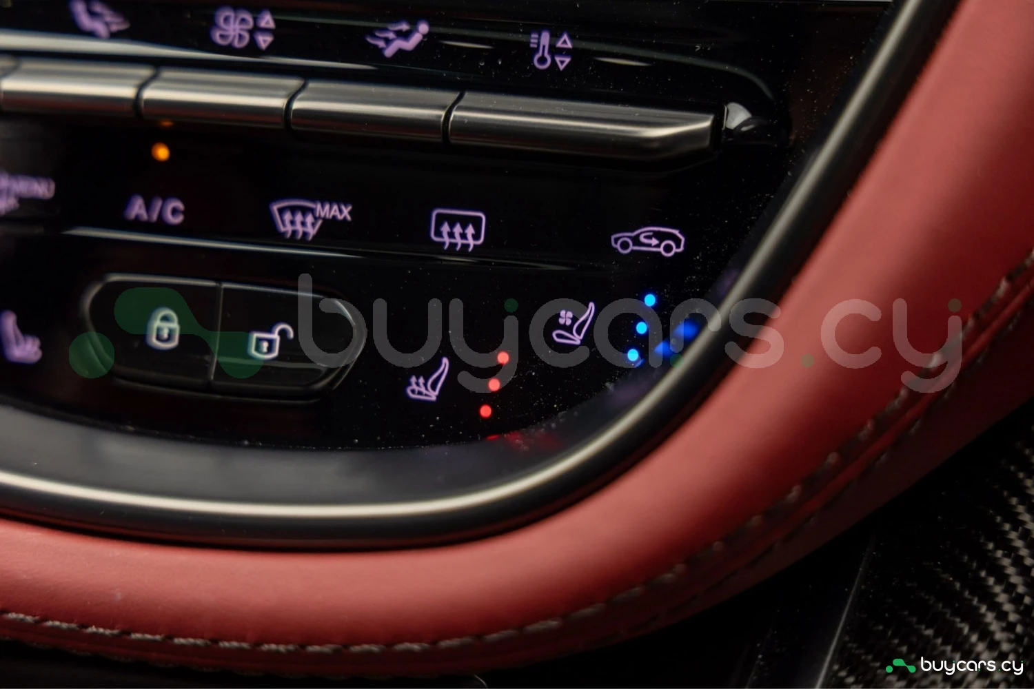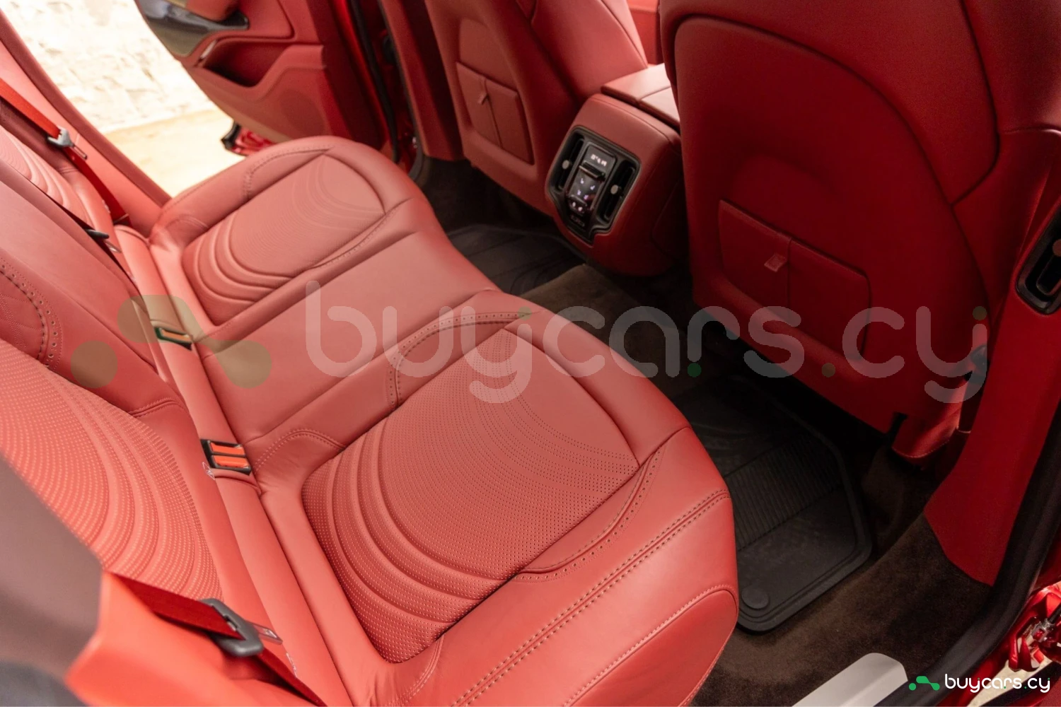 Салон рассчитан на пять человек и отделан Duotone Leather (Red/Brown) с leather roof liner и элементами Carbon Interior. Из оборудования — Heated & Ventilated Seats, Seat air conditioning, Seat heater, электрические регулировки сидений, TV: Full-segment, Display audio с поддержкой Apple CarPlay/Android Auto, Car navigation system (HDD) и dashcam. Для удобства предусмотрены Keyless, Smart key, Power windows и возможность подключения музыкального плеера.