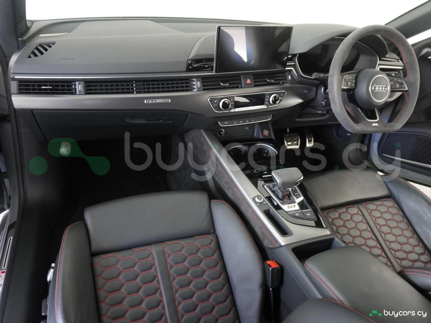 Экстерьер: матричные светодиодные фары, 20-дюймовые легкосплавные диски, элегантный дизайн кузова, противотуманные фары, стильные бамперы, цвет кузова "Nardo Gray", электроприводные зеркала с подогревом и автоматическим складыванием, датчики дождя, черные акценты экстерьера, панорамный люк, адаптивные фары, светодиодные дневные ходовые огни, спортивная выхлопная система RS.