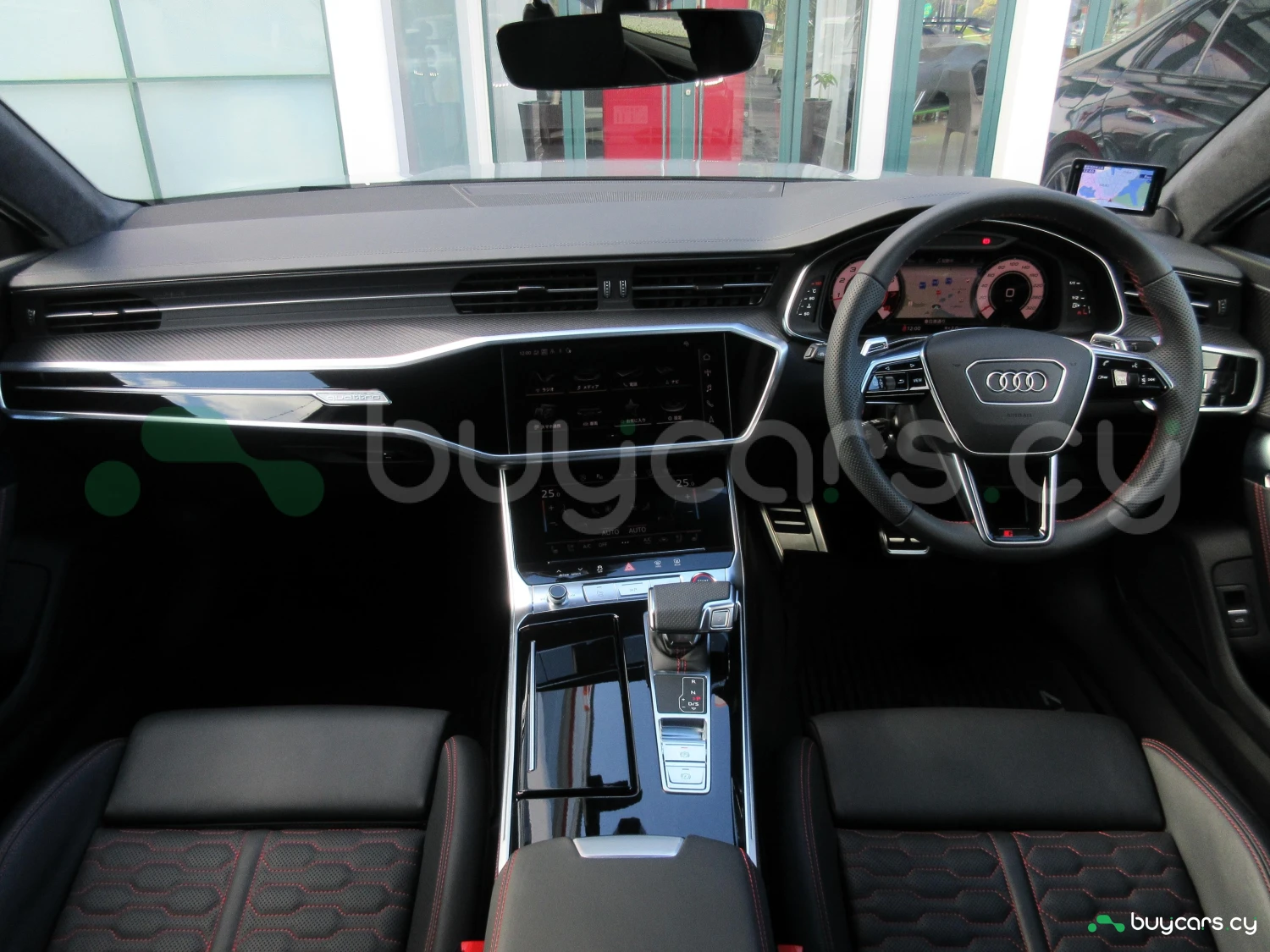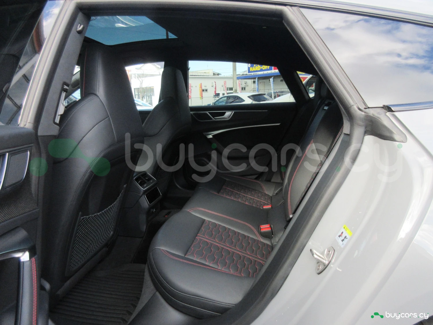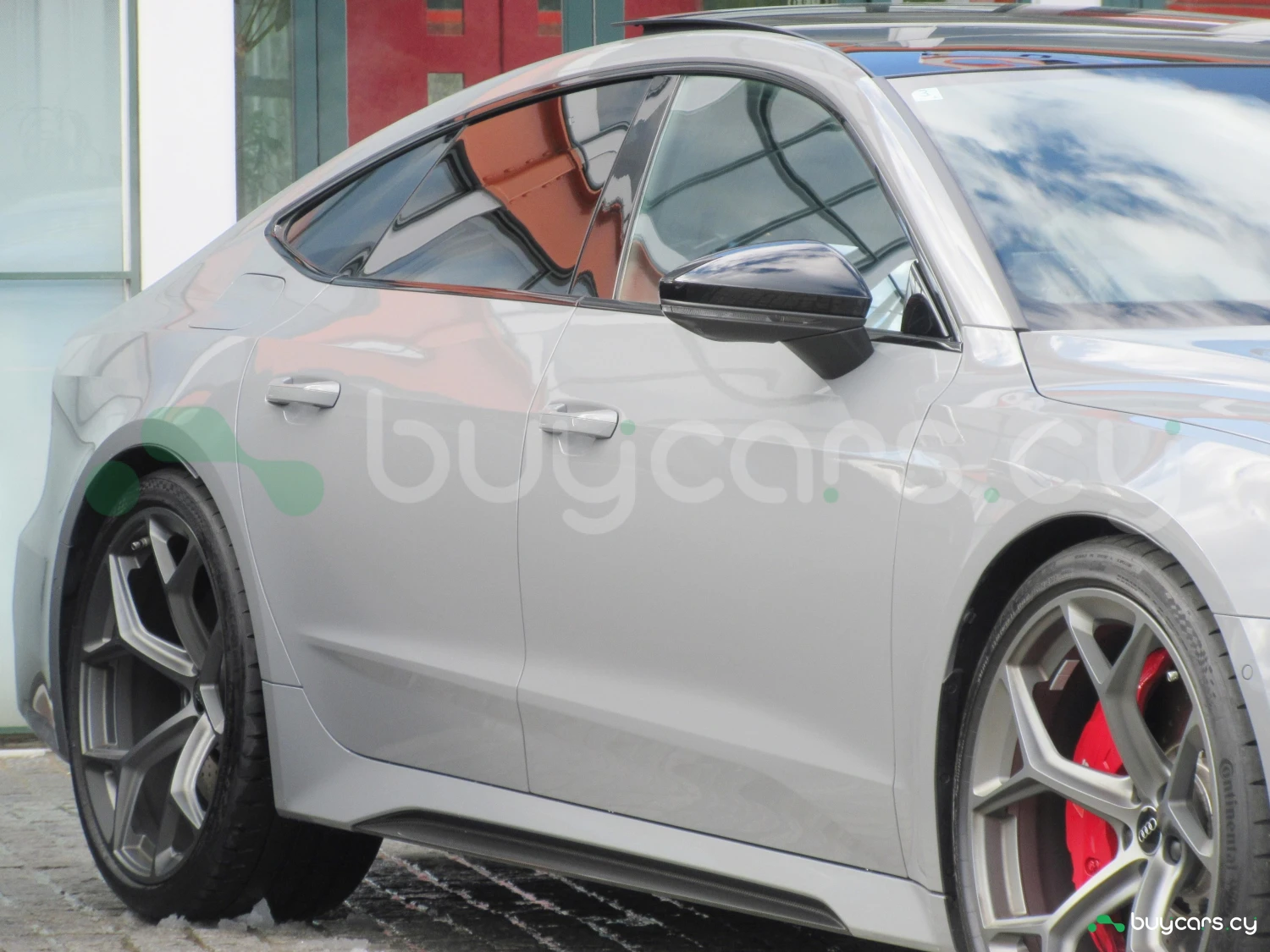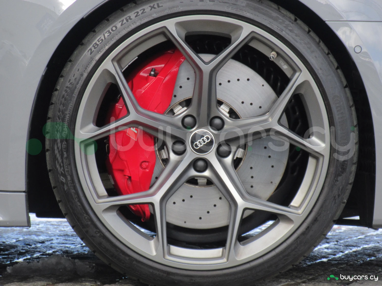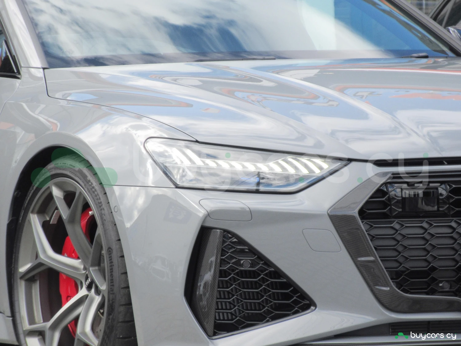 Экстерьер: Кузов цвета "Nardo Gray", глянцевые карбоновые RS-элементы, черный стилистический пакет с черными логотипами Audi, матричные светодиодные фары HD с лазерным дальним светом, 22-дюймовые легкосплавные диски 5-Y-spoke матового серого цвета, красные тормозные суппорты, адаптивная пневмоподвеска RS Sport, спортивная выхлопная система RS, панорамный люк.