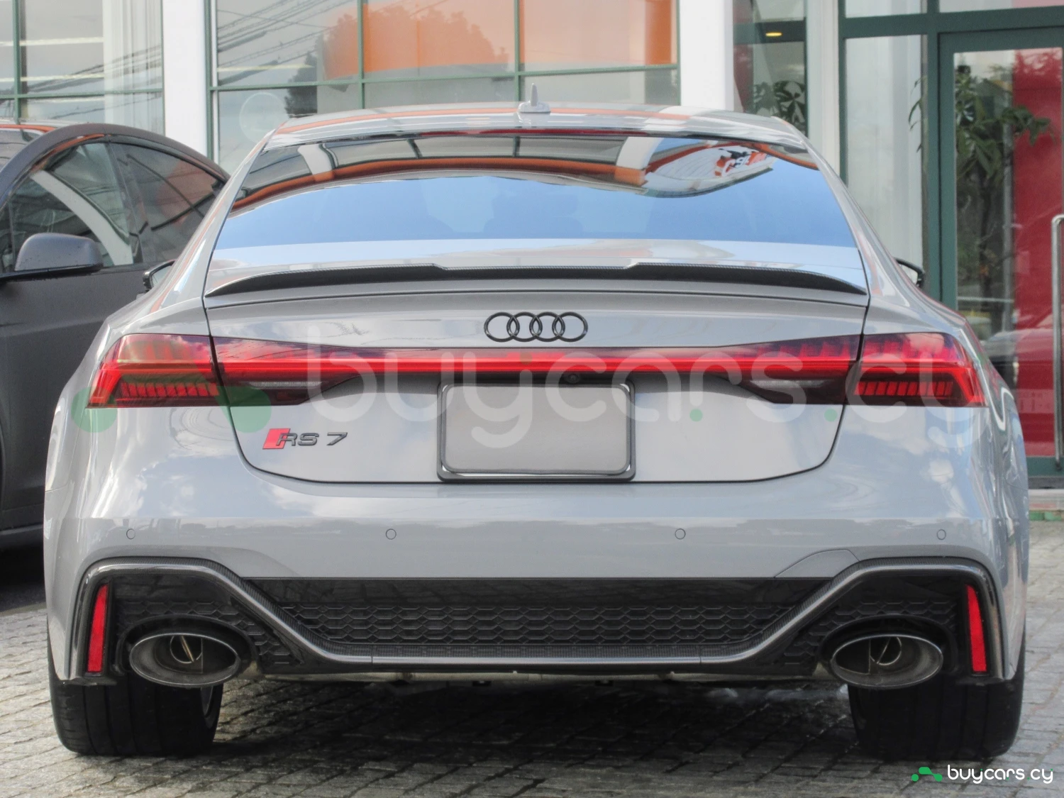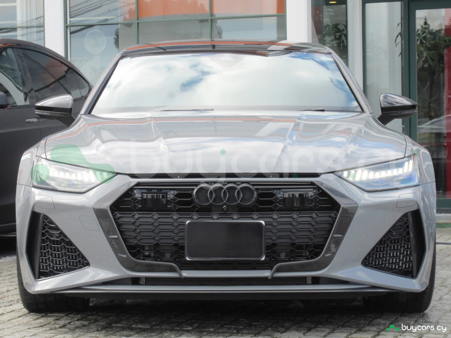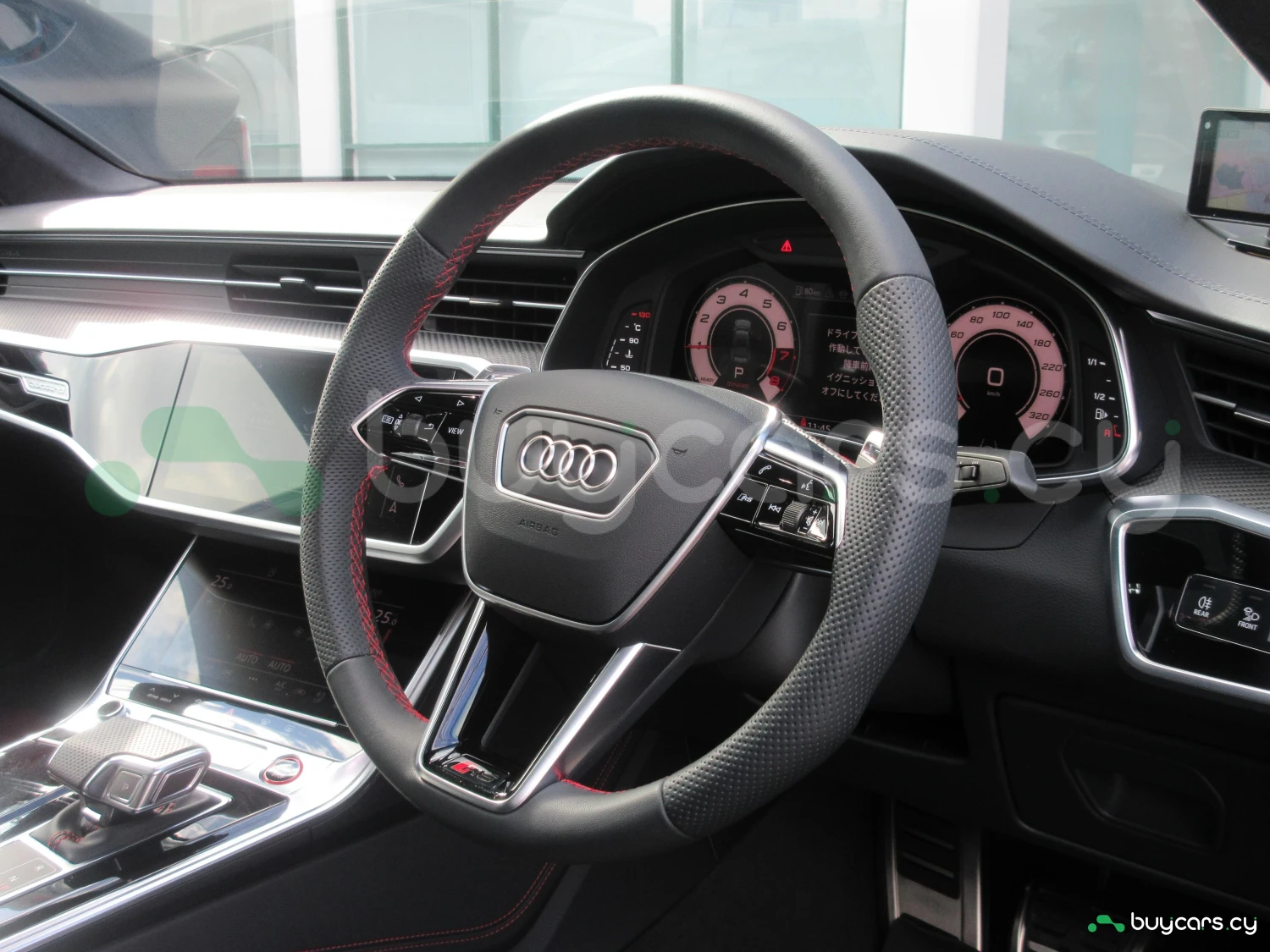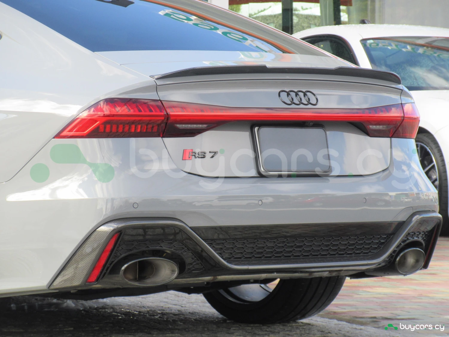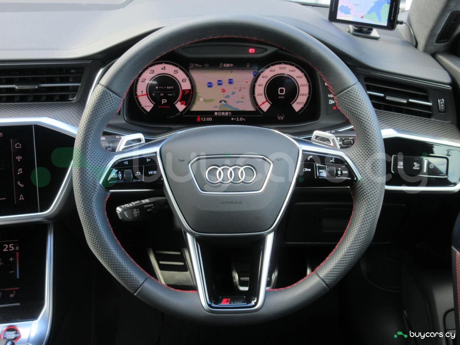 Экстерьер: Кузов цвета "Nardo Gray", глянцевые карбоновые RS-элементы, черный стилистический пакет с черными логотипами Audi, матричные светодиодные фары HD с лазерным дальним светом, 22-дюймовые легкосплавные диски 5-Y-spoke матового серого цвета, красные тормозные суппорты, адаптивная пневмоподвеска RS Sport, спортивная выхлопная система RS, панорамный люк.
