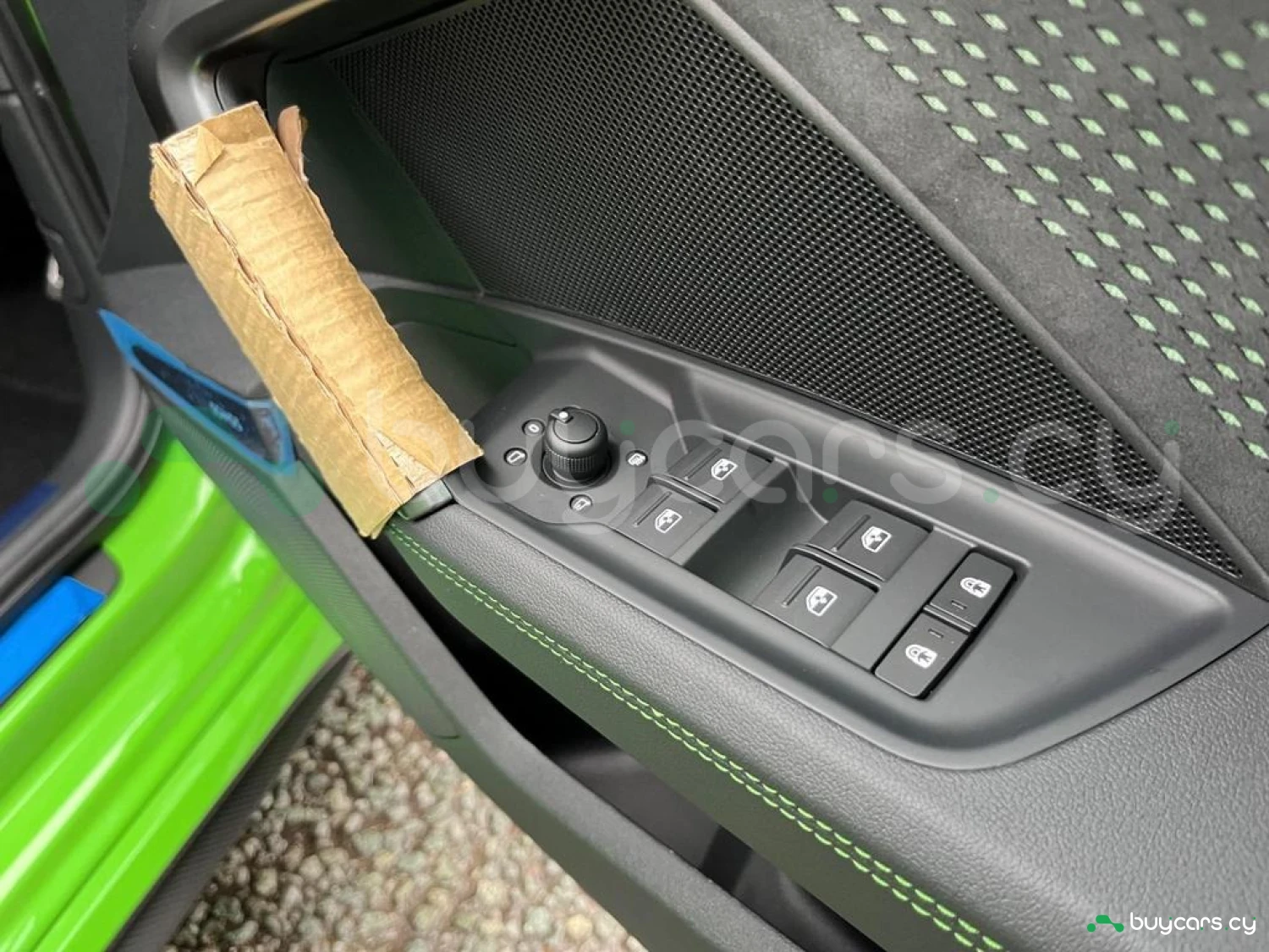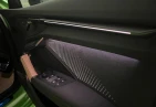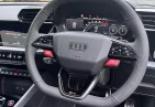 Интерьер: Салон отделан черной кожей с декоративными вставками Carbon Atlas Structure. Включает черную тканевую обивку потолка, дверные пороги с логотипом RS3, передние и задние напольные коврики, рулевое колесо с плоским верхом и низом, отделанное черной кожей с декоративными элементами Vanadium Look и логотипом RS, а также педали из нержавеющей стали. Спинка заднего сиденья складывается в пропорции 60:40 или полностью.