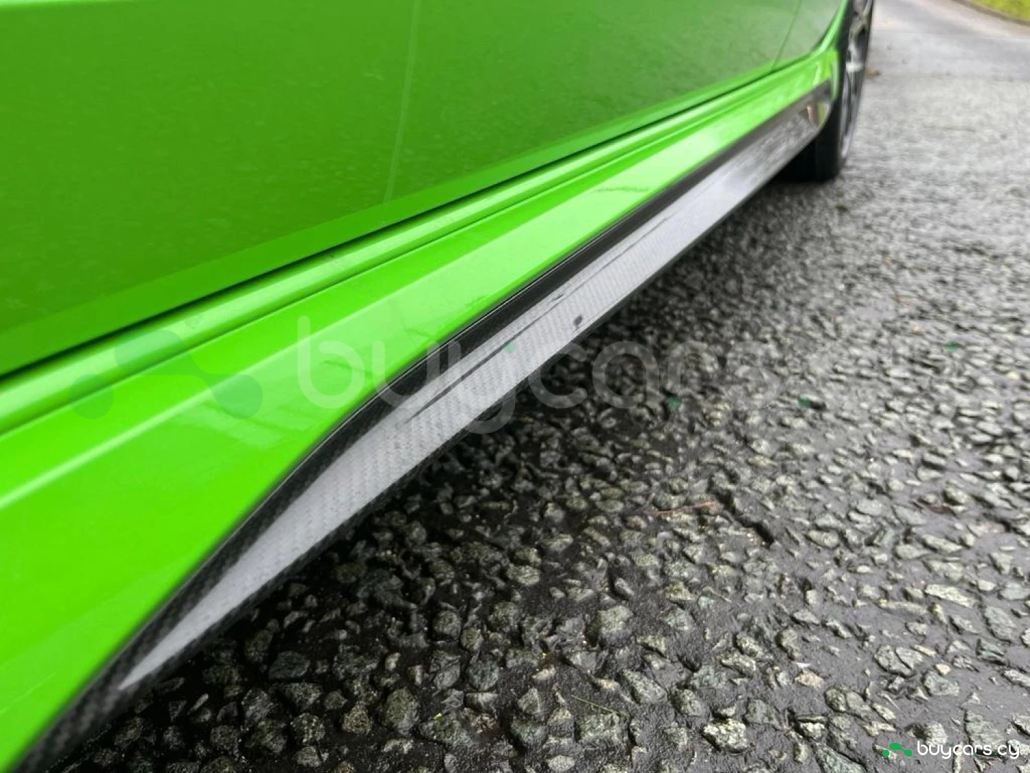 Экстерьер: Автомобиль окрашен в цвет Kyalami Metallic и оснащен черным стилистическим пакетом Black Styling Pack Plus. Включает 19-дюймовые легкосплавные диски 10-Cross-Spoke Black Metallic, красные тормозные суппорты RS, карбоновые корпуса зеркал и карбоновый спойлер багажника. Оснащен панорамной крышей, стеклами с тонировкой Privacy Glass, спортивной выхлопной системой RS и передовыми светодиодными фарами с Audi Beam.