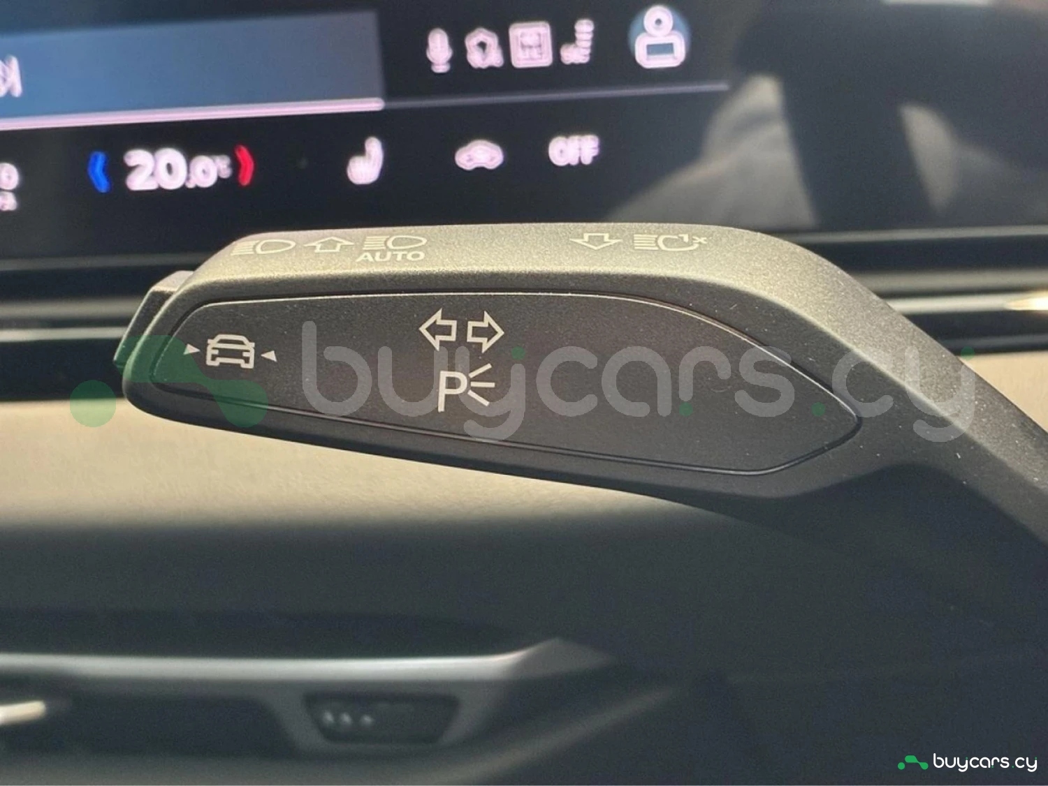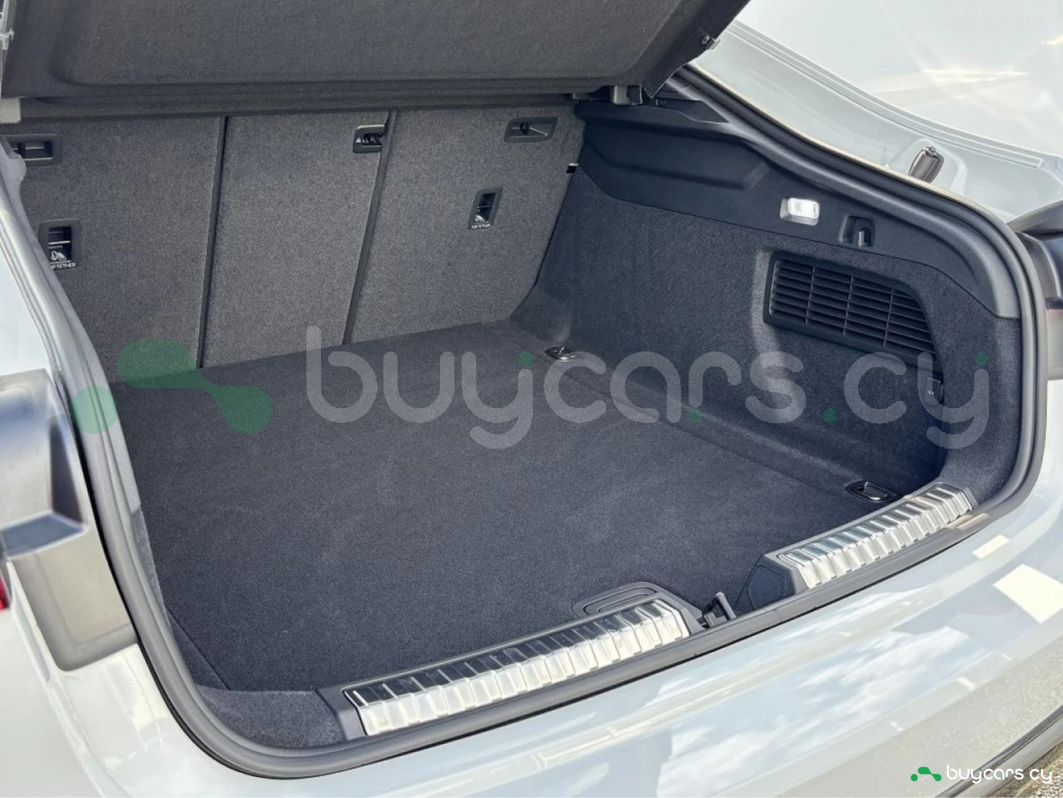 Кузов окрашен в Glacia White Metallic, оснащён Matrix LED фарами, Digital Signature освещением и 19-дюймовыми легкосплавными дисками. Элементы пакета S line подчёркивают спортивный и современный характер хэтчбека.
