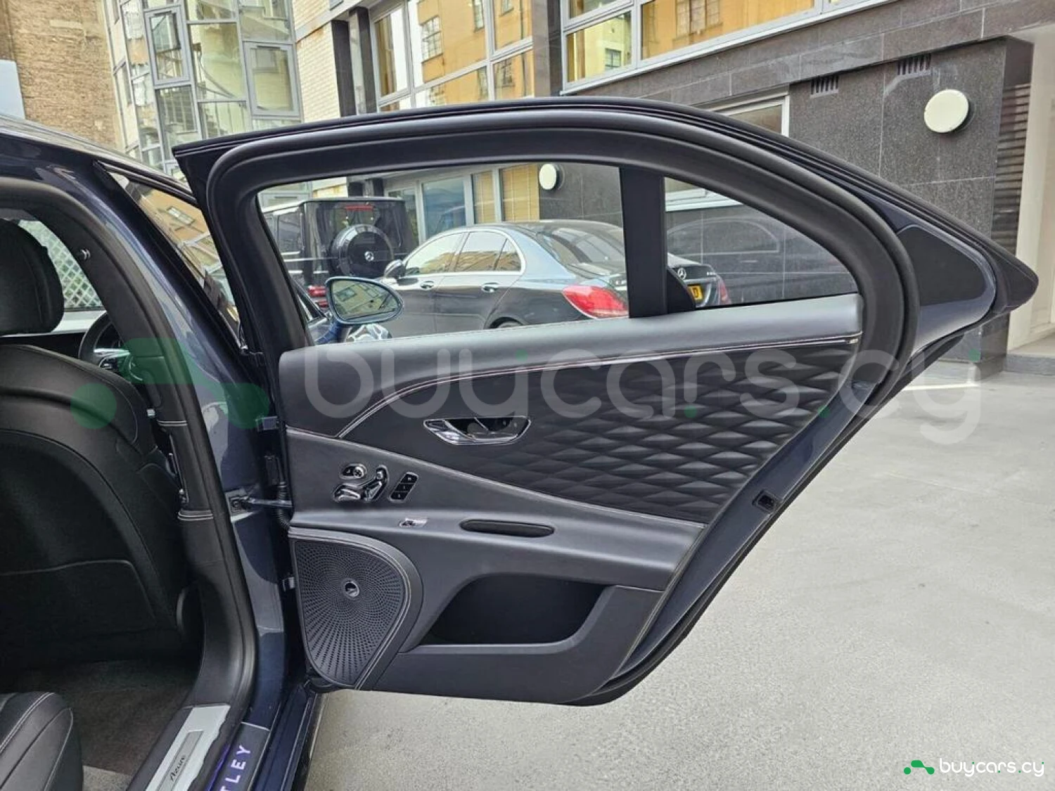 Интерьер и комфорт: Эмблемы Azure на сиденьях, Отделка кожей Nappa с ромбовидной прострочкой, Комфортные передние сиденья с 24-позиционной электрорегулировкой, подогревом, вентиляцией и массажем, Электрорегулируемые задние сиденья с 14-позиционной регулировкой, подогревом, вентиляцией и массажем, Мягкие подголовники Dinamica, Кожаный руль с подогревом, Мультируль с подрулевыми лепестками, Виртуальная педаль для бесконтактного открытия багажника, Подогреваемые подлокотники во всех четырех дверях, Металлические вентиляционные решетки Bulls-Eyes с хромированными регуляторами, Внутренние дверные пороги из нержавеющей стали с логотипом Bentley.
