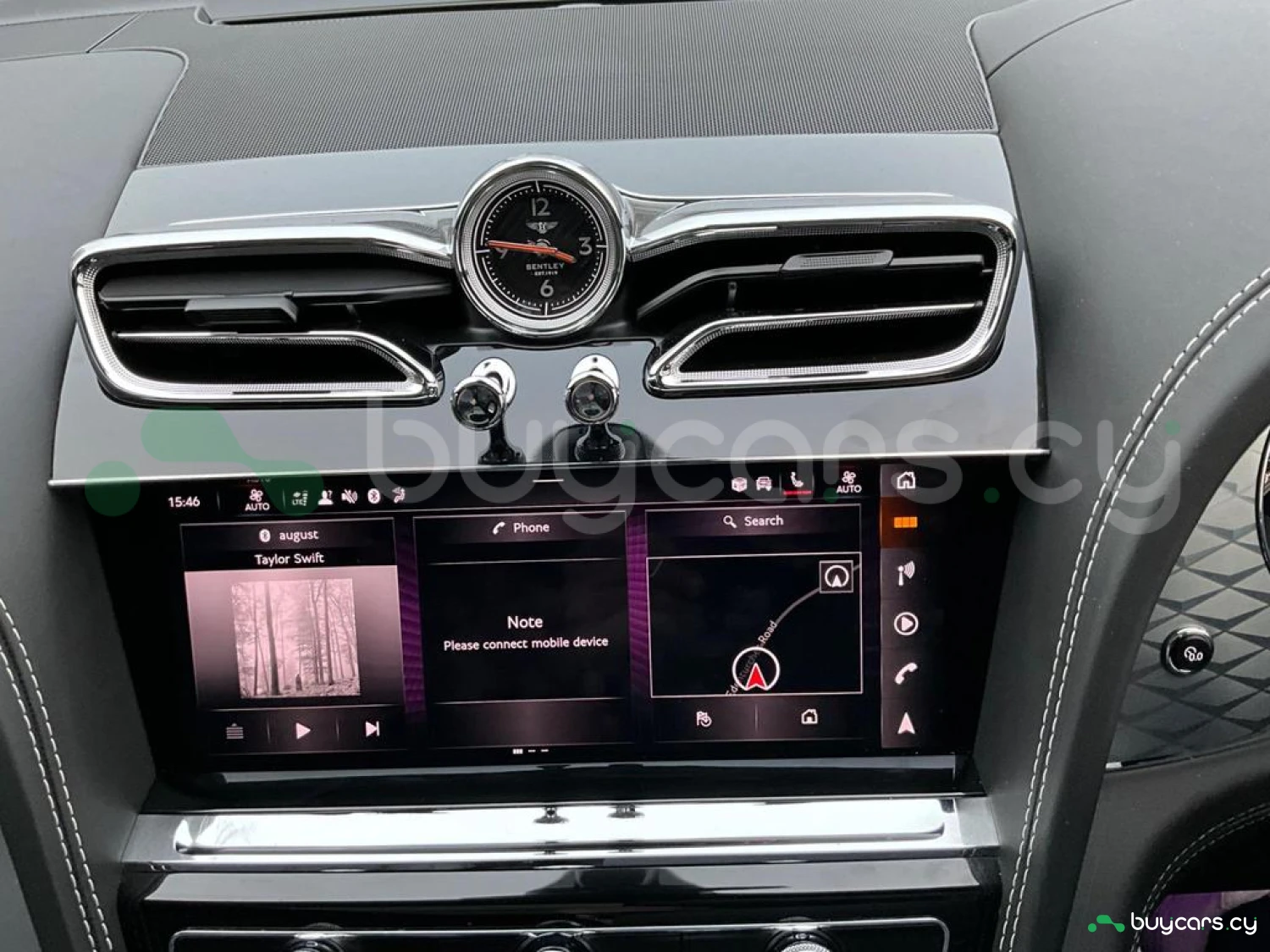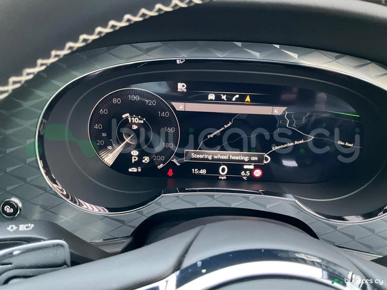 Интерьер и комфорт: Кожаный салон с алмазной стежкой (основной цвет Linen, вторичный цвет Beluga), Четырехзонный климат-контроль, Часы Breitling с циферблатом Dark Mother of Pearl, Электрорегулируемые передние и задние сиденья с подогревом, вентиляцией и функцией массажа, Многофункциональный кожаный руль с подогревом (трехспицевый, двухцветный), Атмосферная подсветка Mood Lighting, Система организации багажного отделения Luggage Management, Электропривод багажной двери с функцией Soft Close, Вставки из шпона Crown Cut Walnut.