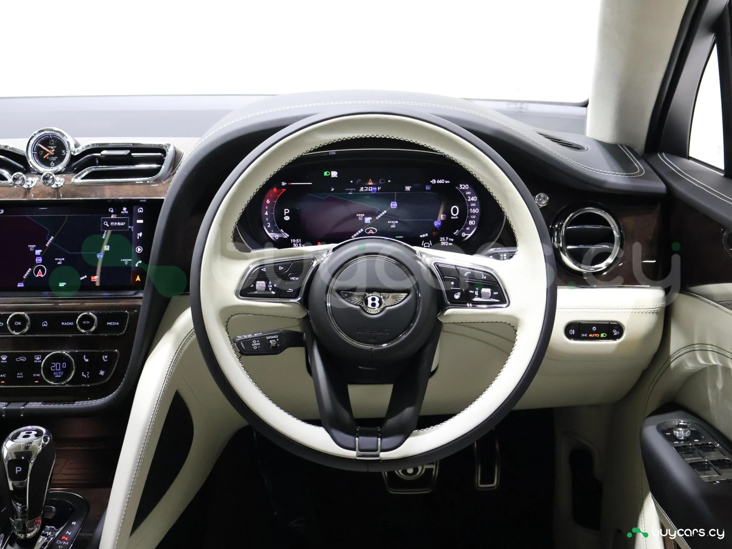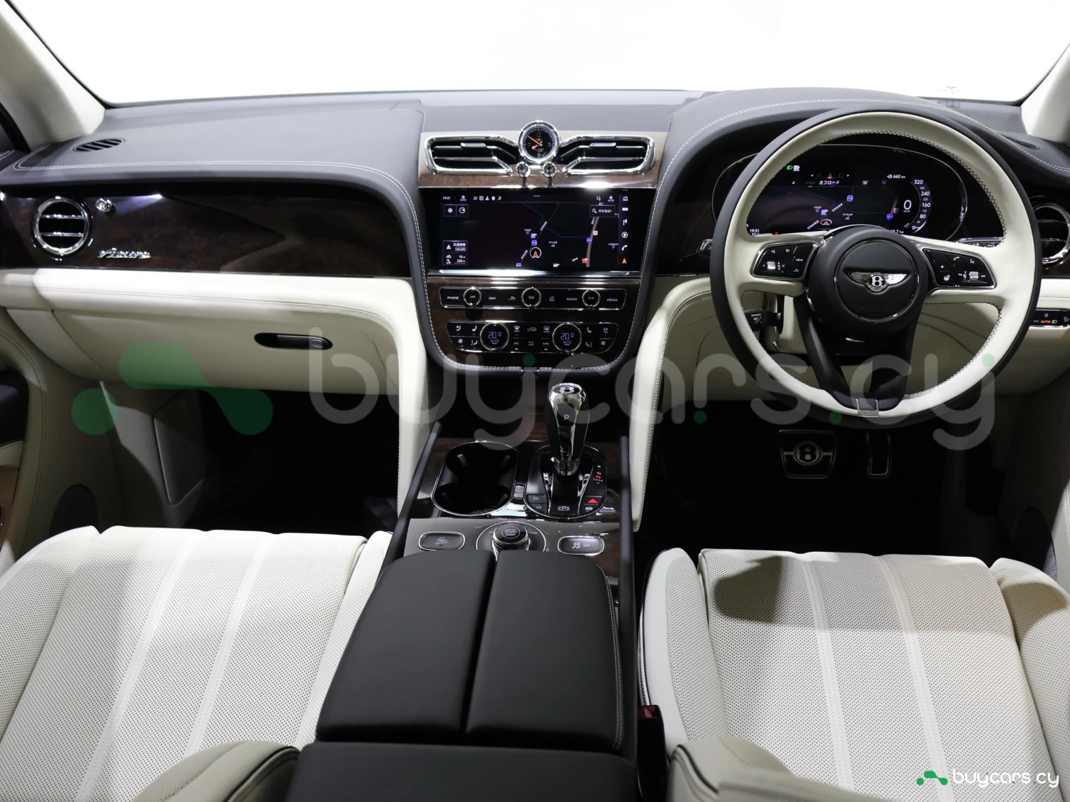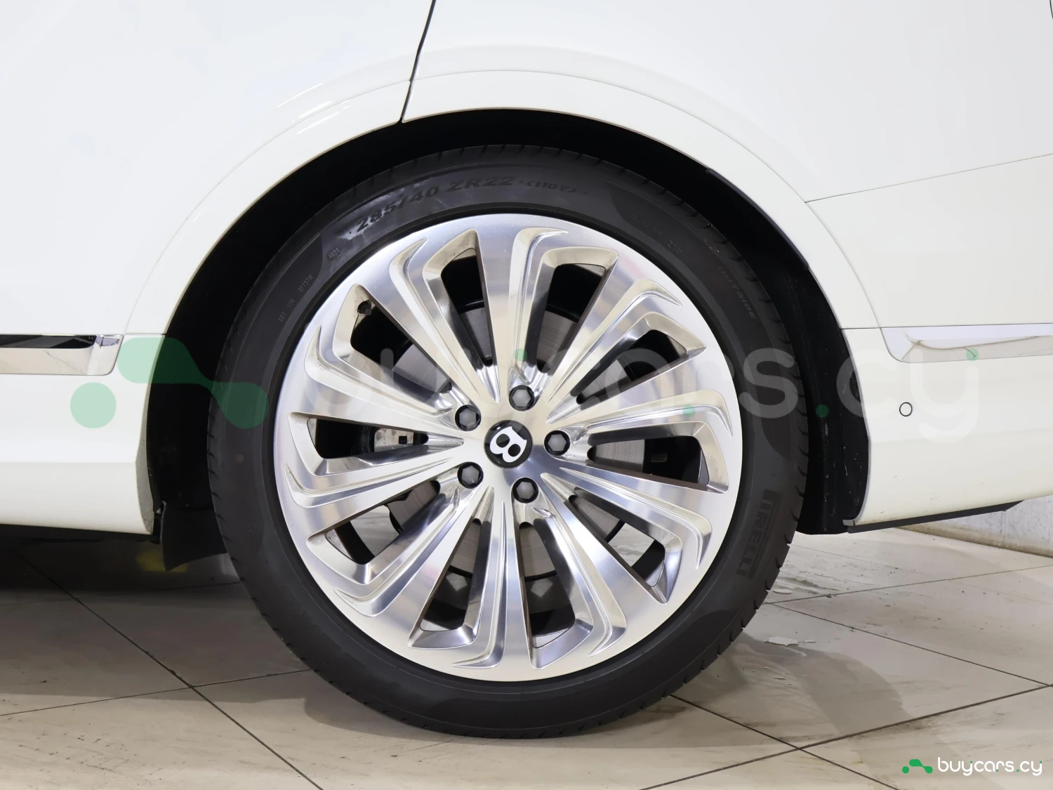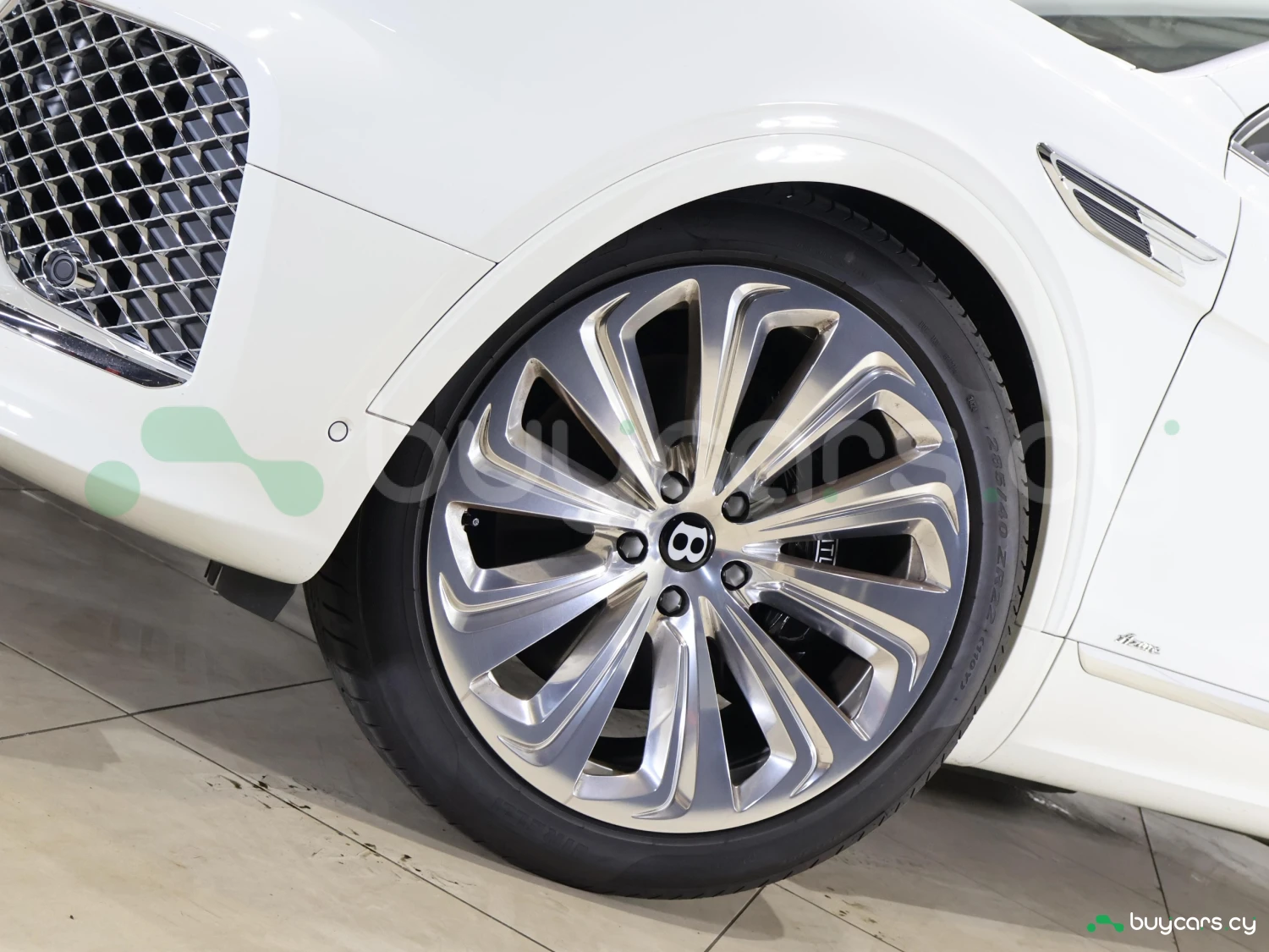 Кузов типа SUV выполнен в цвете Glacier White. Внешний облик сочетает статус, элегантность и фирменный стиль Bentley.
