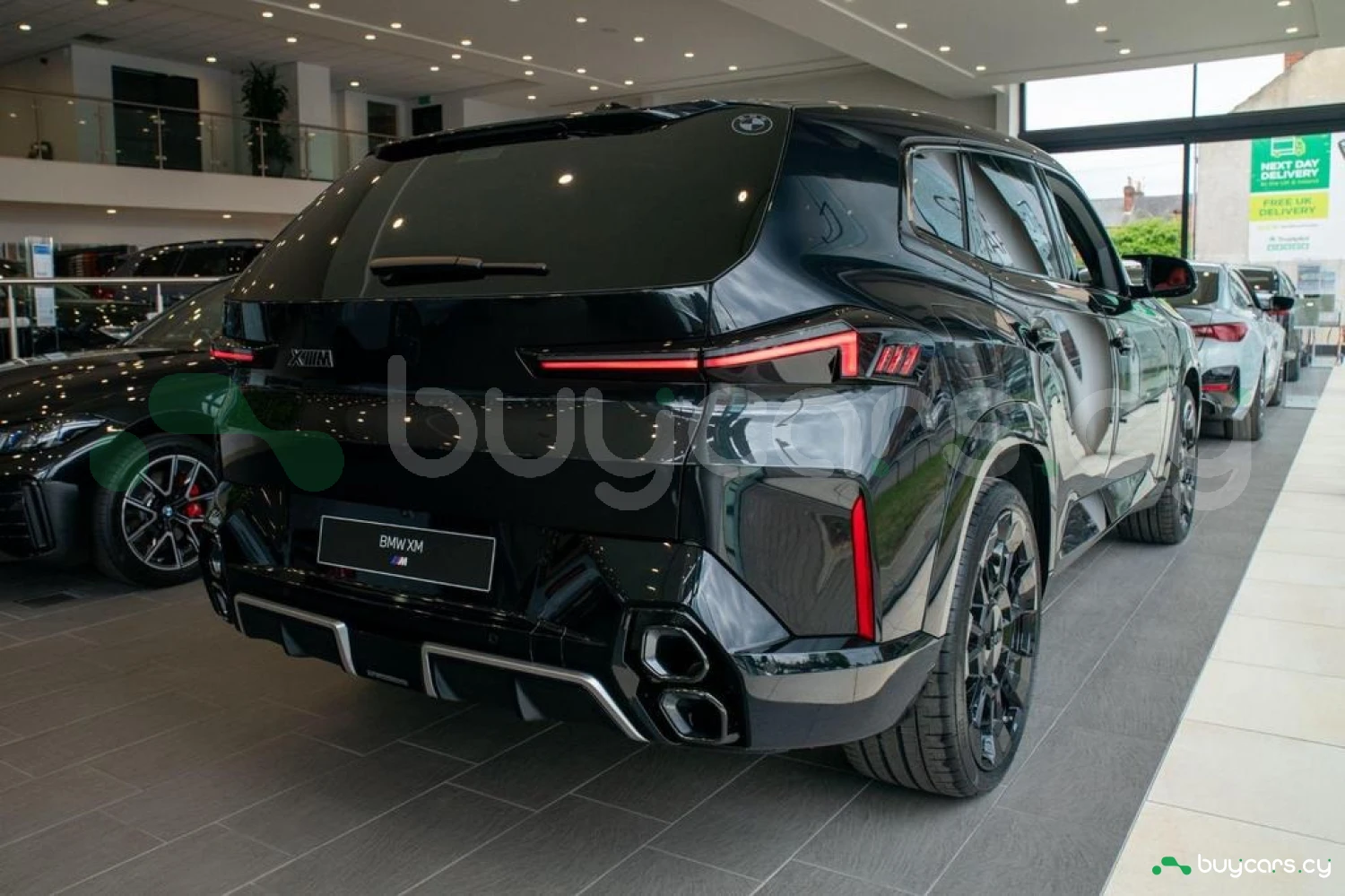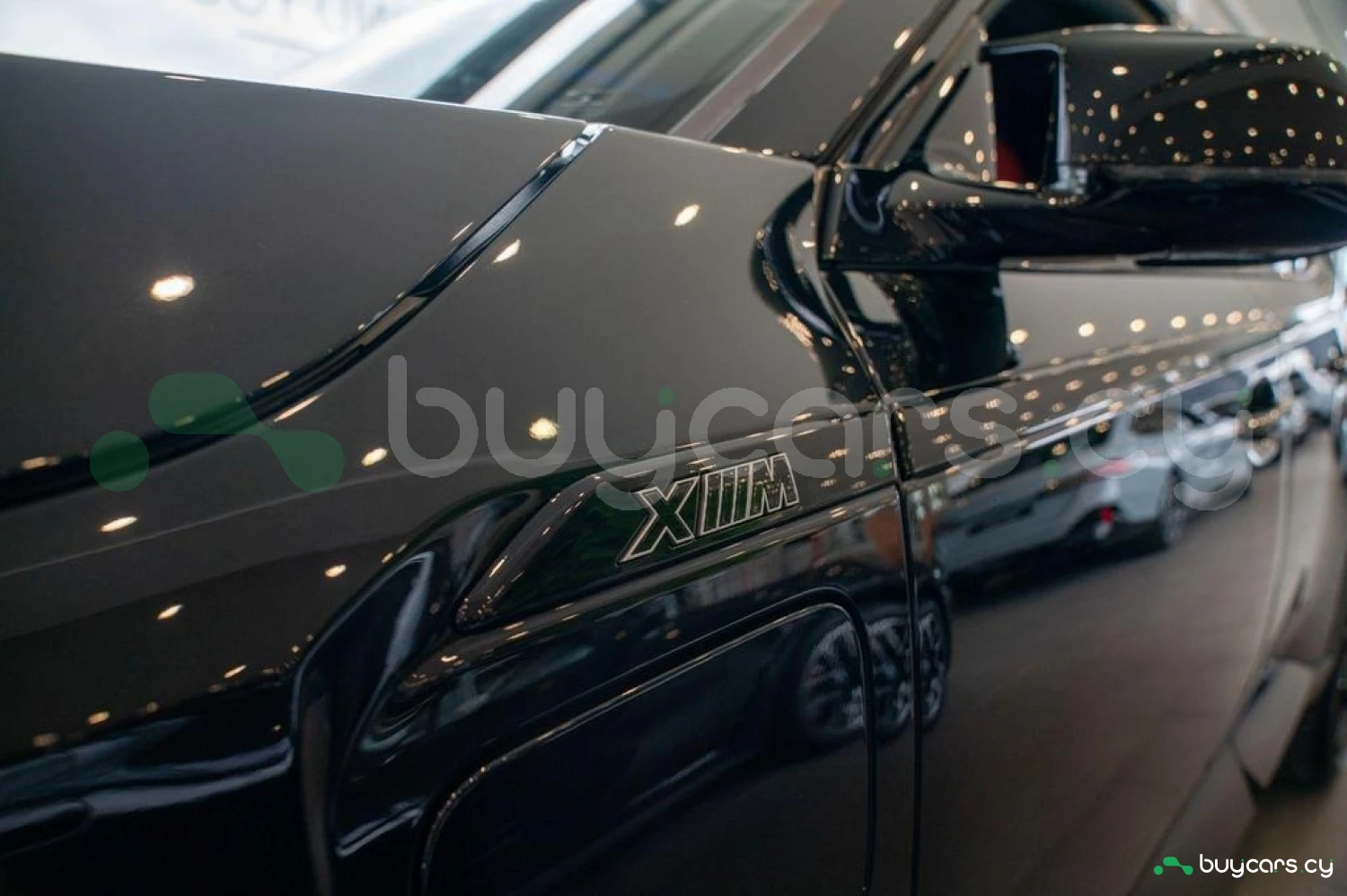 Кузов Black Sapphire metallic придаёт BMW XM стильный и агрессивный вид, который подчеркивается такими элементами, как декоративные элементы заднего дизайна в Night Gold и лазерные логотипы BMW на верхней левой и правой частях заднего окна. Автомобиль оснащён 21-дюймовыми легкосплавными дисками Light – 918 M Double Spoke с смешанными шинами, что сочетает в себе производительность и визуальную привлекательность. M Аэродинамический пакет и задний диффузор в чёрном глянце придают автомобилю спортивную эстетическую составляющую. Дополнительные элементы экстерьера включают черные глянцевые элементы в переднем бампере, воздушные и центральные воздухозаборники в чёрном глянце и поперечные планки радиаторной решётки в чёрном глянце, что добавляет динамичности.