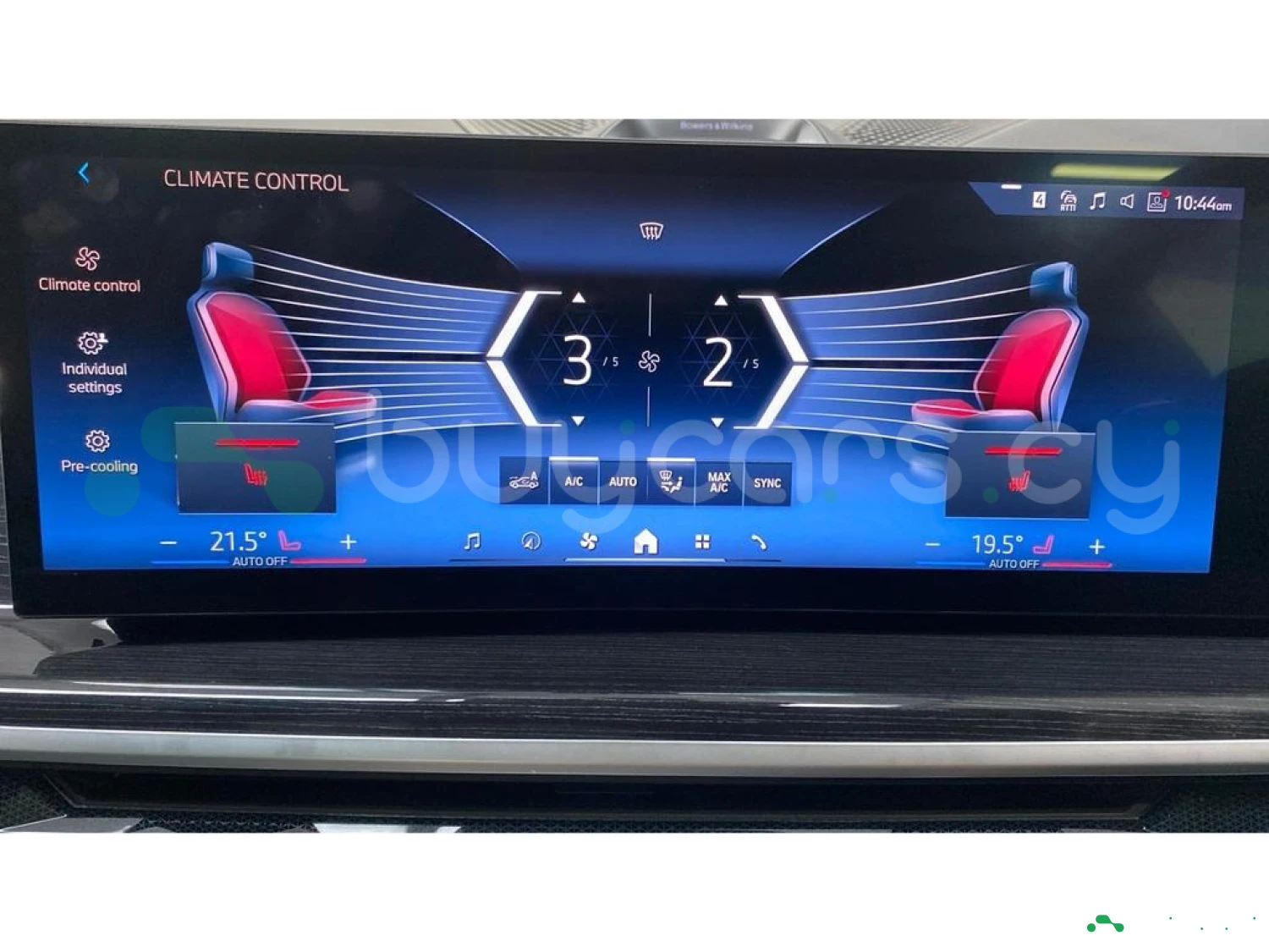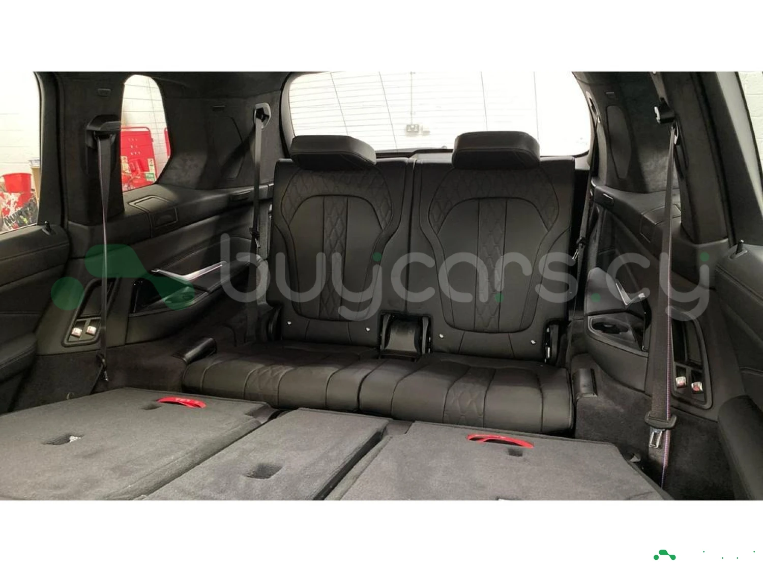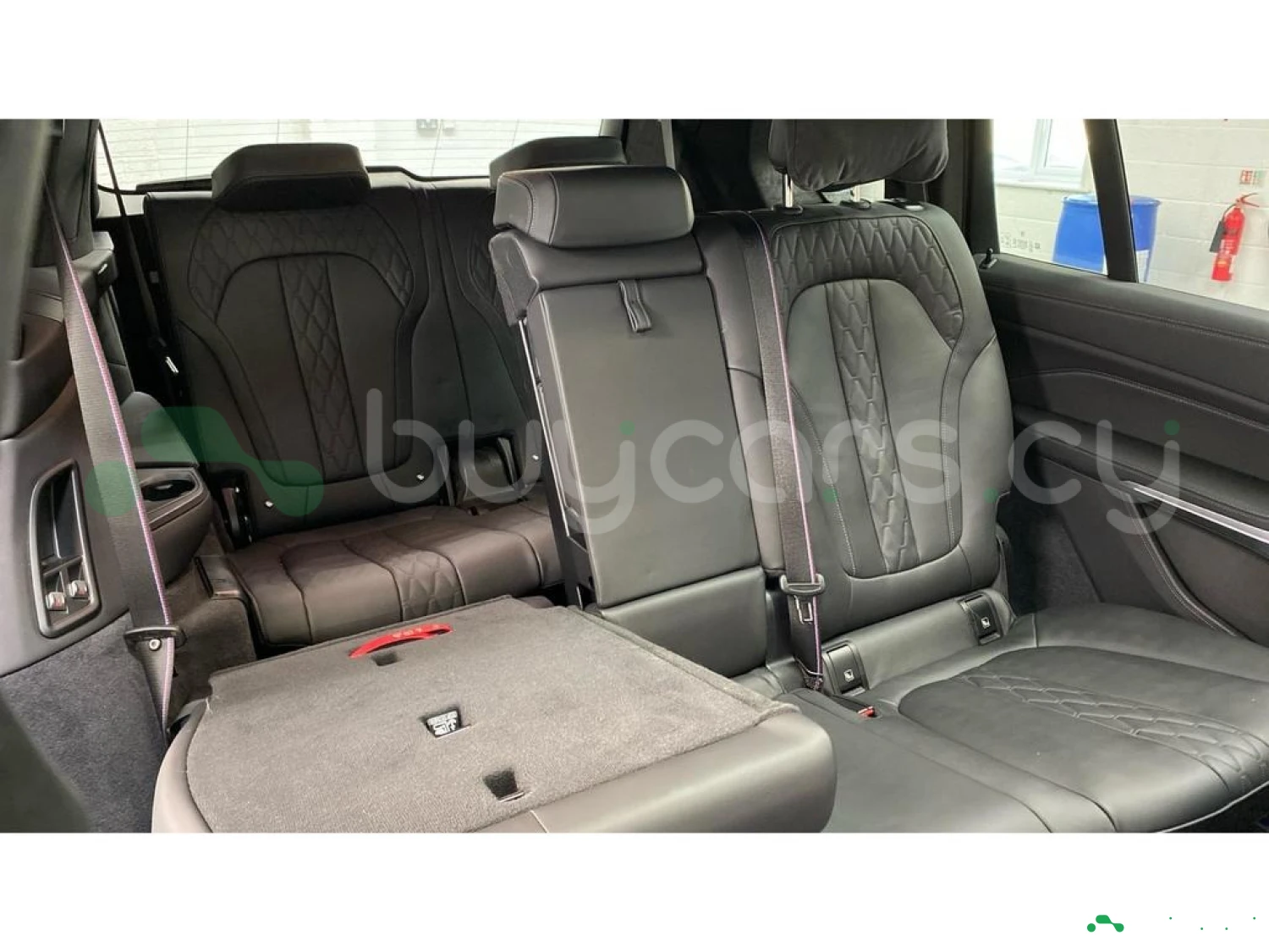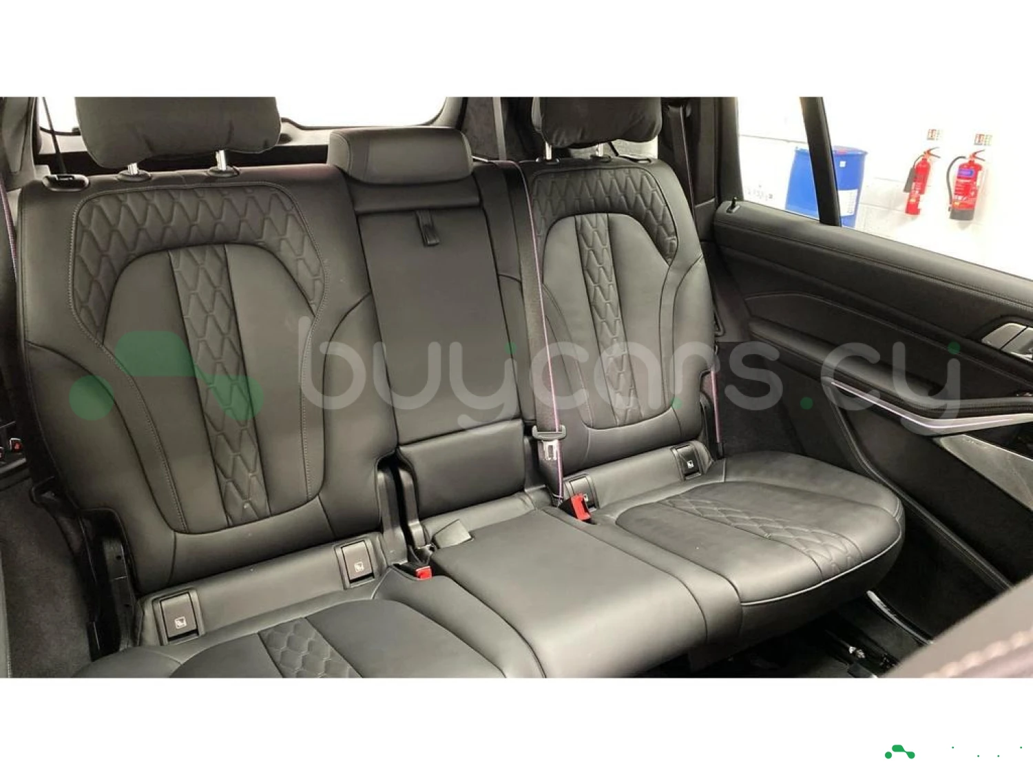 Внутри BMW X7 3.0 xDrive 40i M Sport салон выполнен с учётом роскоши и спортивного духа. Здесь используются кожаные сиденья Full Merino и Alcantara обивка потолка, создающие атмосферу элегантности и комфорта. В автомобиле установлен 12,3-дюймовый цифровой дисплей, который обеспечивает чёткое отображение всей важной информации о вождении. Мультимедийная система Live Cockpit Pro управляется через 12,3-дюймовый сенсорный экран, поддерживающий Apple CarPlay и Android Auto. Пакет Technology Plus Pack включает в себя Bowers & Wilkins Diamond Surround Sound, создавая исключительное аудио-впечатление.