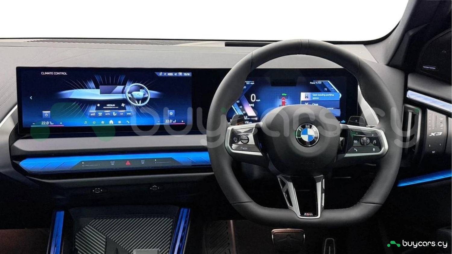 Внутри BMW X3 2.0 20d M Sport находится роскошный и спортивный салон, оснащённый кожаным рулевым колесом M Sport и спортивными сиденьями, что придаёт интерьеру спортивный стиль и комфорт. В автомобиле используются премиальные материалы, такие как высокоглянцевая отделка и присутствуют такие функции, как многозонный климат-контроль, что обеспечивает комфорт всех пассажиров. 12,3-дюймовый цифровой дисплей в системе Live Cockpit Professional позволяет легко управлять навигацией, мультимедийными функциями и настройками автомобиля. Панорамная крыша добавляет ощущения простора и открытости в салоне.