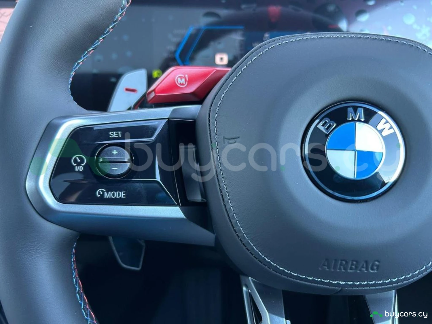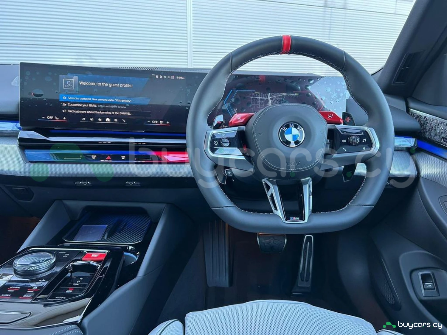 Экстерьер и колеса: металлик Fire Red, 20/21-дюймовые диски M Light 952 M Bicolour Black (дополнительная опция), пакет внешней подсветки BMW Iconic Glow, глянцевая черная отделка Shadowline, панорамная стеклянная крыша, солнцезащитное стекло, черные глянцевые зеркала, антенна "акулий плавник" в цвет кузова, дверные ручки заподлицо с кузовом.