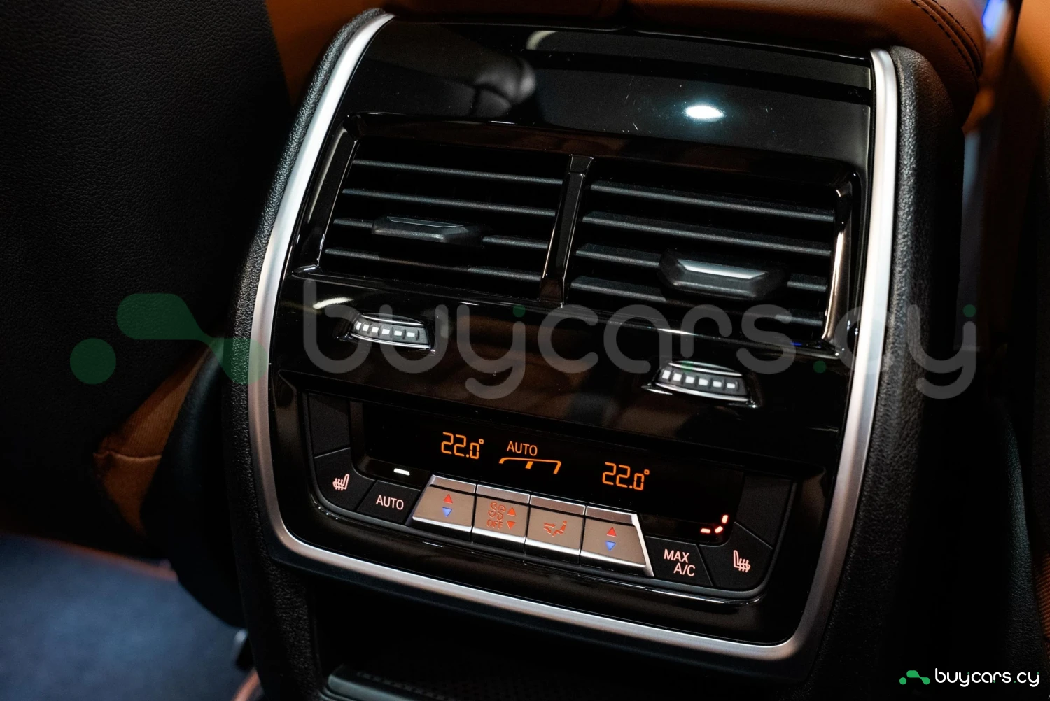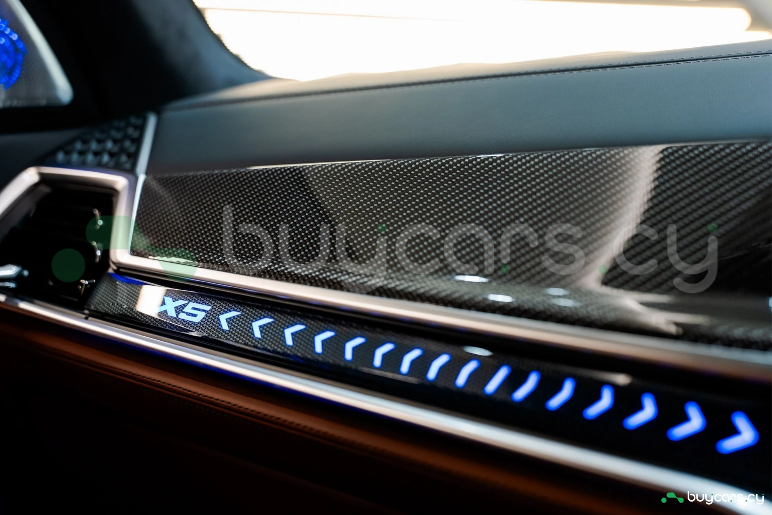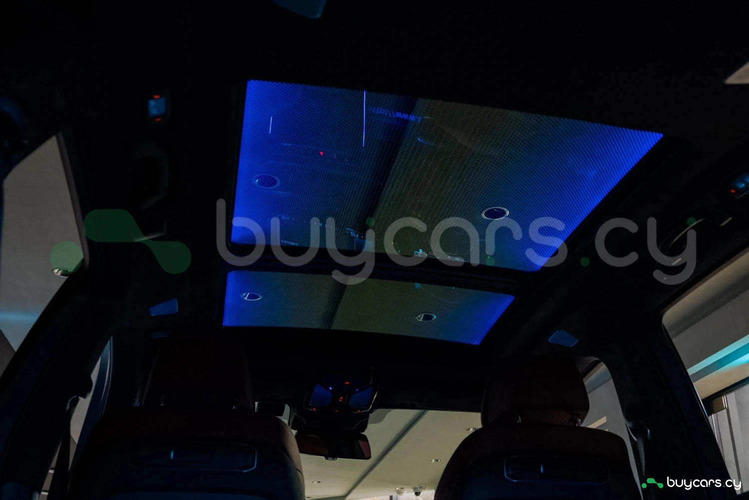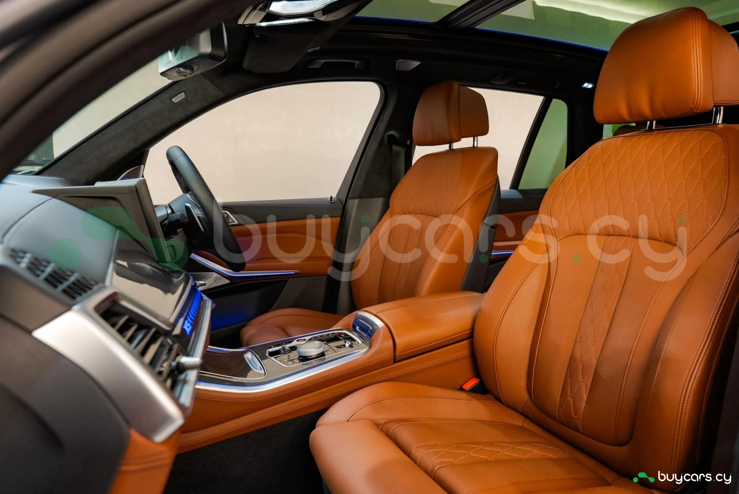 Салон отделан роскошной кожей BMW Individual Full Merino и выполнен с использованием премиальных материалов. Панорамная крыша Sky Lounge создаёт атмосферу простора и уюта, а подогрев и вентиляция сидений, а также подогрев заднего ряда обеспечивают максимальный комфорт для всех пассажиров. Семиместная компоновка повышает практичность автомобиля.