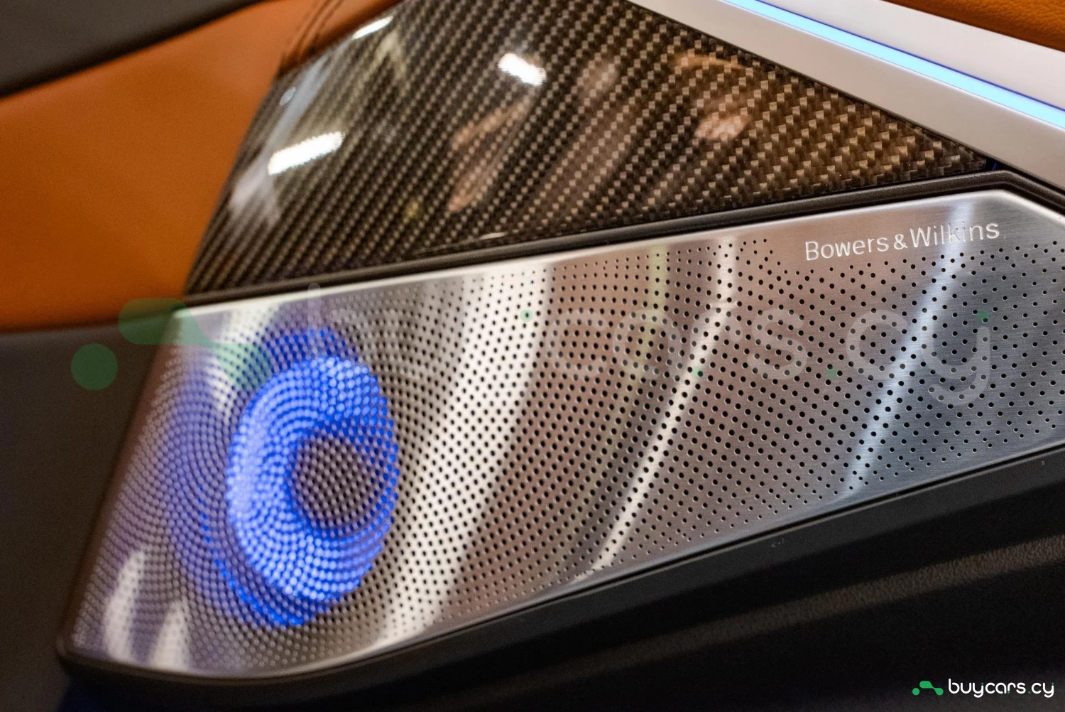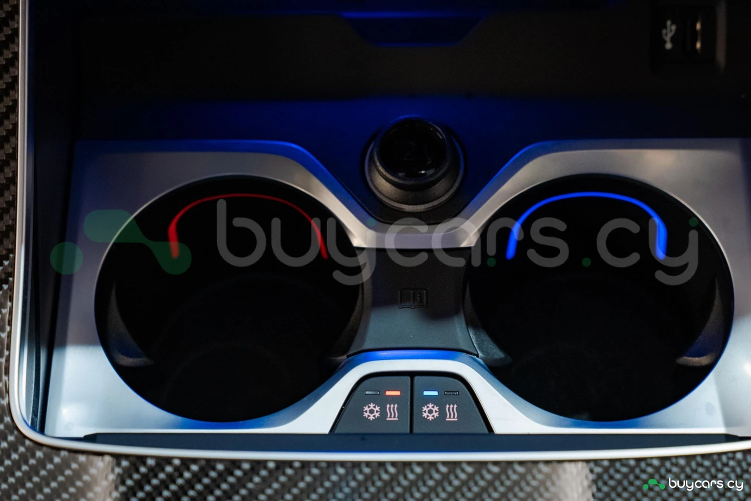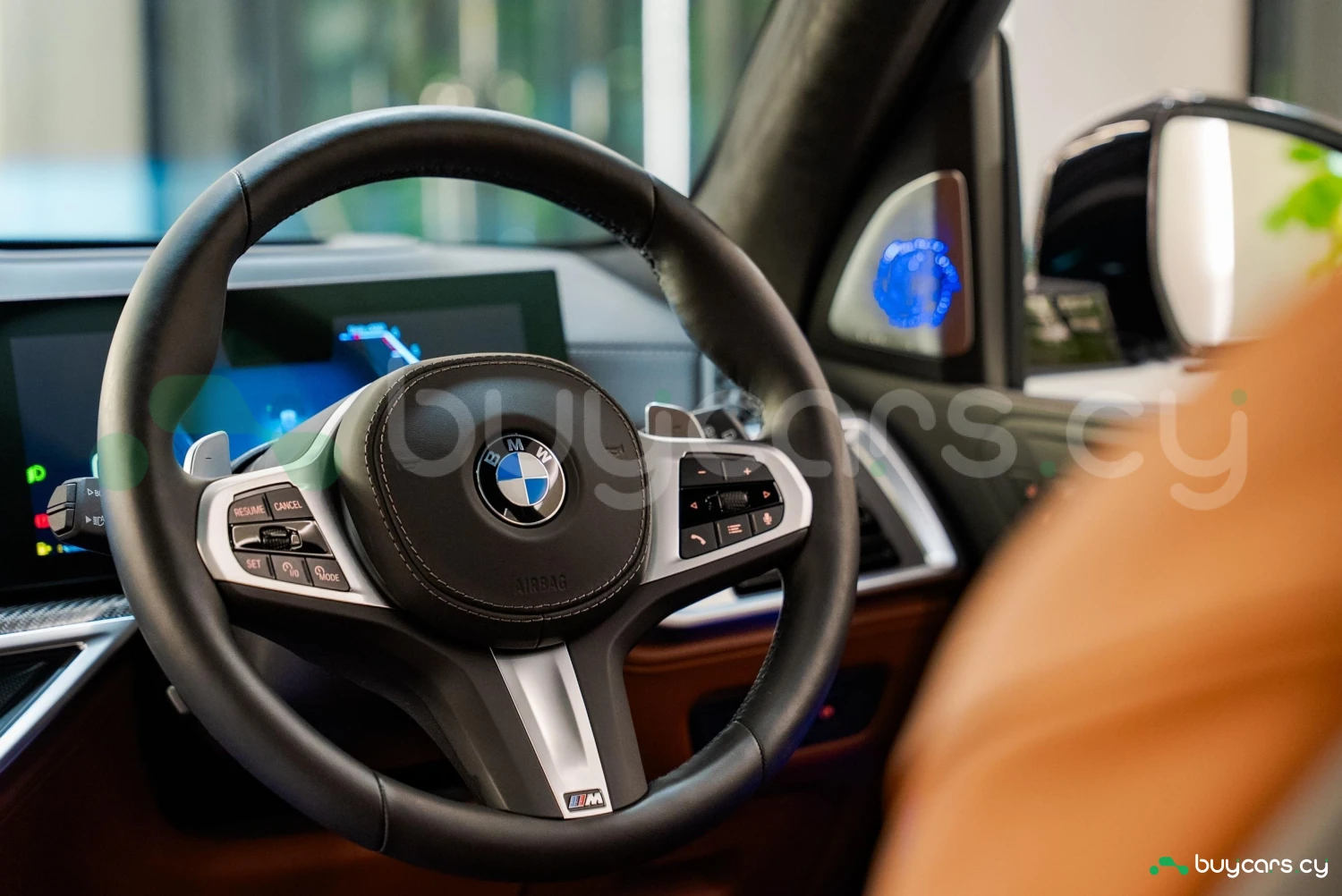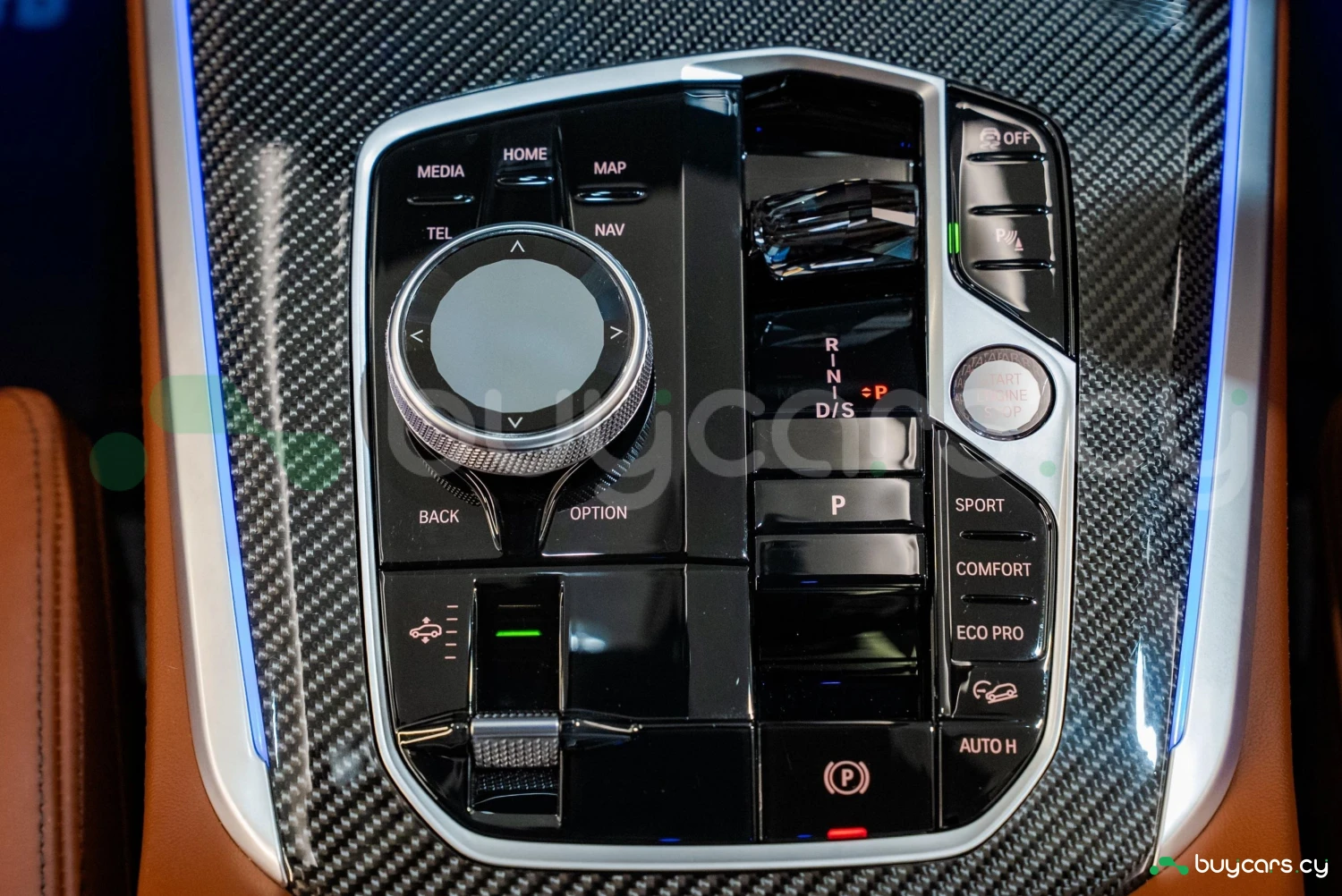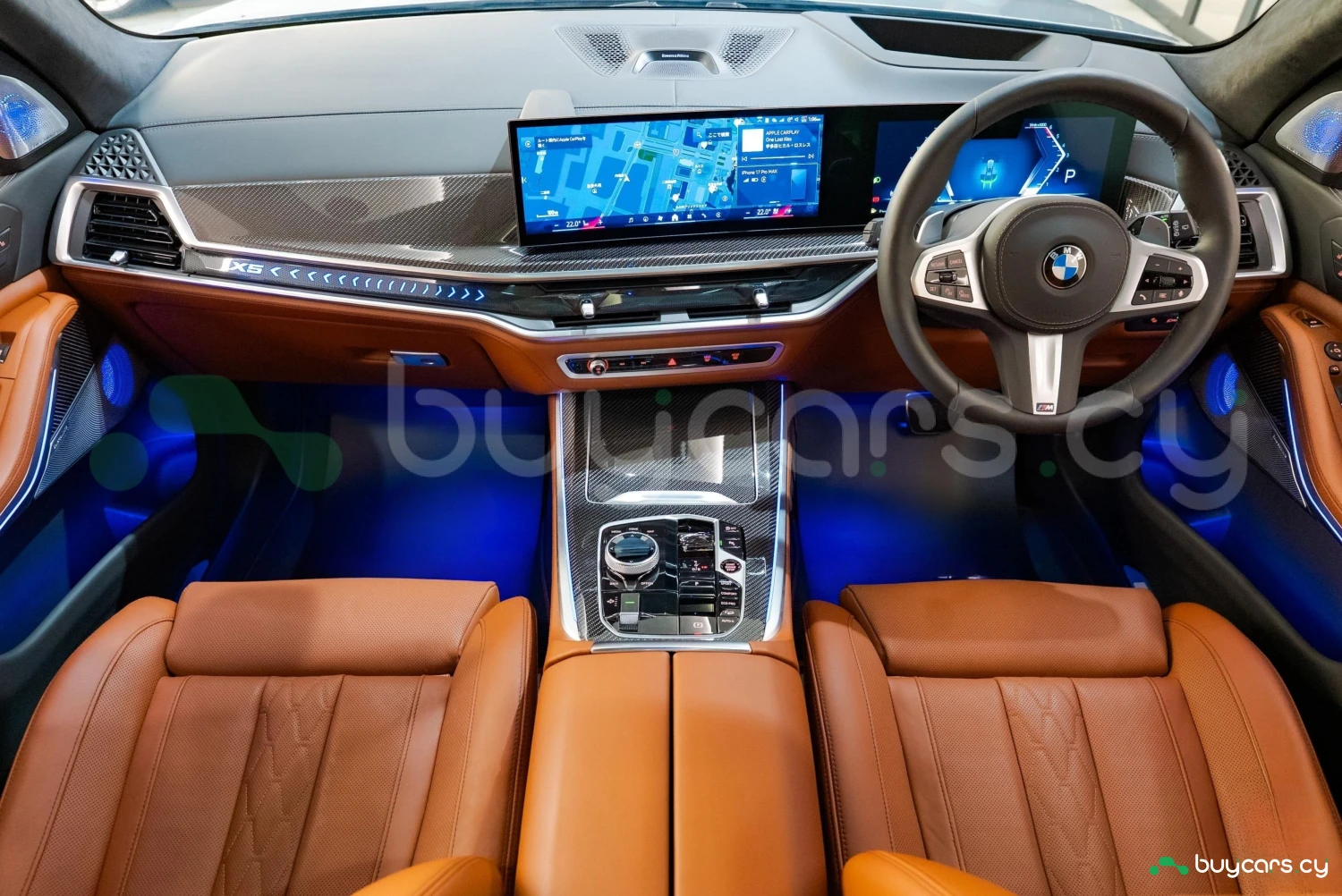 Салон отделан роскошной кожей BMW Individual Full Merino и выполнен с использованием премиальных материалов. Панорамная крыша Sky Lounge создаёт атмосферу простора и уюта, а подогрев и вентиляция сидений, а также подогрев заднего ряда обеспечивают максимальный комфорт для всех пассажиров. Семиместная компоновка повышает практичность автомобиля.