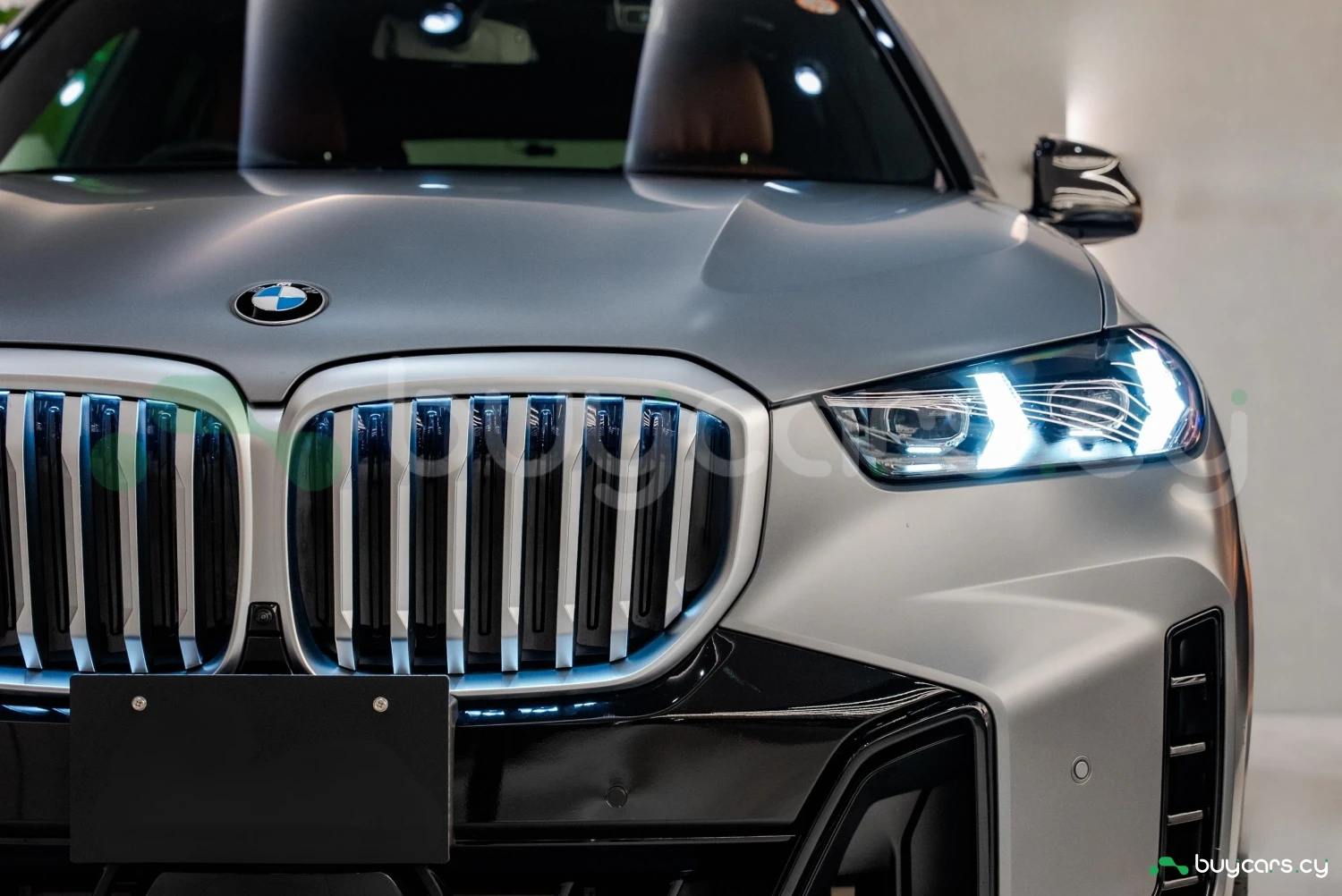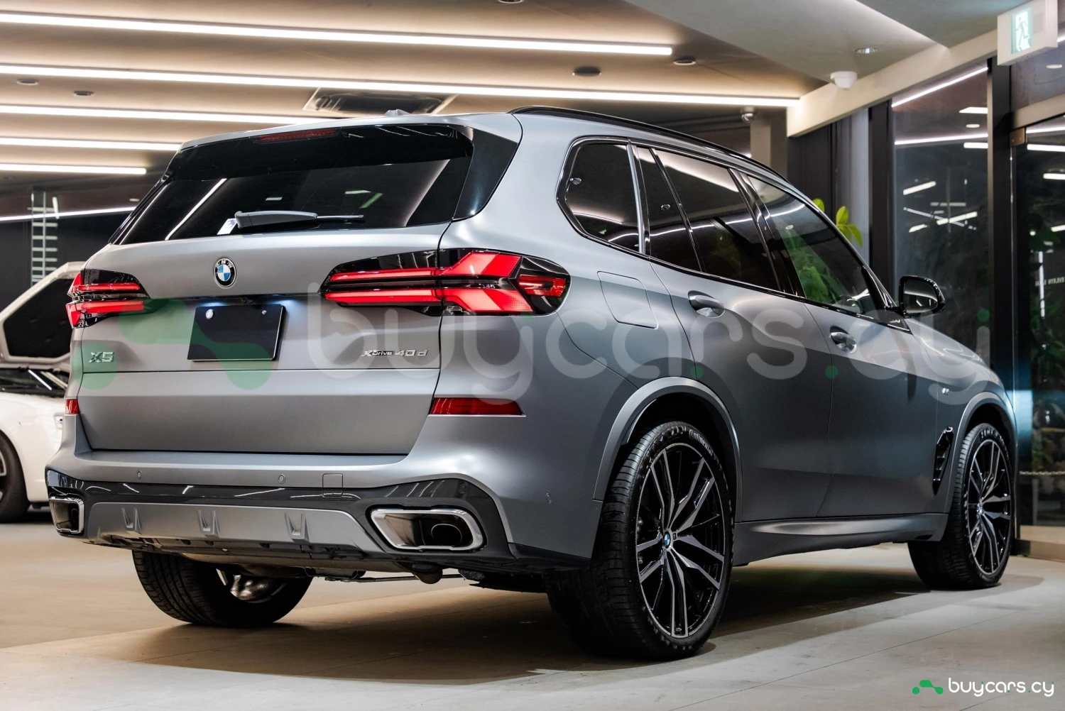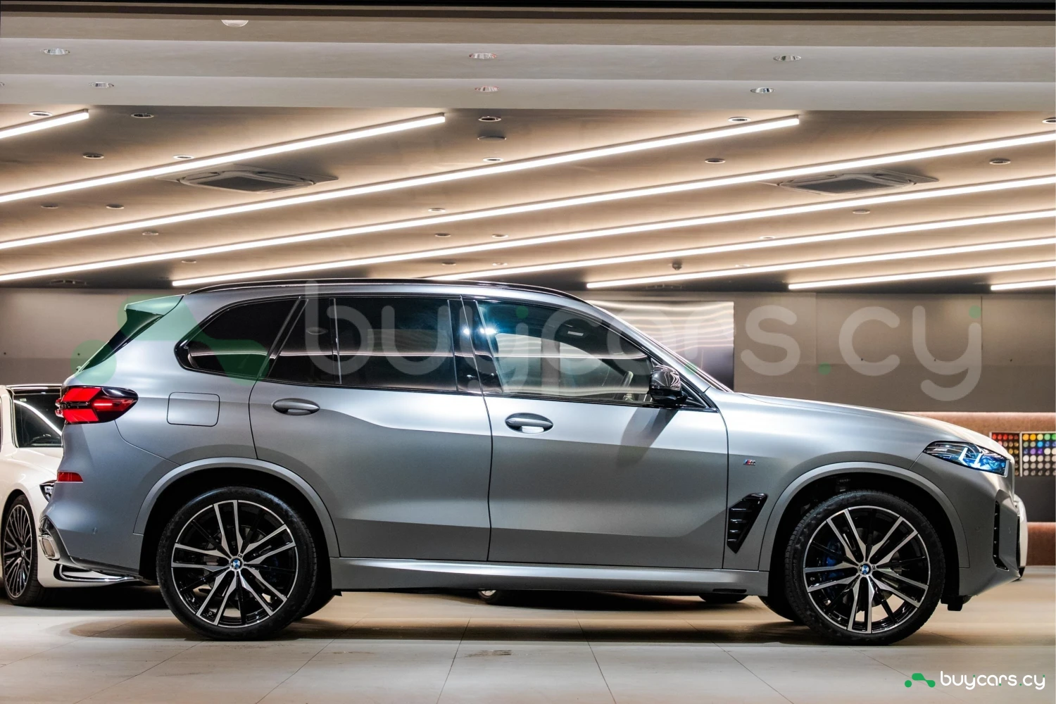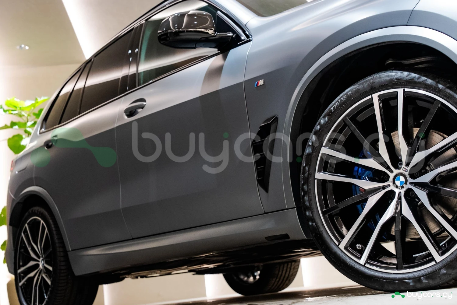 Эксклюзивный матовый цвет Frozen Pure Grey Metallic подчёркивает выразительный дизайн BMW X5. Аэродинамический пакет M Sport, фирменная решётка радиатора и легкосплавные диски создают мощный и престижный облик. Панорамная крыша Sky Lounge и рейлинги на крыше добавляют практичности и элегантности.
