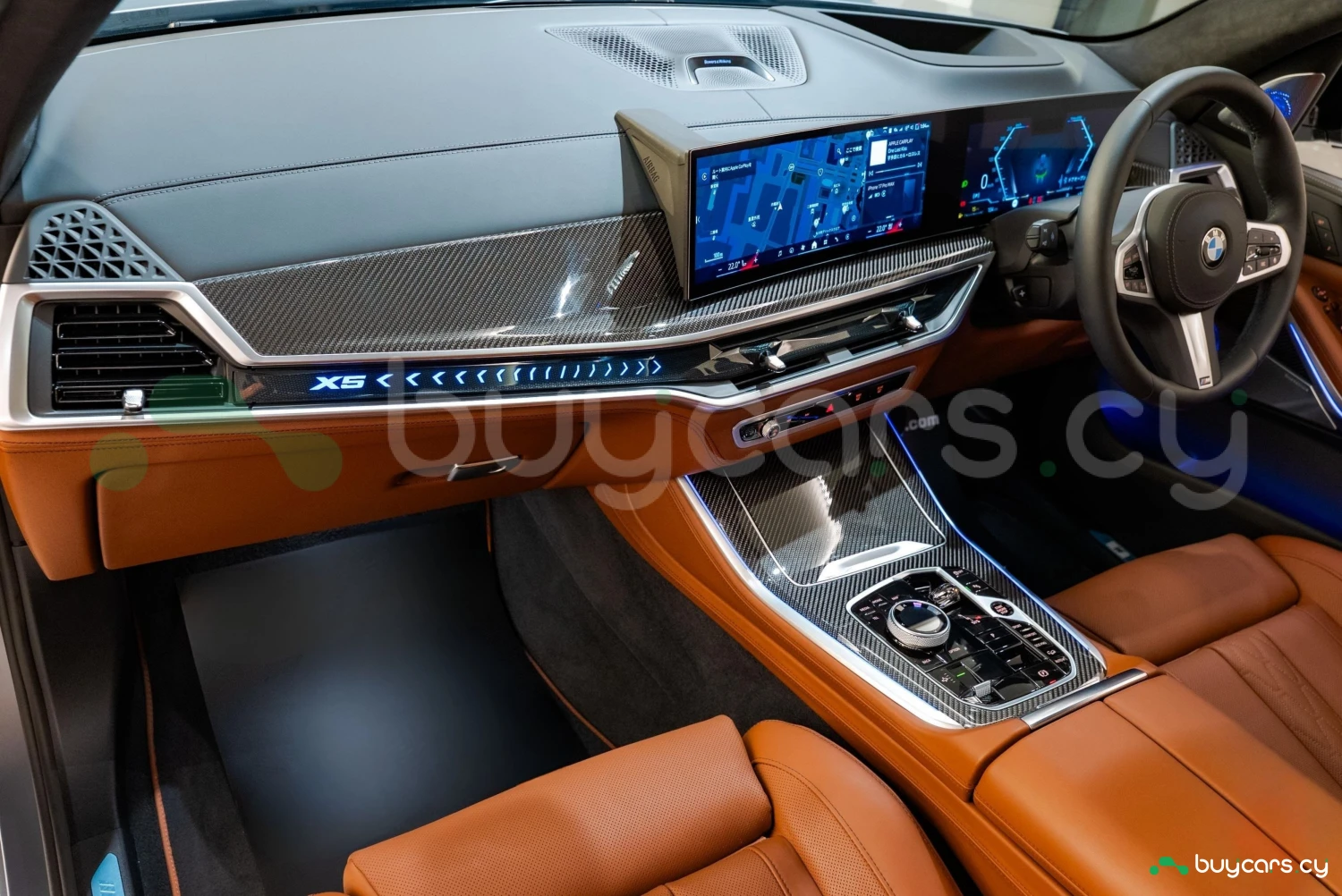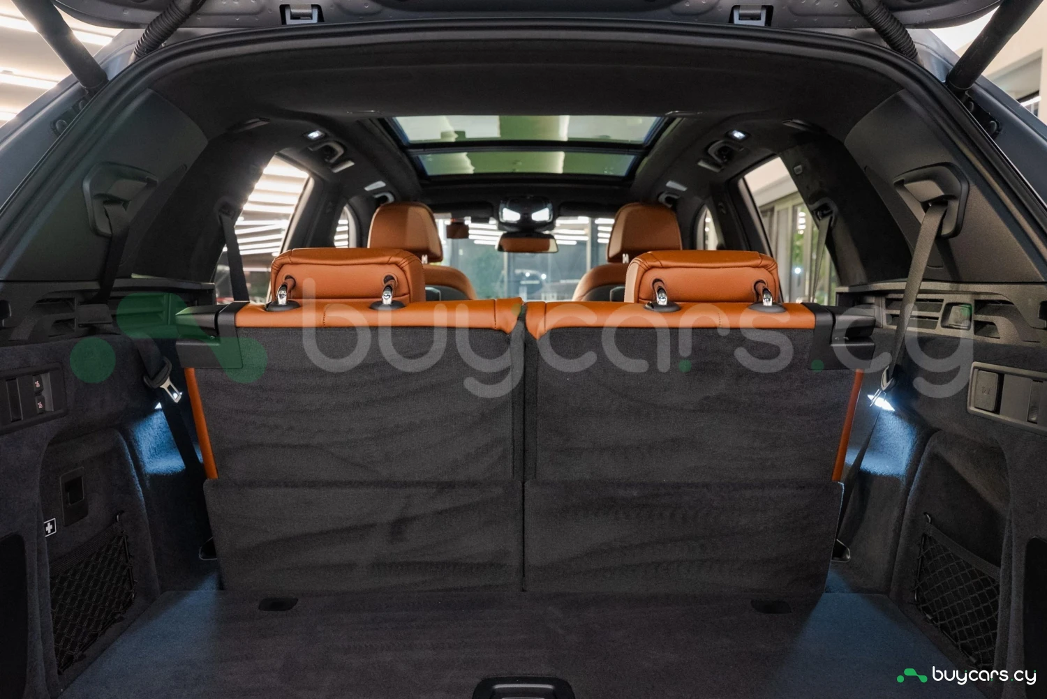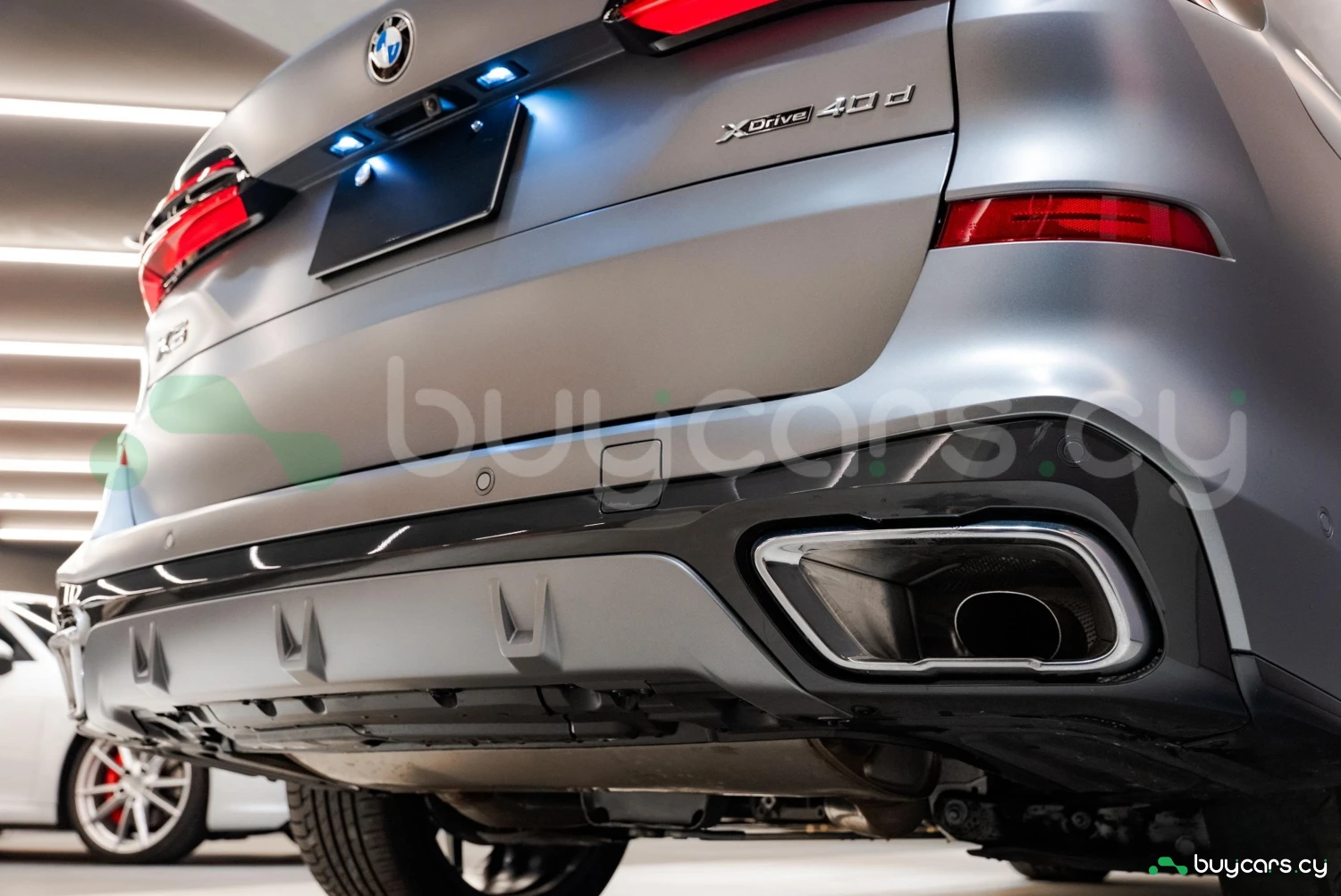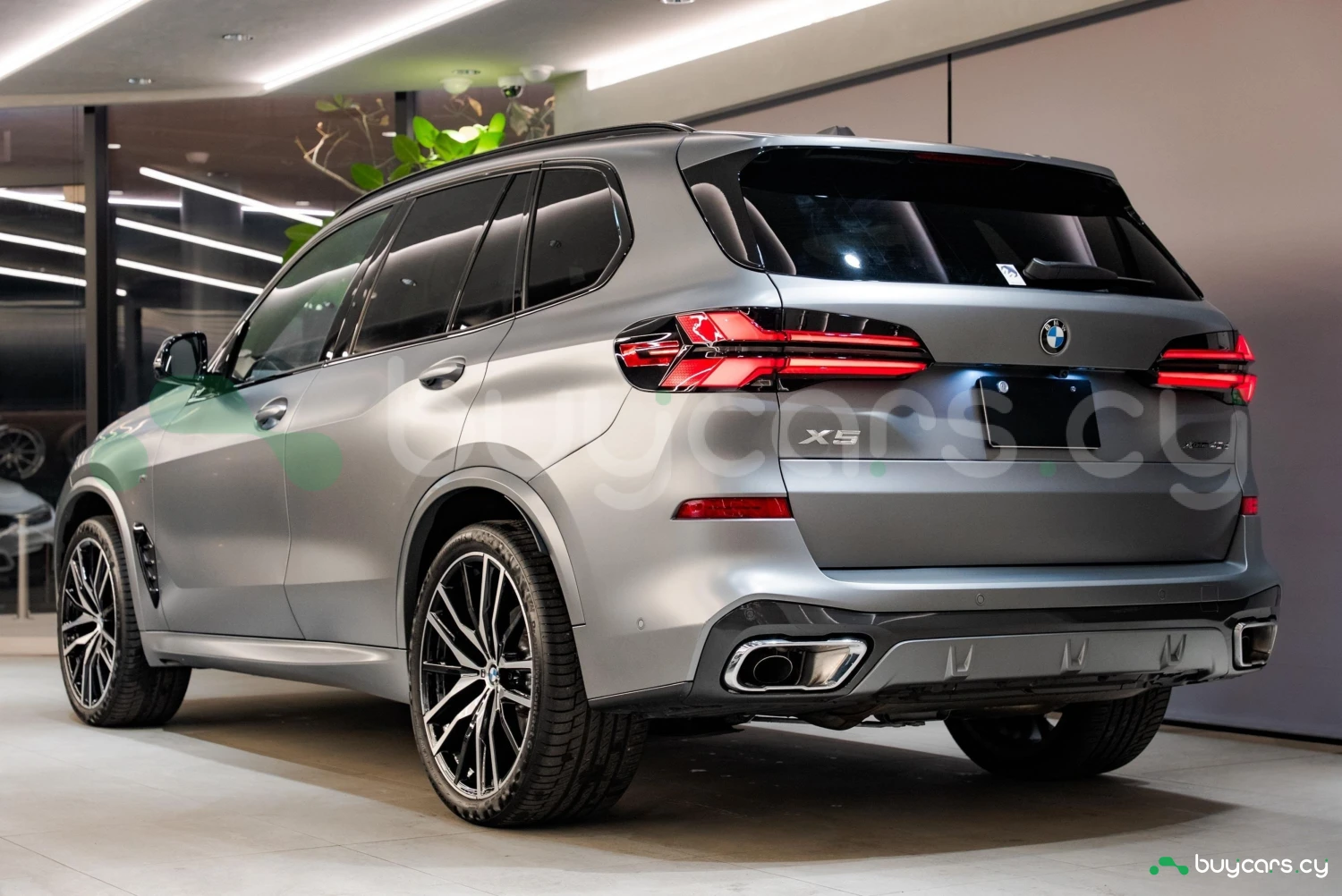 Эксклюзивный матовый цвет Frozen Pure Grey Metallic подчёркивает выразительный дизайн BMW X5. Аэродинамический пакет M Sport, фирменная решётка радиатора и легкосплавные диски создают мощный и престижный облик. Панорамная крыша Sky Lounge и рейлинги на крыше добавляют практичности и элегантности.