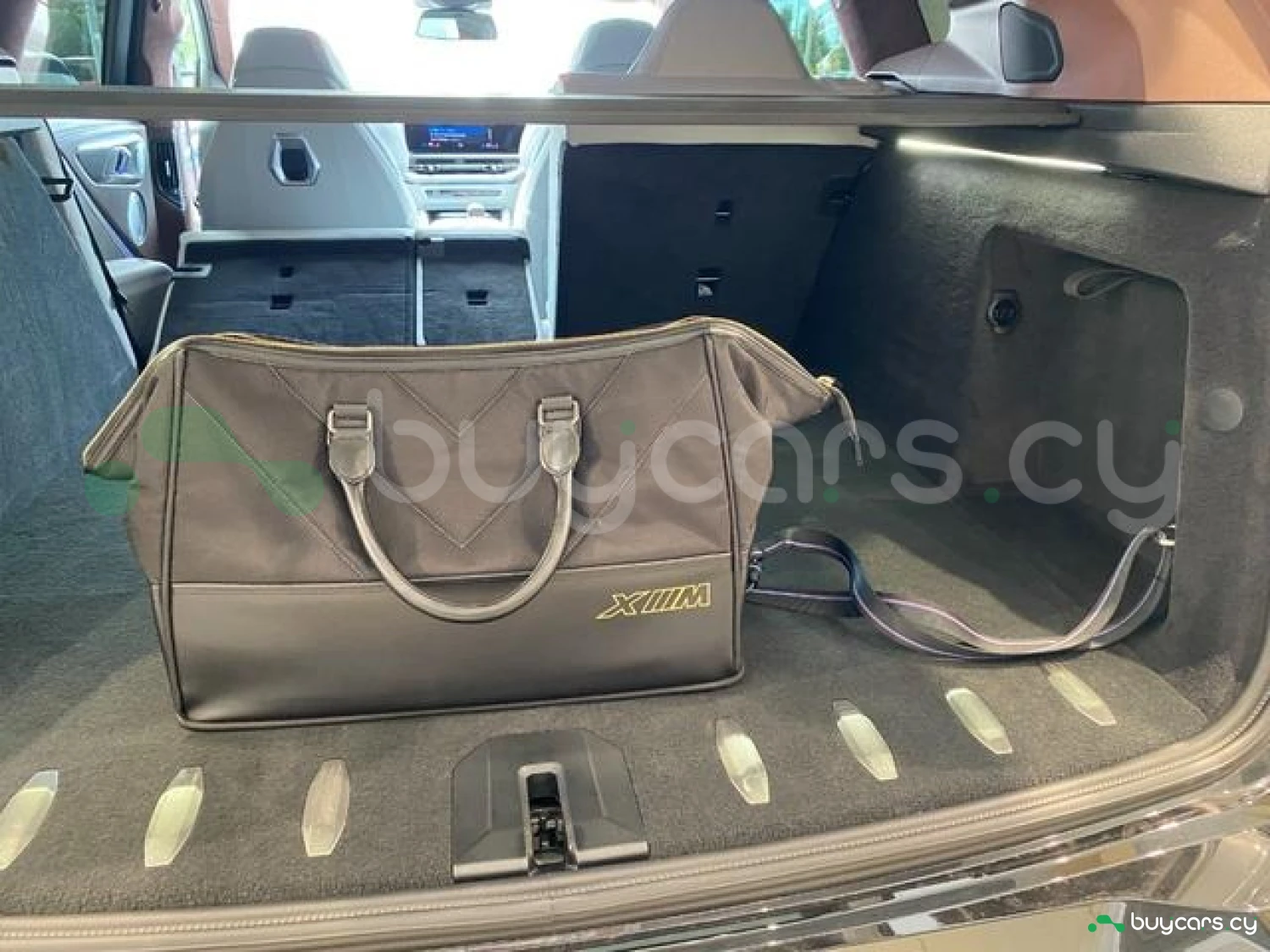 Салон XM сочетает в себе премиальные материалы и авангардный стиль. Здесь используется кожа Merino, алькантара, скульптурная крыша с амбиентной подсветкой и изогнутый дисплей BMW. Мультимедийная система iDrive 8 представлена 14.9-дюймовым центральным сенсорным экраном и 12.3-дюймовой цифровой приборной панелью. Среди ключевых опций — аудиосистема Bowers & Wilkins Diamond, подогрев и вентиляция сидений, четырёхзонный климат-контроль, беспроводная интеграция Apple CarPlay и Android Auto, панорамная крыша и электропривод двери багажника.