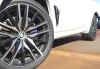 Кузов выполнен в цвете Alpine White. Светодиодные адаптивные фары, легкосплавные диски, рейлинги на крыше и панорамная крыша подчёркивают спортивный характер версии M Sport.