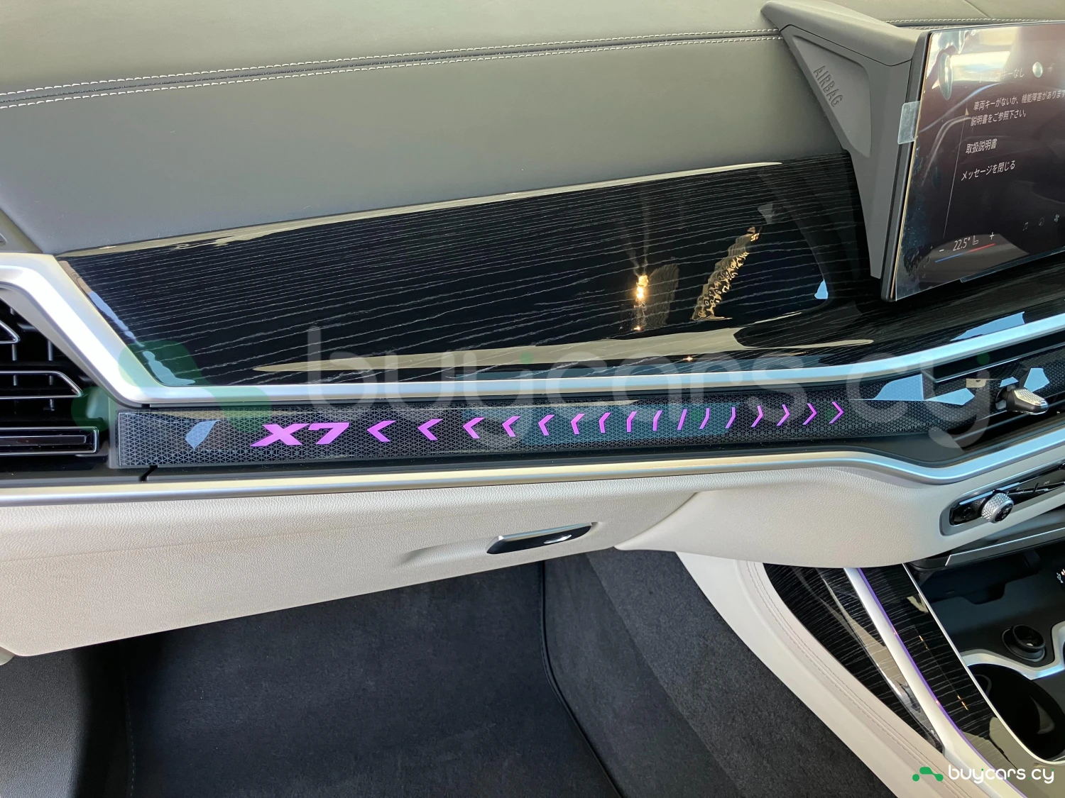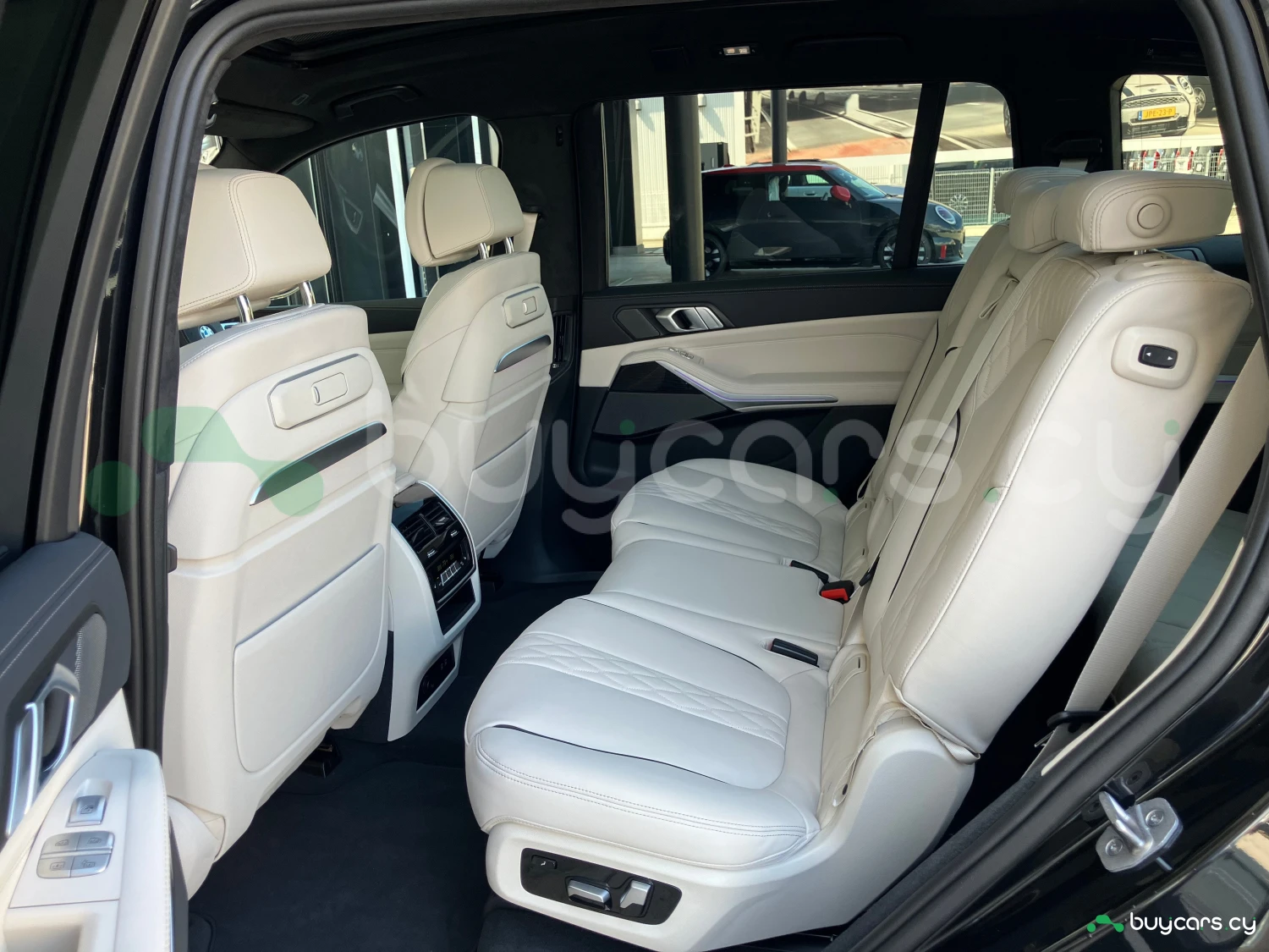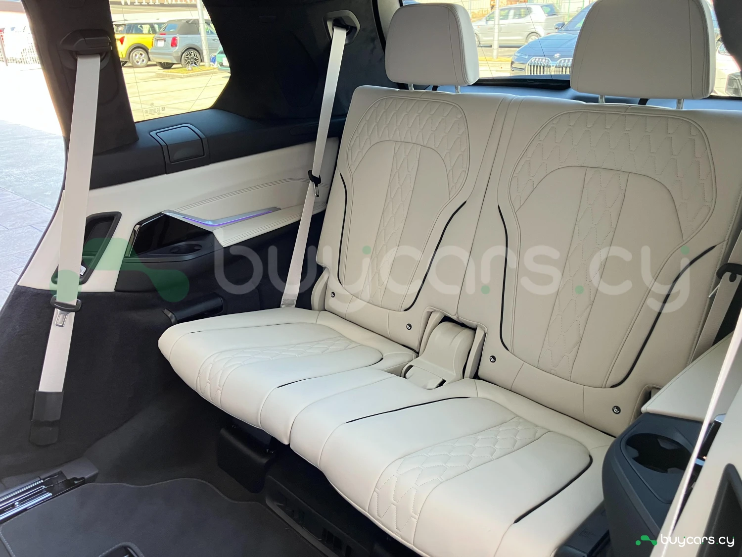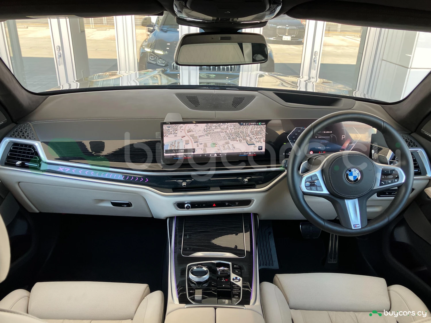 Салон предлагает 7 посадочных мест, отделку кожей Merino, декоративные вставки из натурального дерева и многозонную атмосферную подсветку. Изогнутый дисплей BMW Curved Display объединяет 12.3-дюймовую цифровую приборную панель и 14.9-дюймовый экран мультимедиа с системой iDrive 8.5. В оснащение входят четырёхзонный климат-контроль, подогрев и вентиляция передних сидений, панорамная крыша и аудиосистема Harman Kardon.