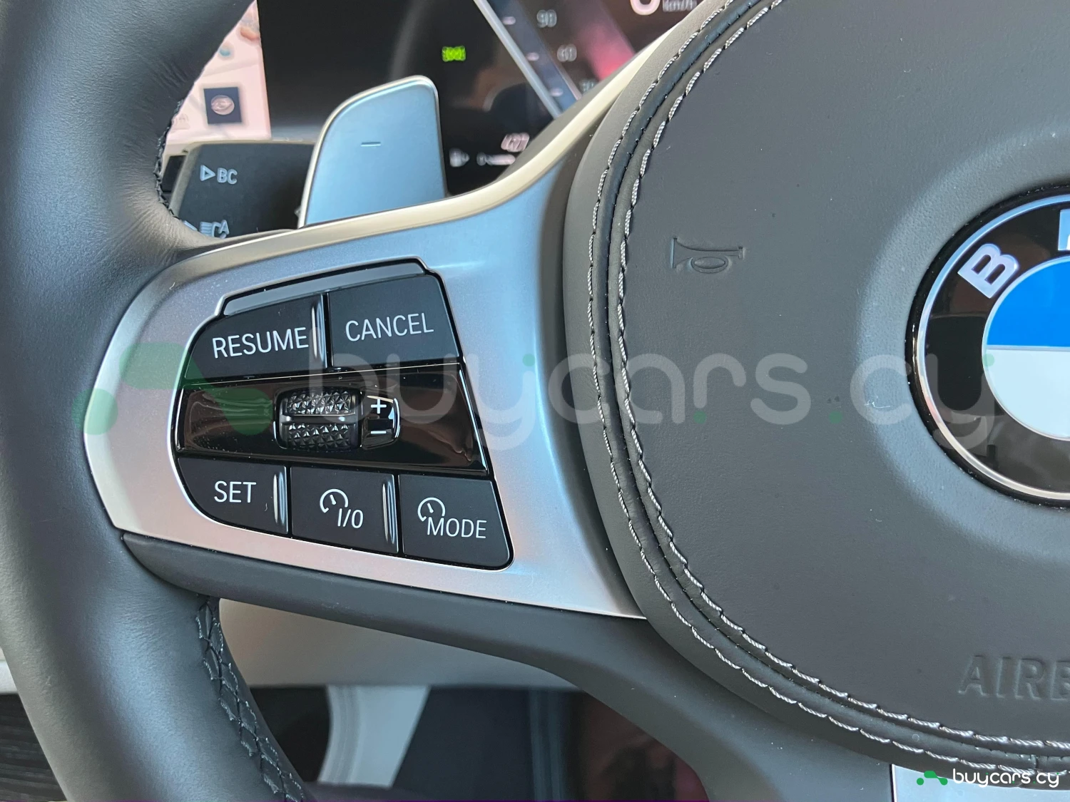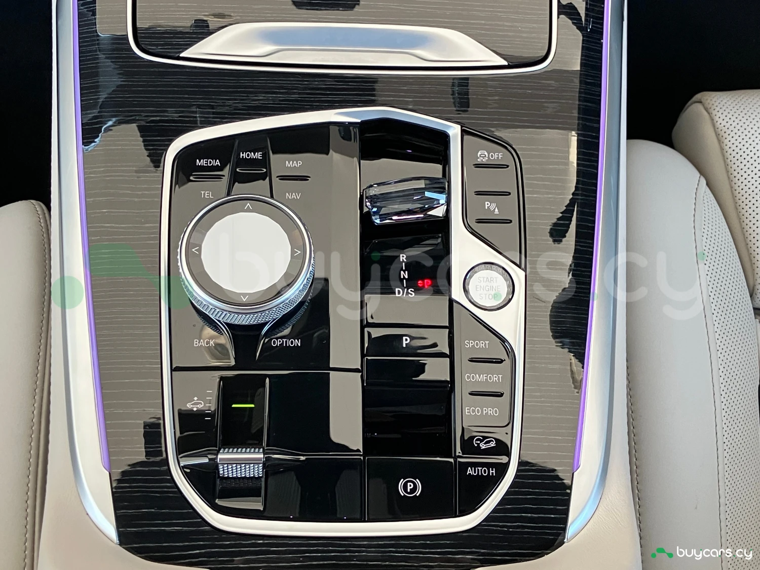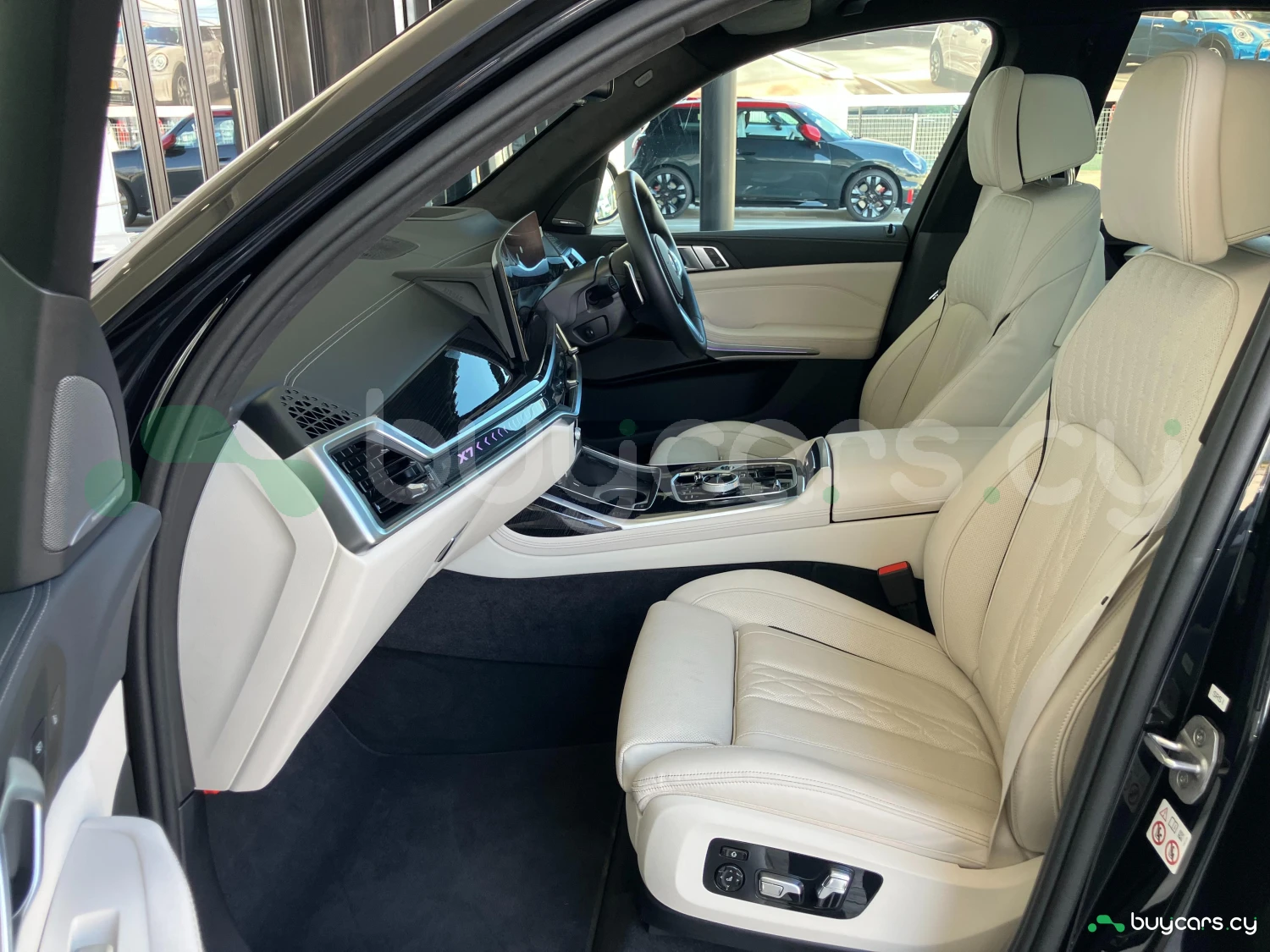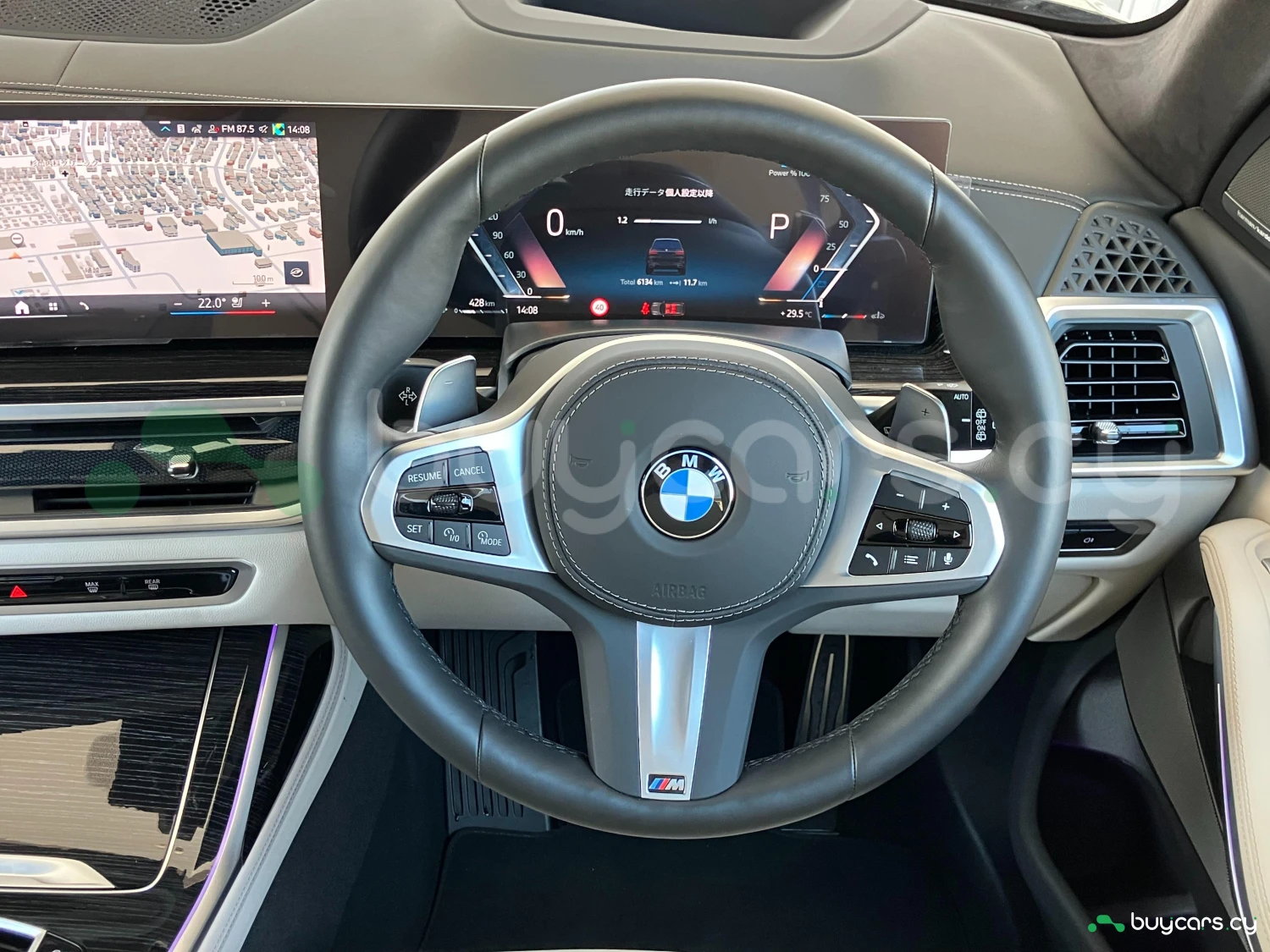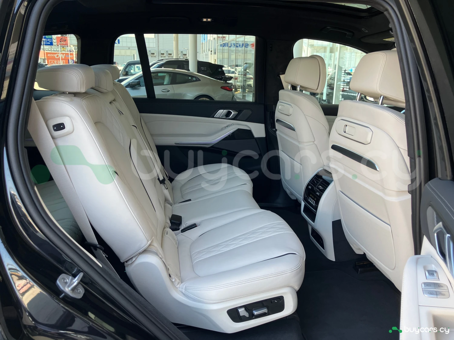Салон предлагает 7 посадочных мест, отделку кожей Merino, декоративные вставки из натурального дерева и многозонную атмосферную подсветку. Изогнутый дисплей BMW Curved Display объединяет 12.3-дюймовую цифровую приборную панель и 14.9-дюймовый экран мультимедиа с системой iDrive 8.5. В оснащение входят четырёхзонный климат-контроль, подогрев и вентиляция передних сидений, панорамная крыша и аудиосистема Harman Kardon.