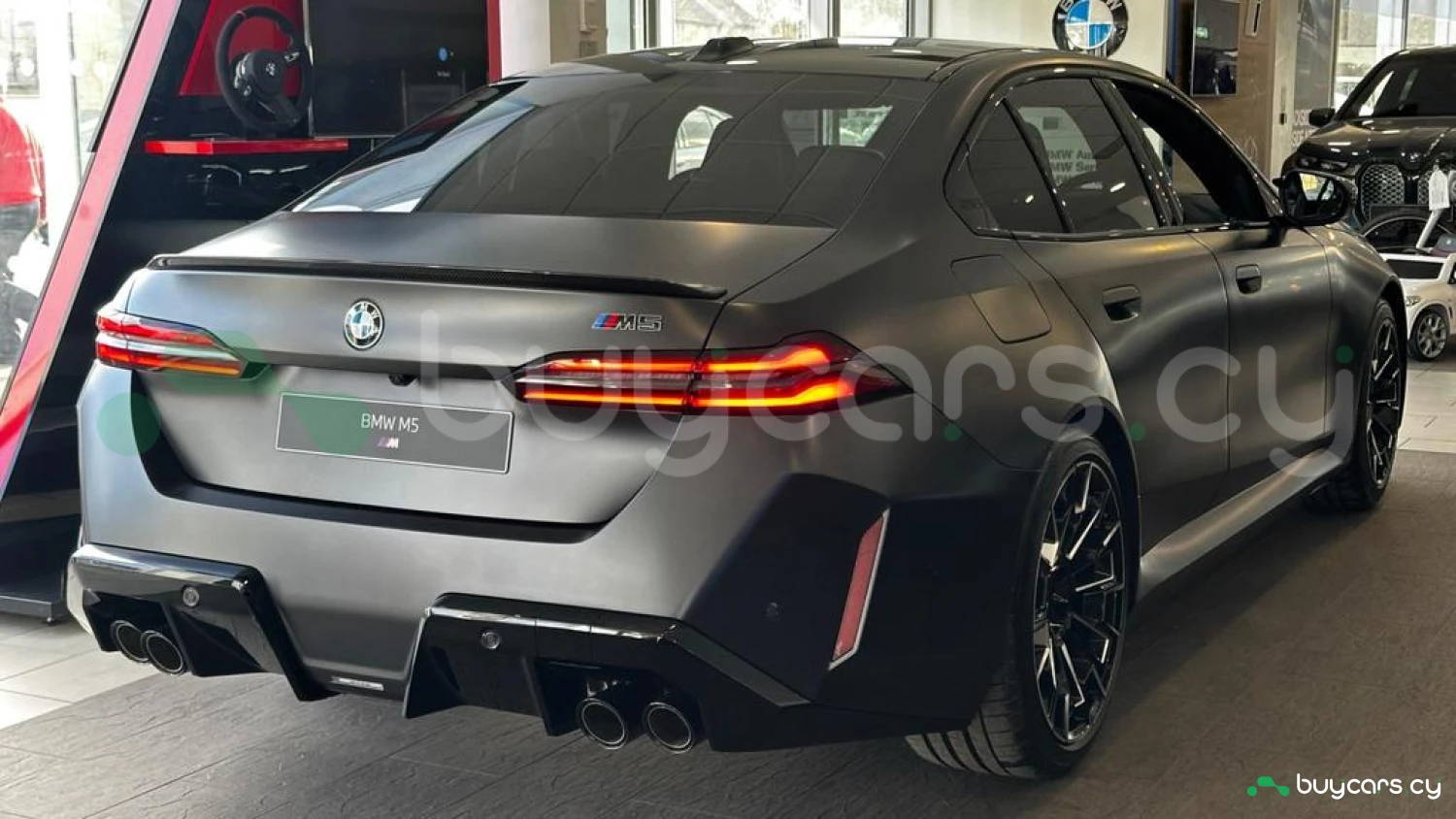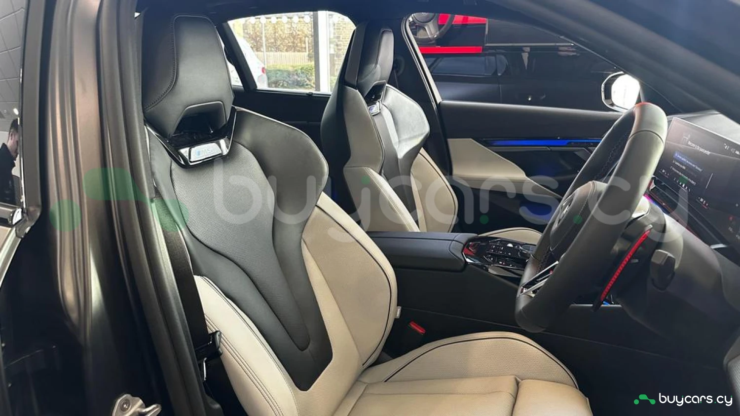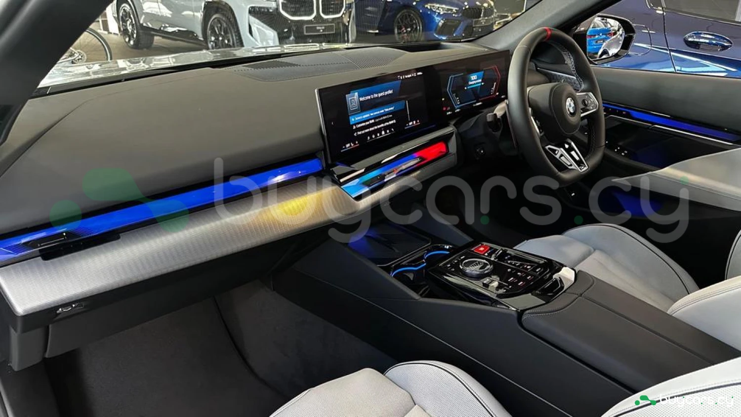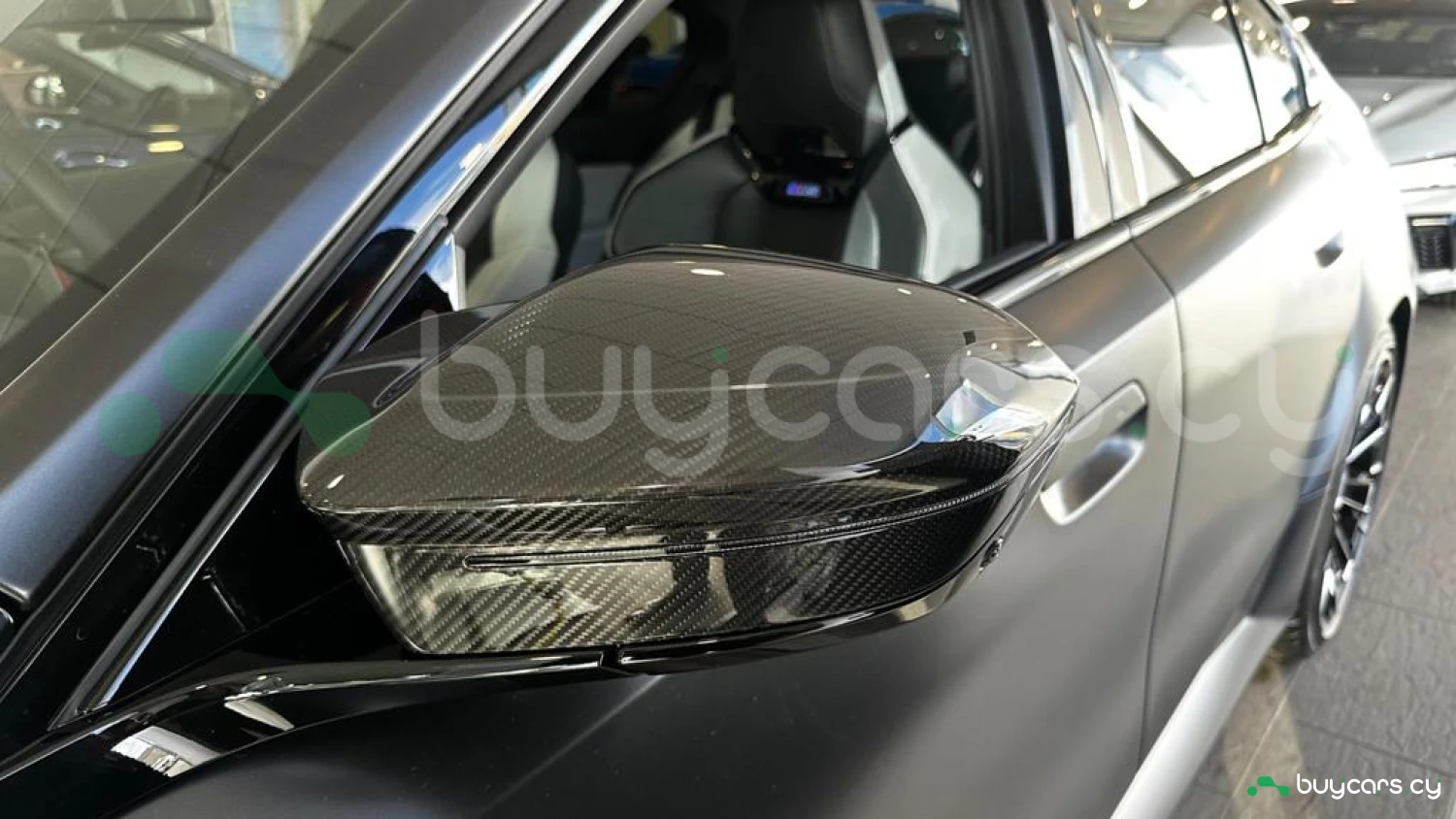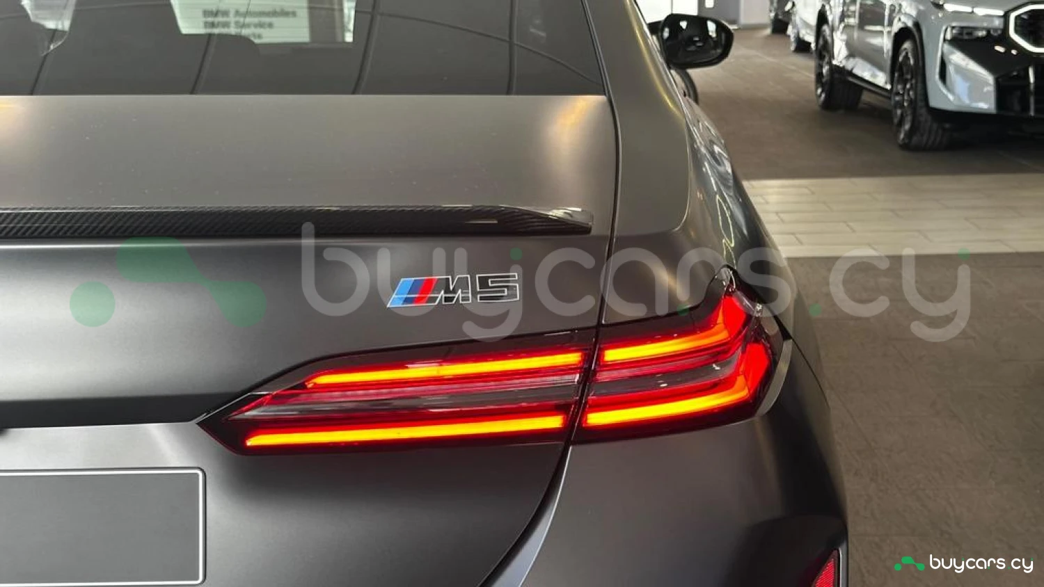 Экстерьер и колеса: специальный цвет Frozen Deep Grey Metallic, 20-21-дюймовые диски M Light 952 M Bicolour Black (дополнительная опция), M Carbon Exterior Package (дополнительная опция), пакет внешней подсветки BMW Iconic Glow, глянцевая черная отделка Shadowline, панорамная стеклянная крыша, солнцезащитное стекло, черные глянцевые зеркала, антенна "акулий плавник" в цвет кузова, дверные ручки заподлицо с кузовом.