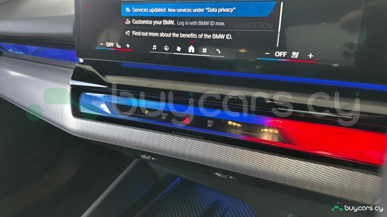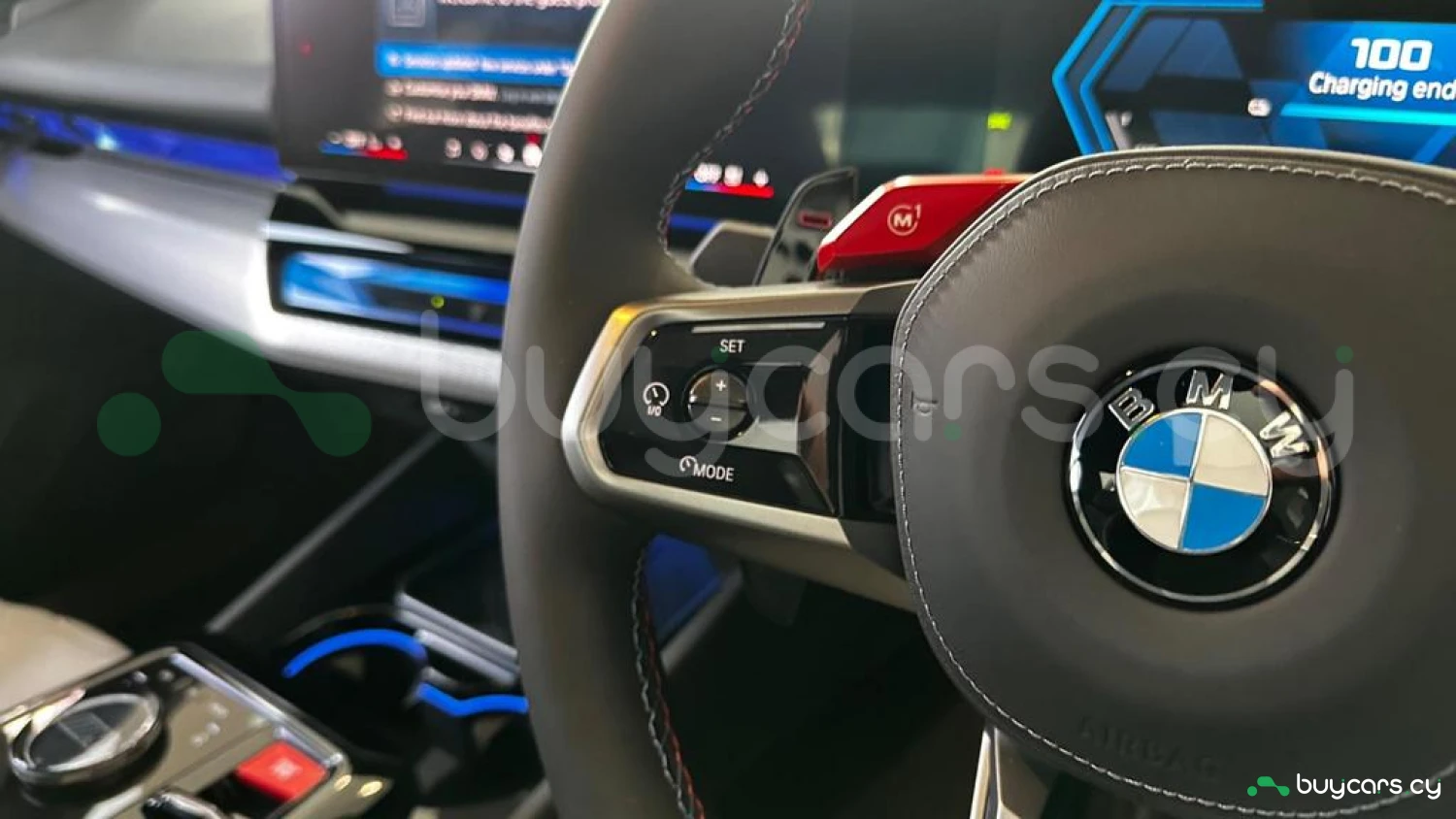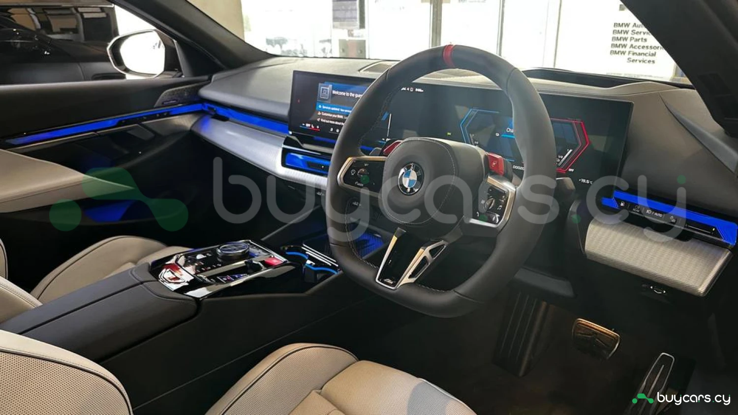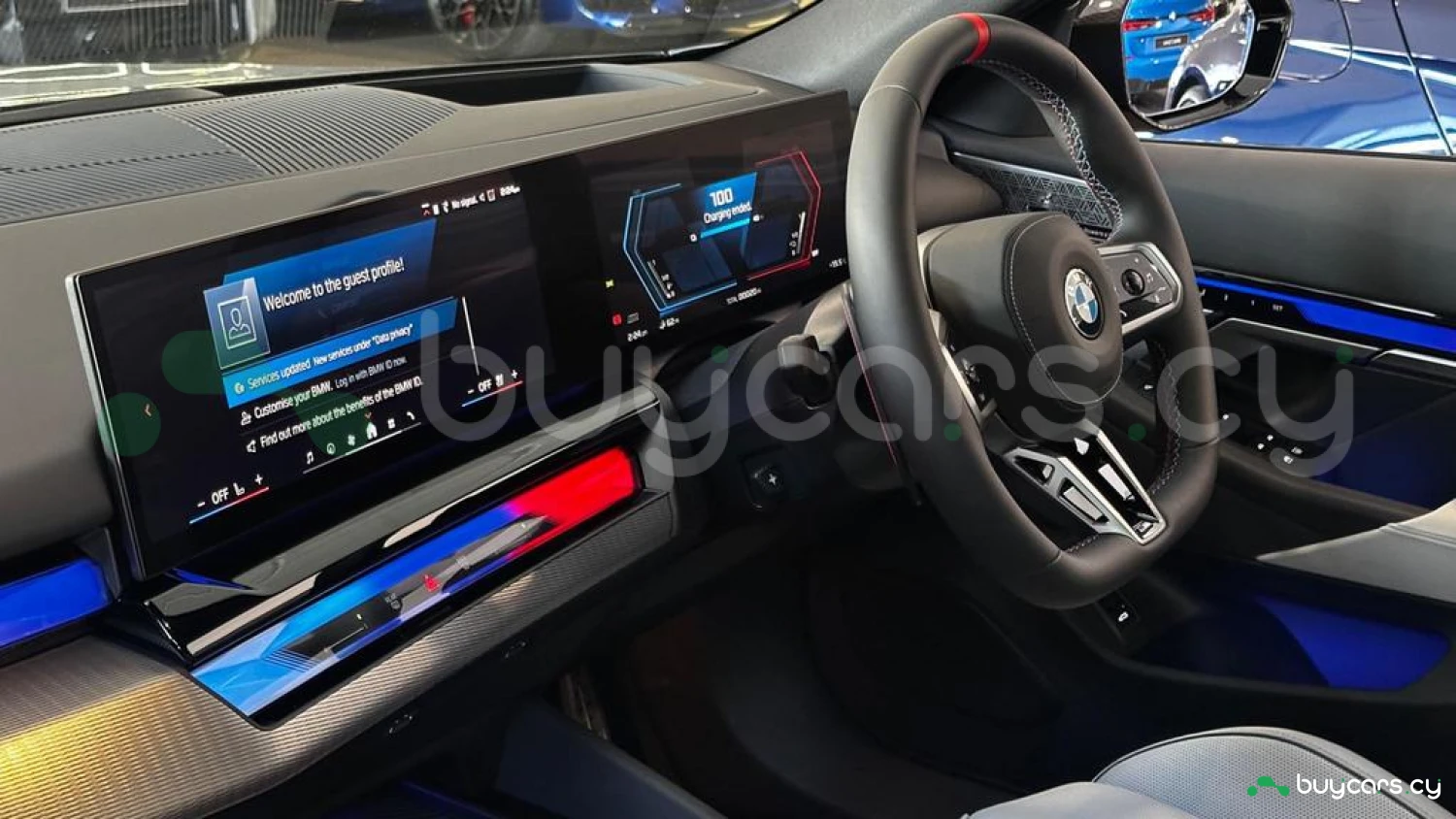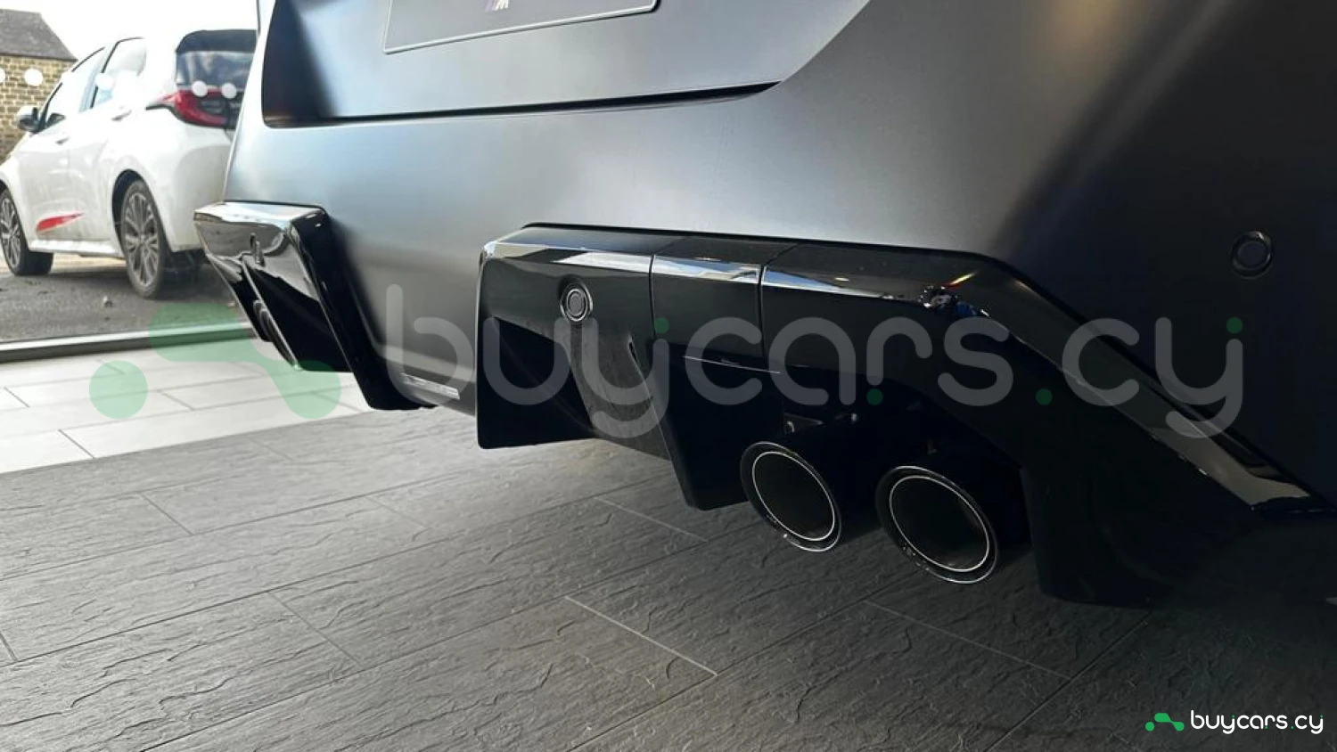 Экстерьер и колеса: специальный цвет Frozen Deep Grey Metallic, 20-21-дюймовые диски M Light 952 M Bicolour Black (дополнительная опция), M Carbon Exterior Package (дополнительная опция), пакет внешней подсветки BMW Iconic Glow, глянцевая черная отделка Shadowline, панорамная стеклянная крыша, солнцезащитное стекло, черные глянцевые зеркала, антенна "акулий плавник" в цвет кузова, дверные ручки заподлицо с кузовом.