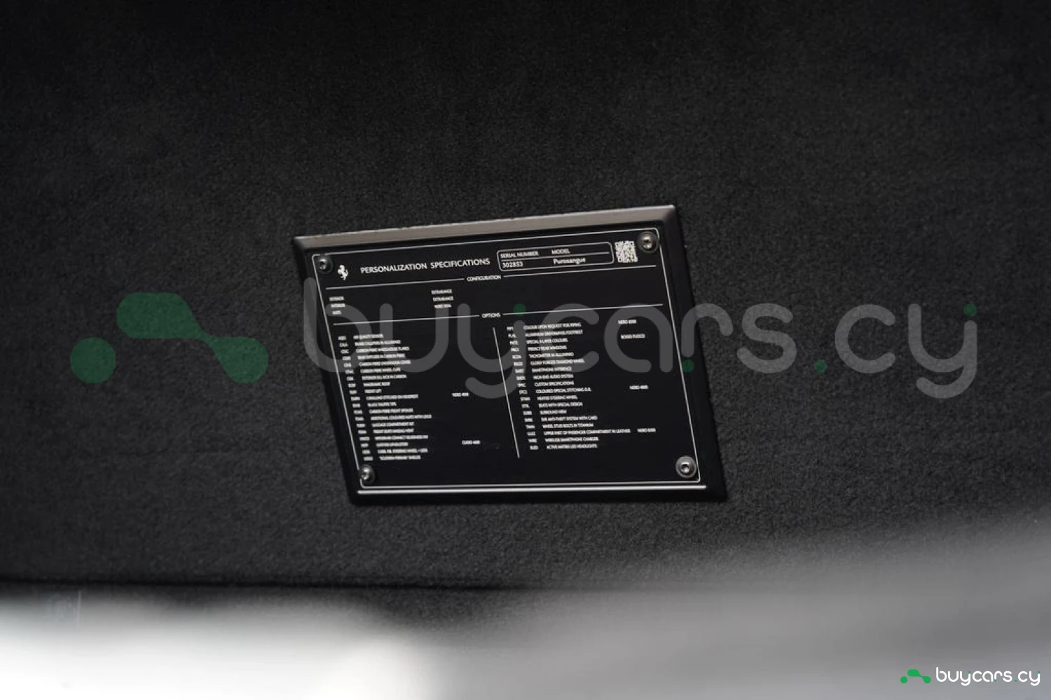 Оборудование безопасности: Ferrari Purosangue оснащен двухступенчатыми фронтальными подушками безопасности и боковыми подушками безопасности для максимальной защиты. Включает антиблокировочную систему ABS EVO, крепления ISOFIX для задних сидений и продвинутую противоугонную систему с транспондерным ключом и дистанционным управлением дверей и багажника. Система восстановления украденного автомобиля повышает безопасность, а PCV 3.0 с независимым рулевым управлением задних колес улучшает устойчивость и маневренность. Трекшн-контроль F1 с интеграцией SSC (Side Slip Control) обеспечивает идеальное сцепление и контроль в любых условиях.