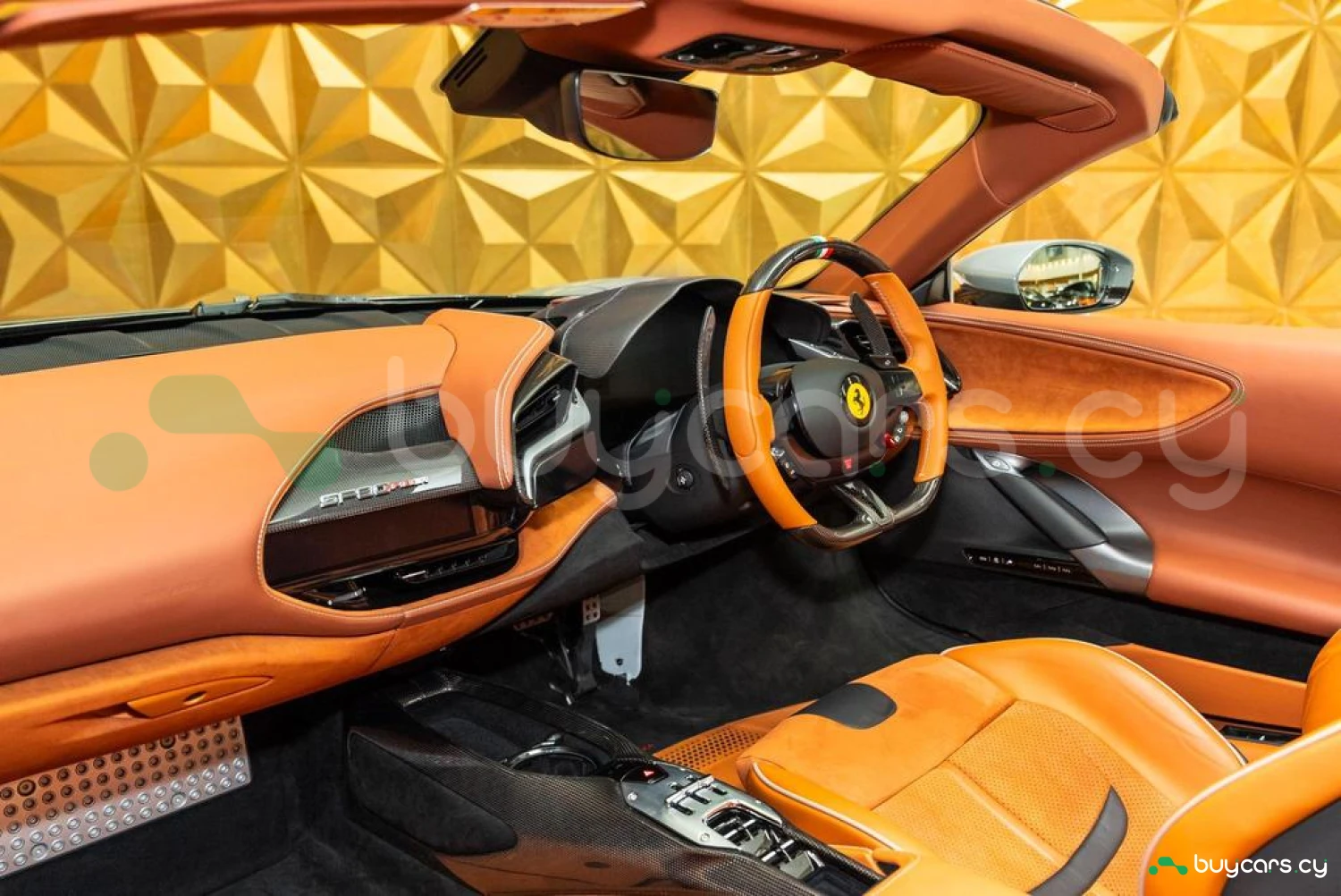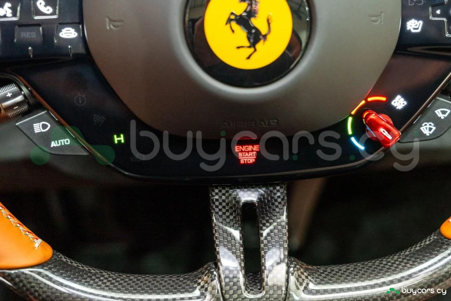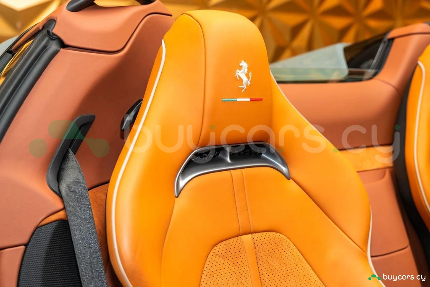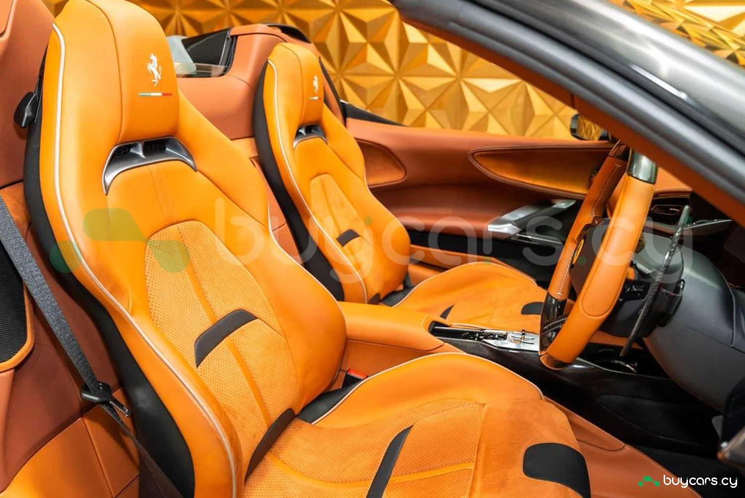 Интерьер и комфорт: Двухцветная кожаная отделка салона в Terra Bruciata, Центральные вставки сидений из алькантары, Вышитый логотип Cavallino на подголовниках, Руль с трехцветной прострочкой, Карбоновая зона водителя с LED-индикаторами, Карбоновые вставки на приборной панели, Коврики из кожи и алькантары, Канты по бокам сидений, Контрастные цветные детали салона.