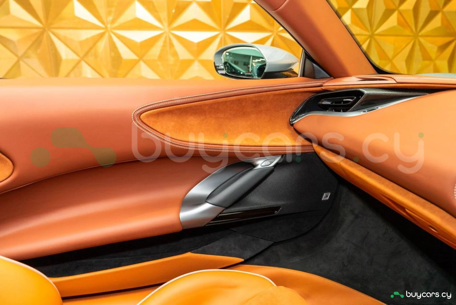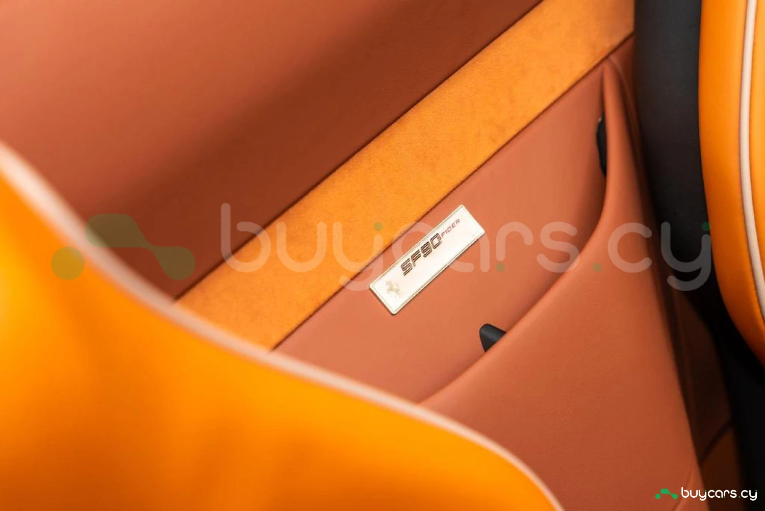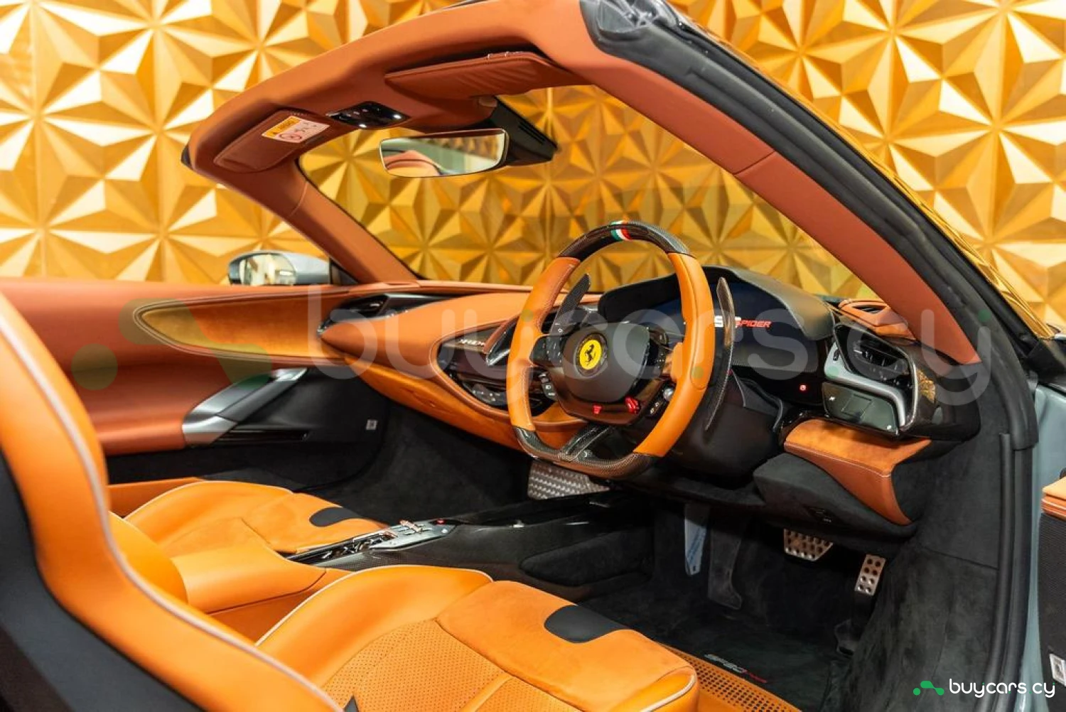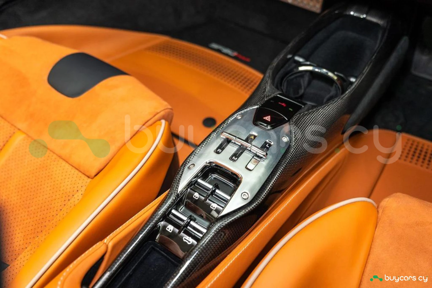 Интерьер и комфорт: Двухцветная кожаная отделка салона в Terra Bruciata, Центральные вставки сидений из алькантары, Вышитый логотип Cavallino на подголовниках, Руль с трехцветной прострочкой, Карбоновая зона водителя с LED-индикаторами, Карбоновые вставки на приборной панели, Коврики из кожи и алькантары, Канты по бокам сидений, Контрастные цветные детали салона.