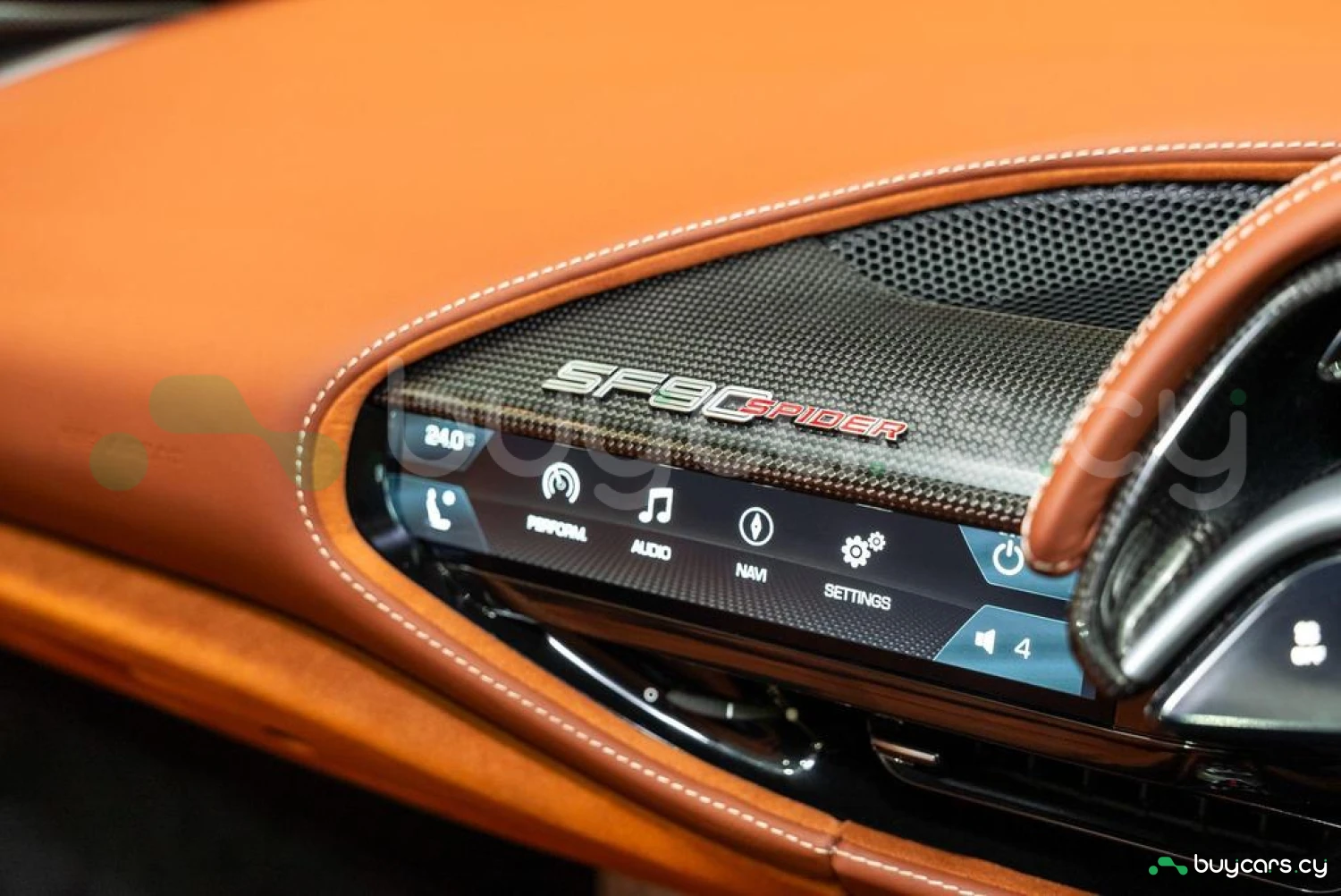 Мультимедиа и оснащение: Apple CarPlay, Bluetooth Audio Streaming, Цифровое радио DAB, Премиальная аудиосистема Hi-Fi, Мультимедийная система Ferrari, Бесключевой доступ, Кнопка запуска двигателя на руле.