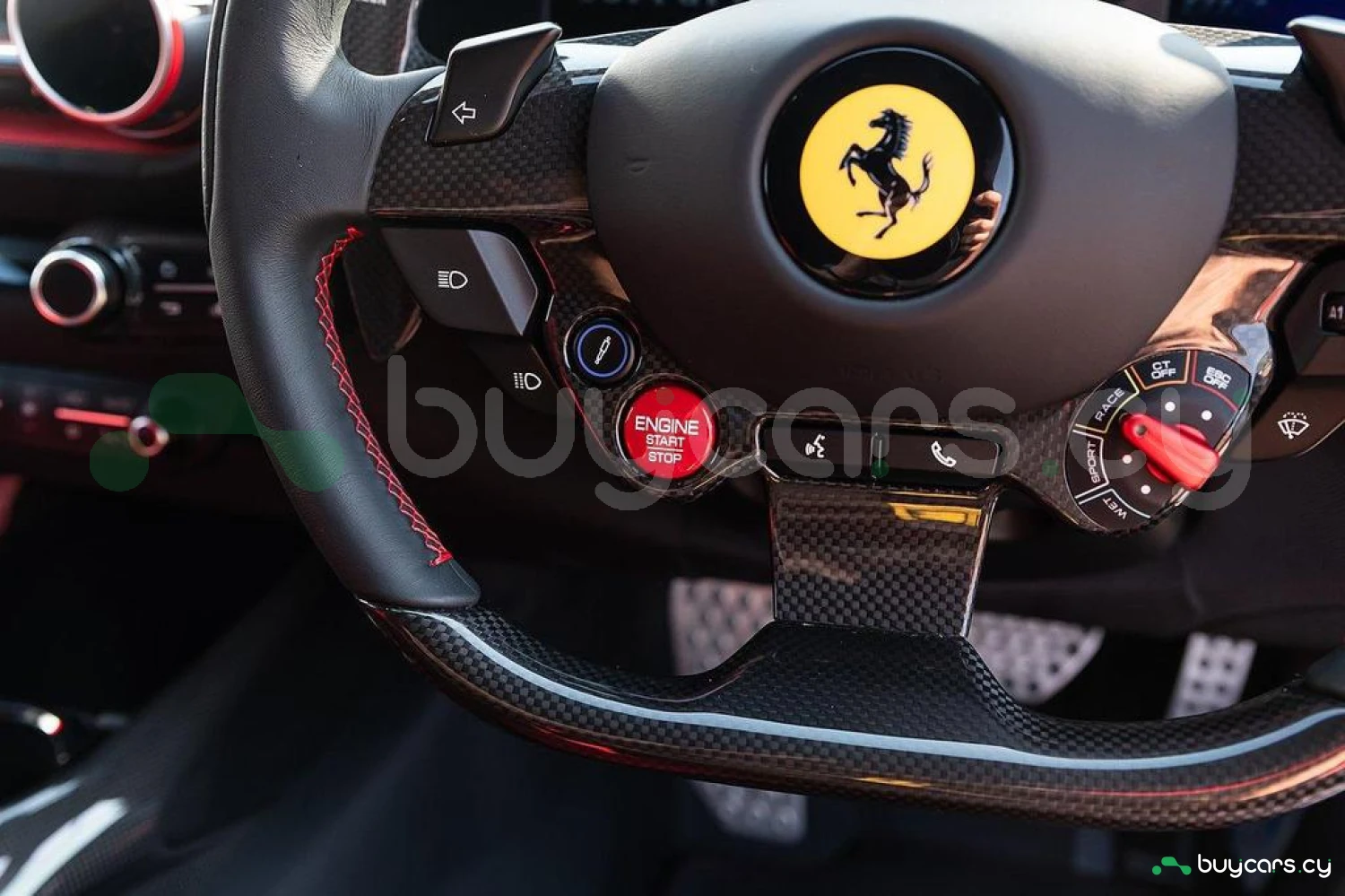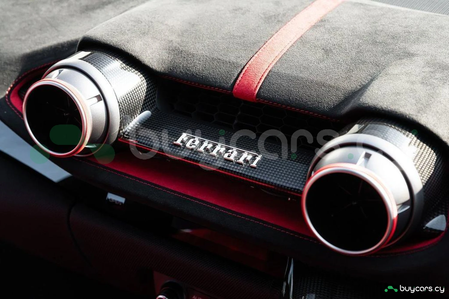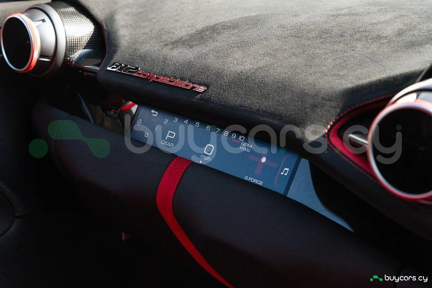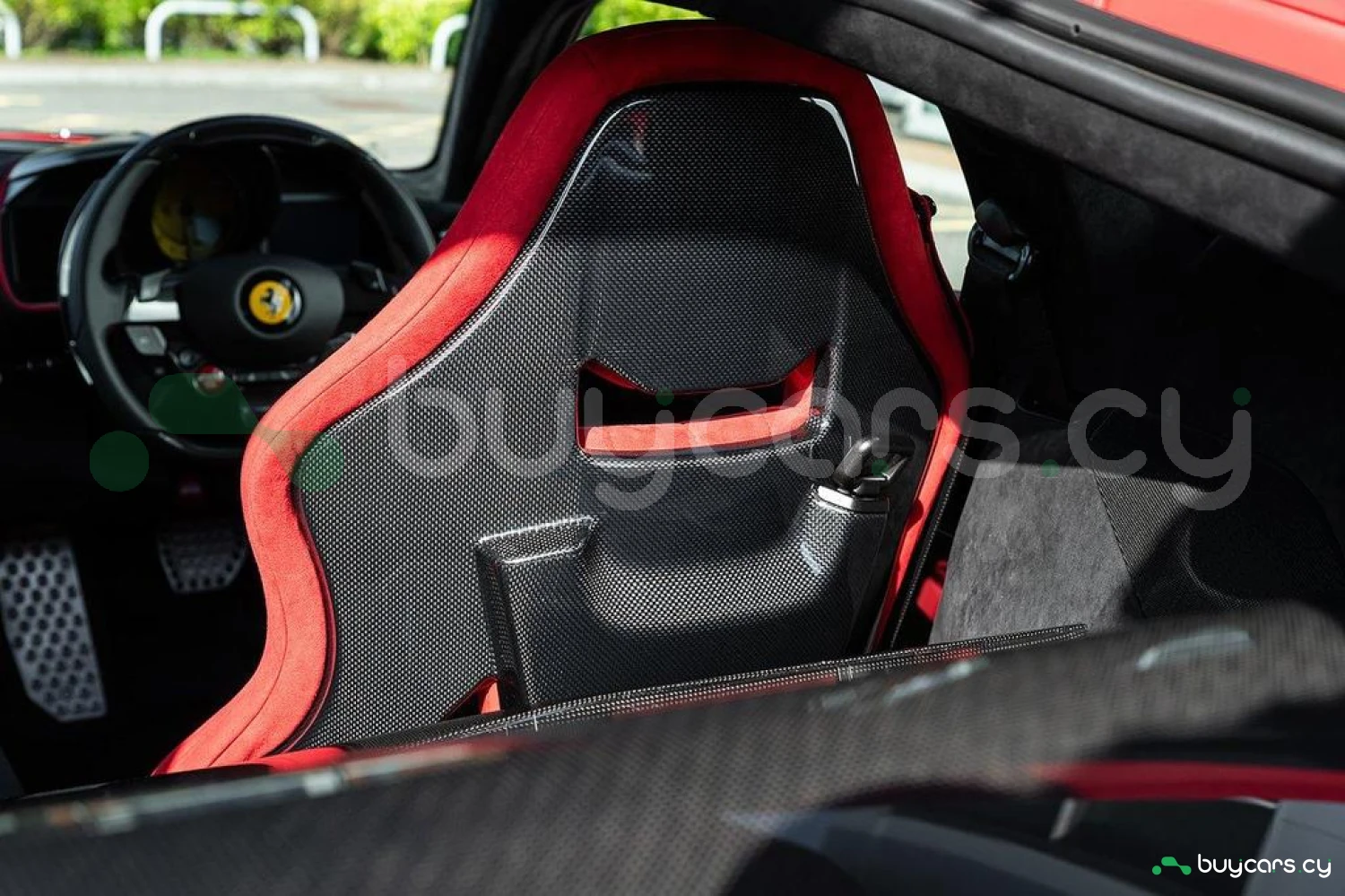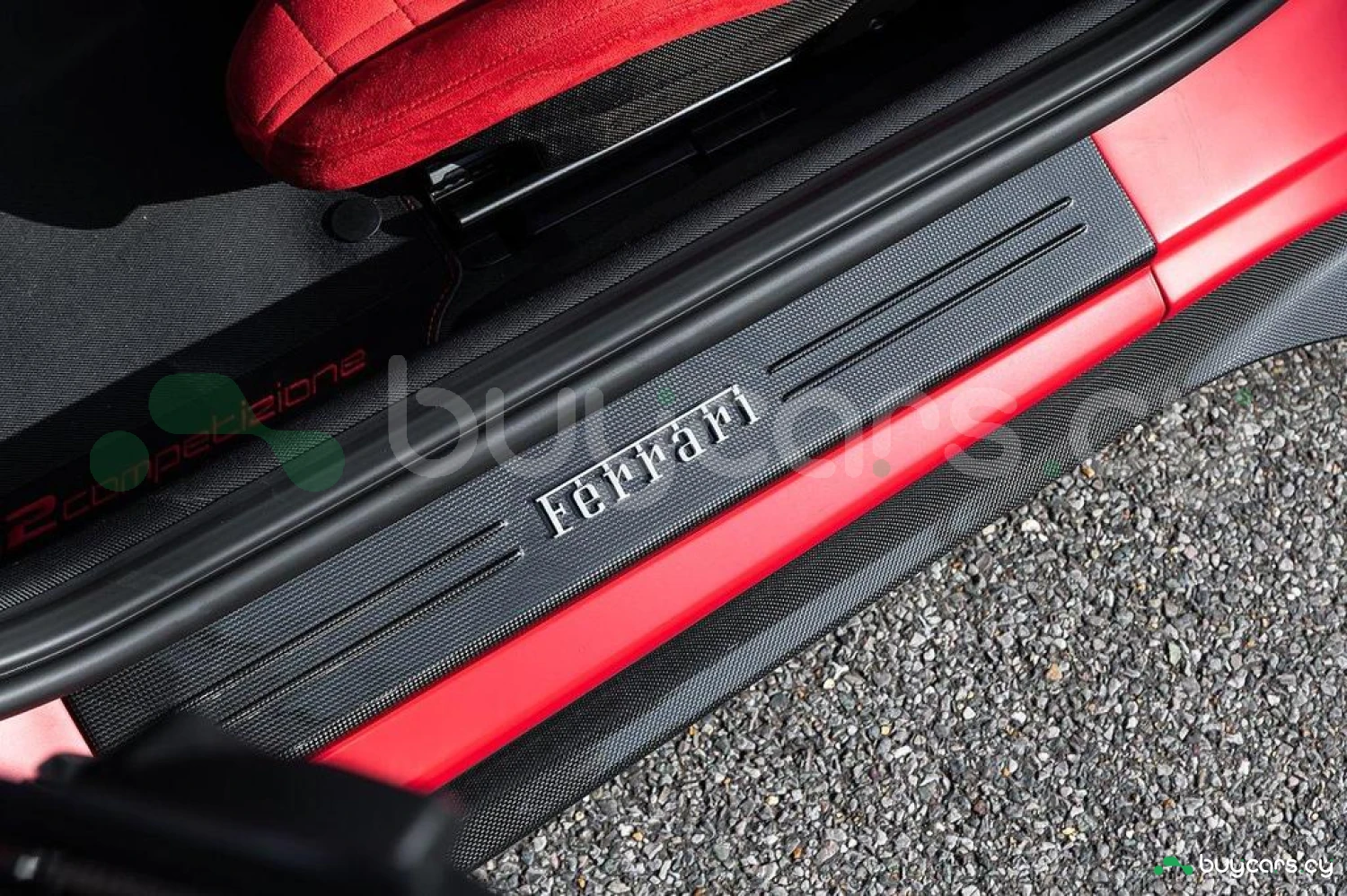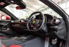 Интерьер: Отделка Rosso FX и Nero Alcantara с увеличенными гоночными сиденьями в клетку. Полностью обтянутые Alcantara Rosso FX сиденья с вставками и внутренними деталями того же цвета, вышивка Cavallino на подголовниках. Верхняя часть пассажирского отсека отделана Nero Alcantara, красные накладки на дефлекторах воздуховодов, специальная контрастная прострочка Rosso и дополнительные коврики с логотипом. Карбоновые вставки включают дверные ручки, элементы панели приборов, полку багажника, карбоновую накладку приборной панели и центральную консоль.