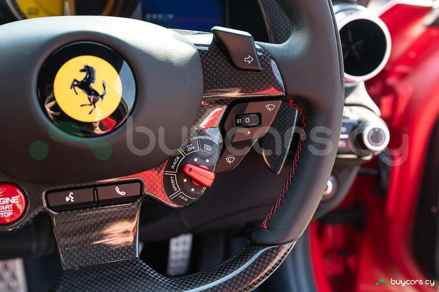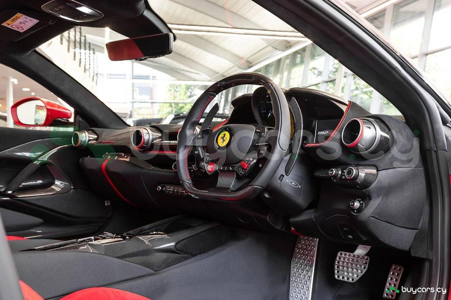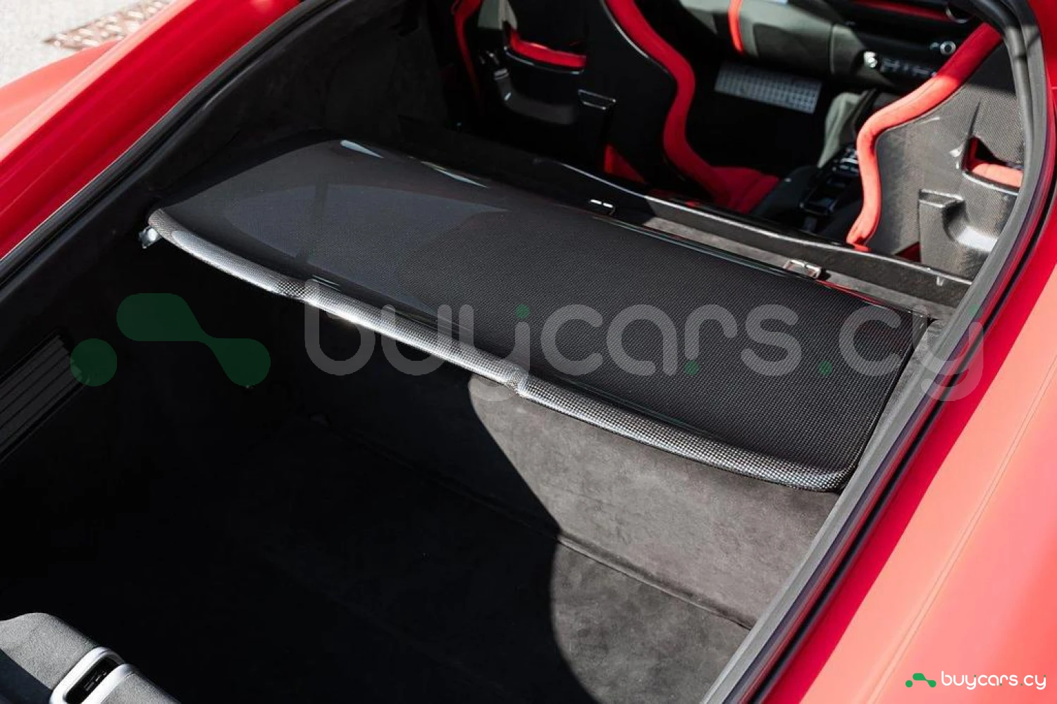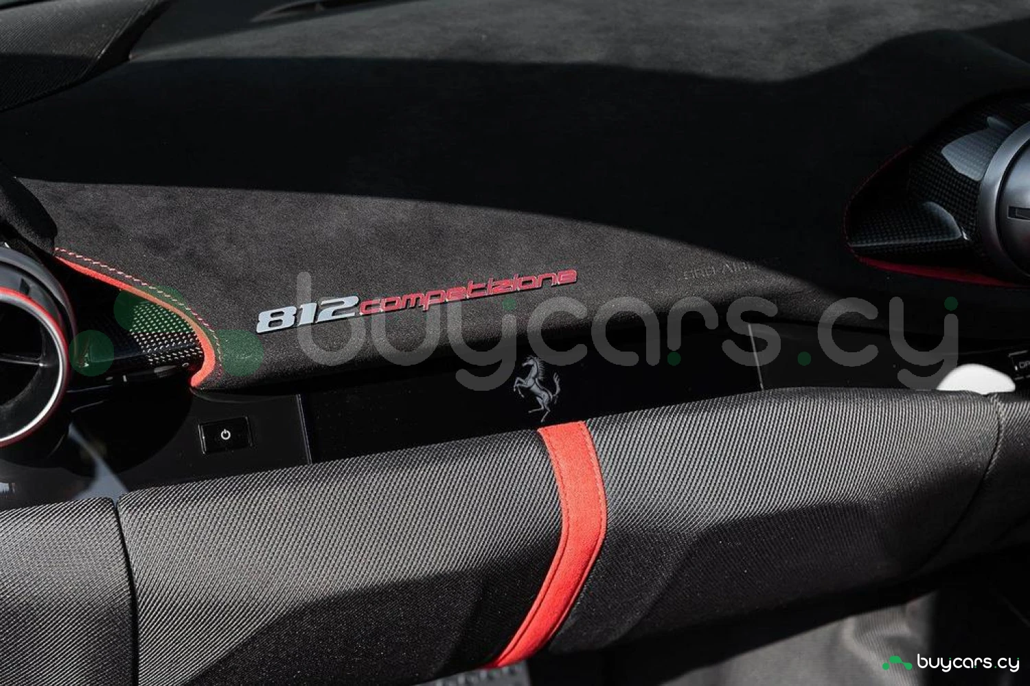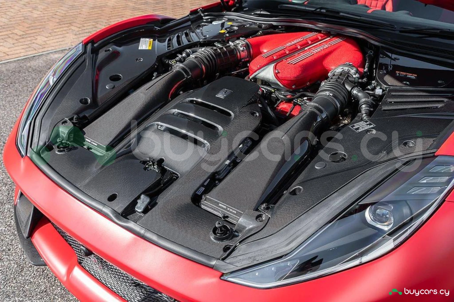 Интерьер: Отделка Rosso FX и Nero Alcantara с увеличенными гоночными сиденьями в клетку. Полностью обтянутые Alcantara Rosso FX сиденья с вставками и внутренними деталями того же цвета, вышивка Cavallino на подголовниках. Верхняя часть пассажирского отсека отделана Nero Alcantara, красные накладки на дефлекторах воздуховодов, специальная контрастная прострочка Rosso и дополнительные коврики с логотипом. Карбоновые вставки включают дверные ручки, элементы панели приборов, полку багажника, карбоновую накладку приборной панели и центральную консоль.