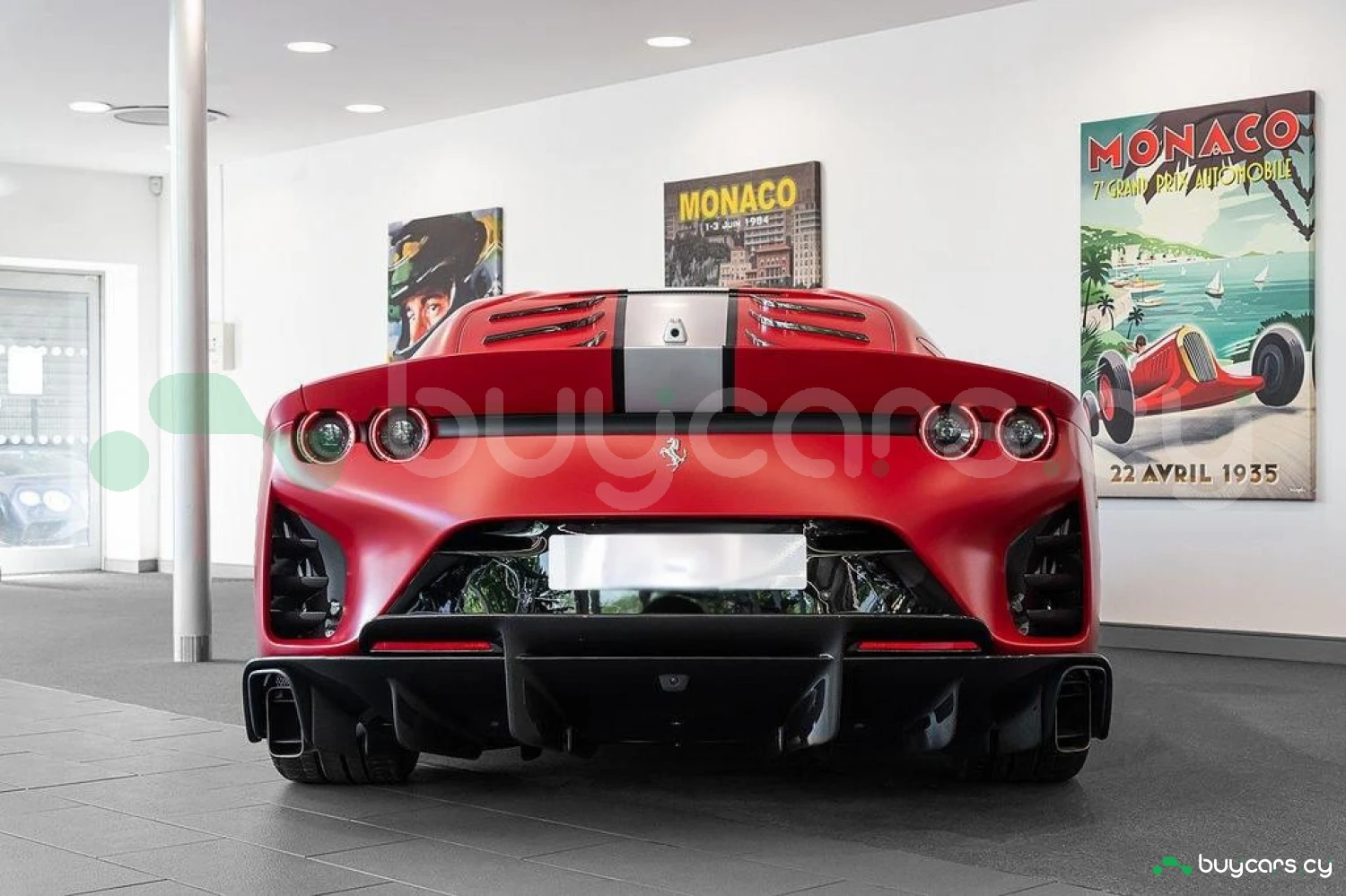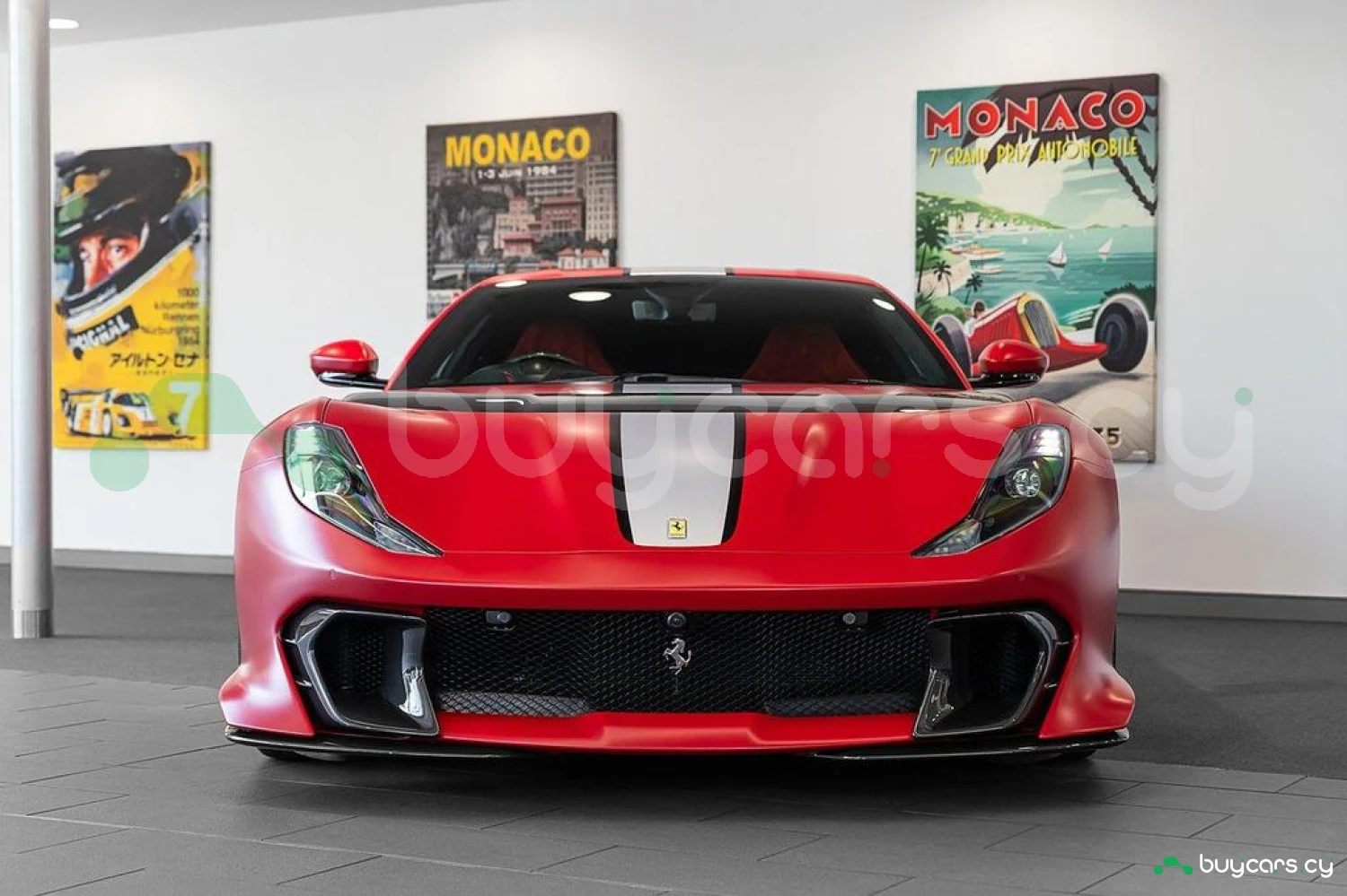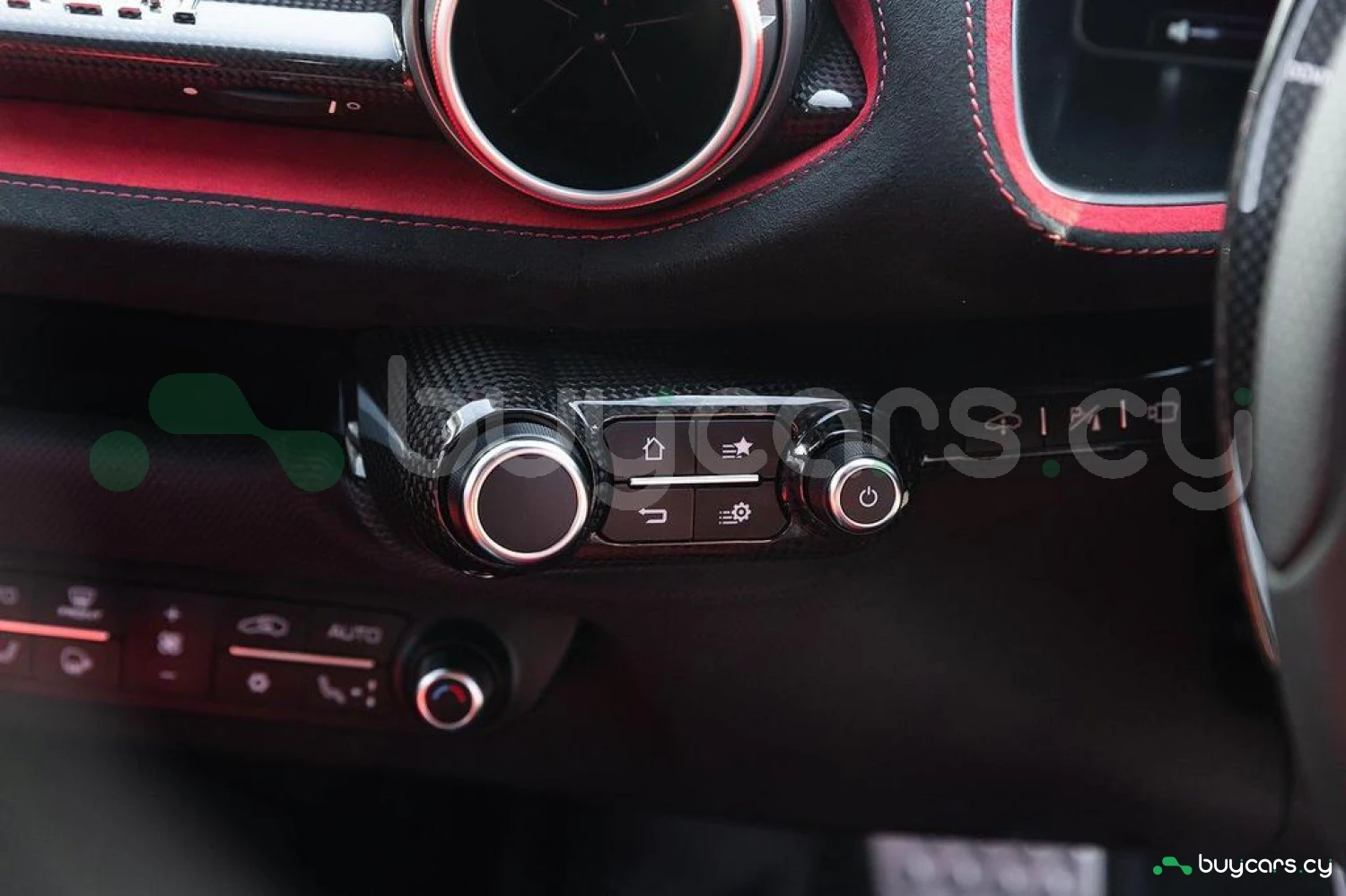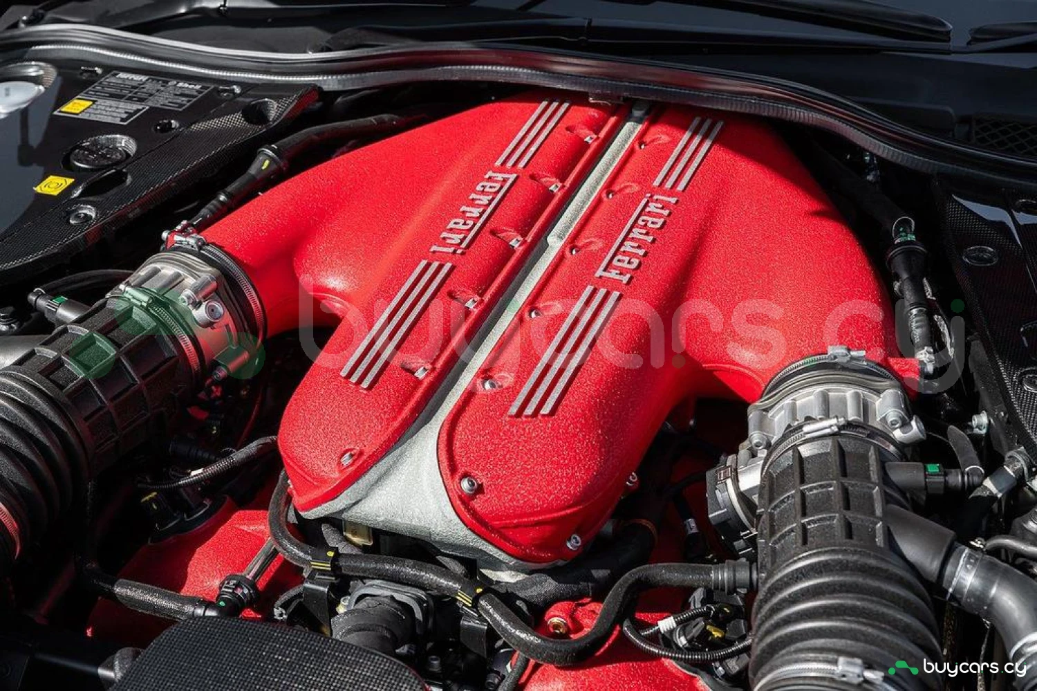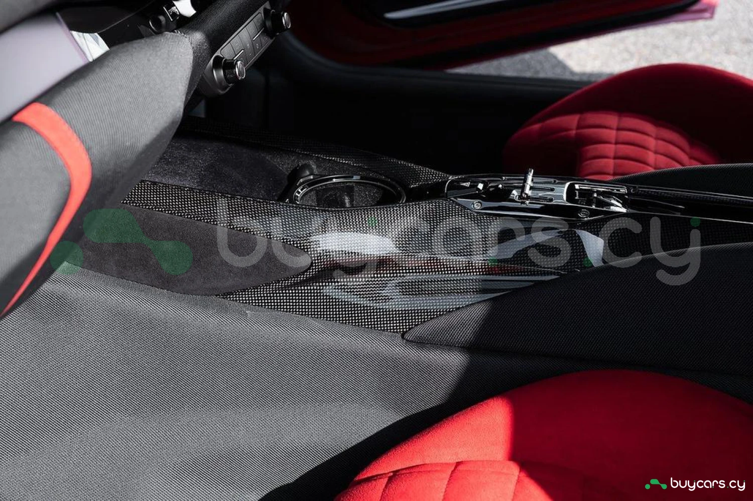 Интерьер: Отделка Rosso FX и Nero Alcantara с увеличенными гоночными сиденьями в клетку. Полностью обтянутые Alcantara Rosso FX сиденья с вставками и внутренними деталями того же цвета, вышивка Cavallino на подголовниках. Верхняя часть пассажирского отсека отделана Nero Alcantara, красные накладки на дефлекторах воздуховодов, специальная контрастная прострочка Rosso и дополнительные коврики с логотипом. Карбоновые вставки включают дверные ручки, элементы панели приборов, полку багажника, карбоновую накладку приборной панели и центральную консоль.
