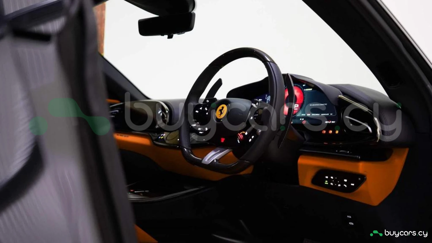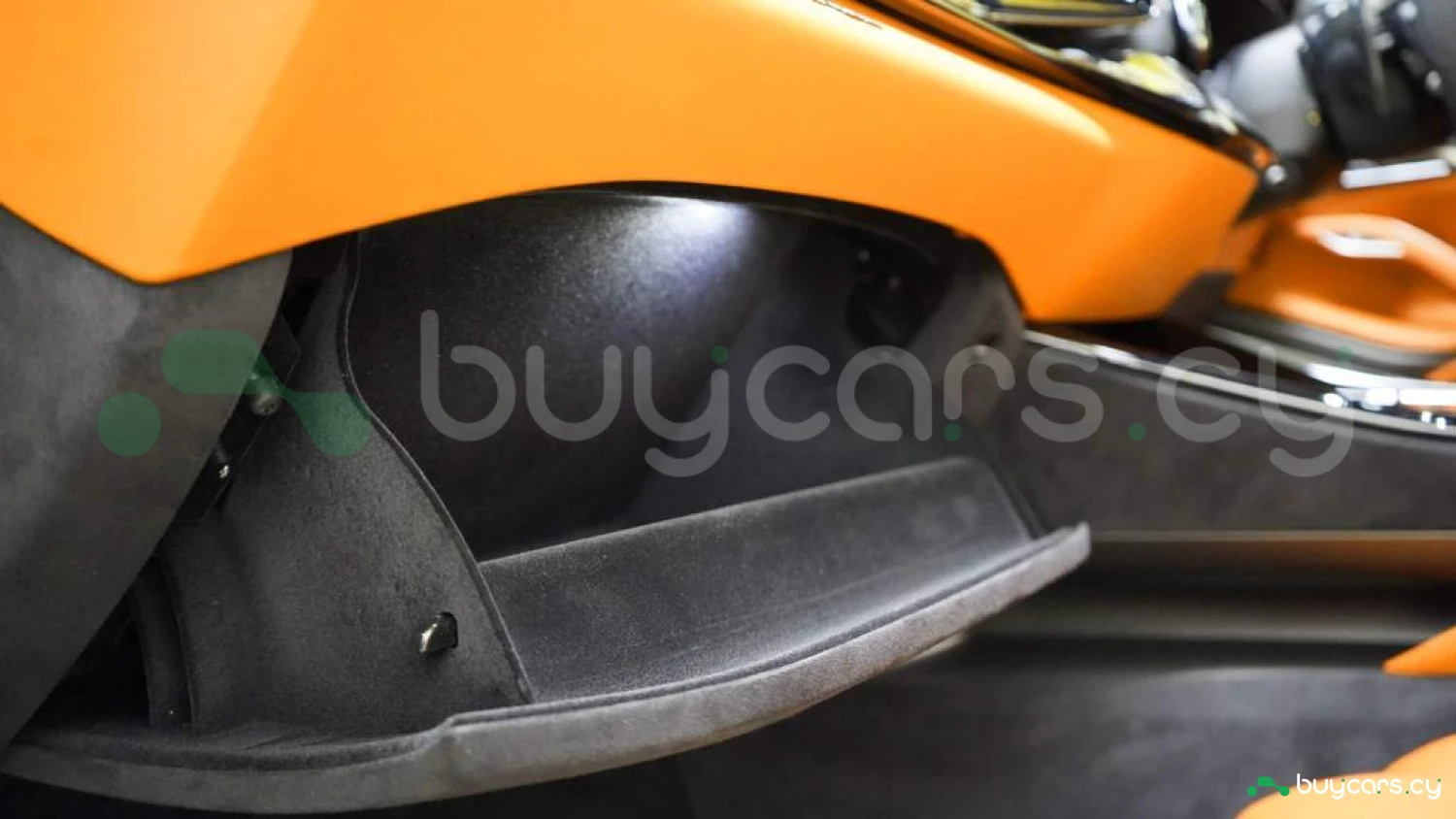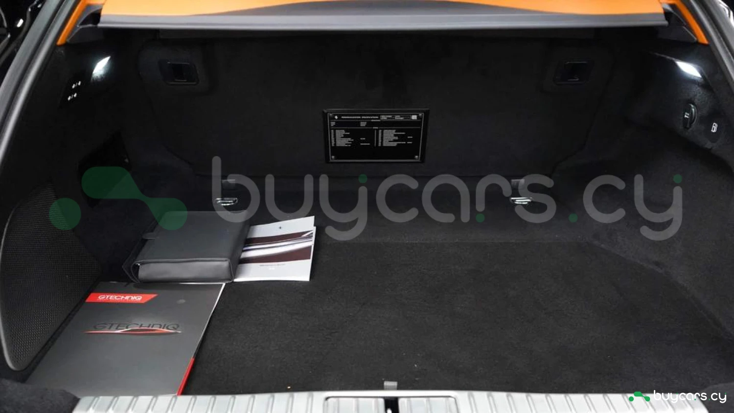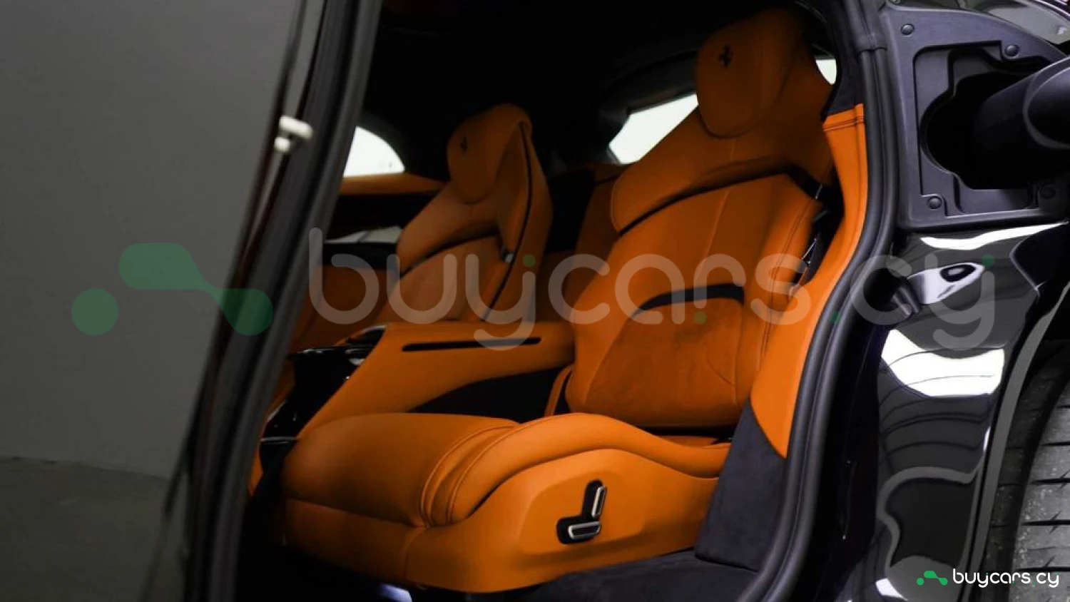 Кожаный салон цвета Mandarin Orange – по индивидуальному заказу, верхняя зона интерьера в цвете Mandarin Orange – по спецзаказу, контрастная прострочка Mandarin Orange – по спецзаказу, руль из углеродного волокна с LED-индикацией, полностью электрические сиденья, четырёхзонный климат-контроль, датчики качества воздуха, багажный комплект, индивидуальный пакет персонализации, 16-дюймовая полностью цифровая приборная панель, бесключевой запуск двигателя.