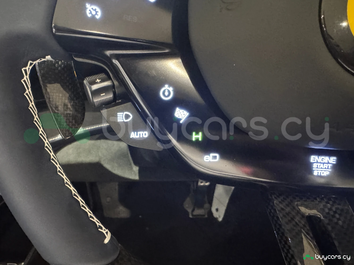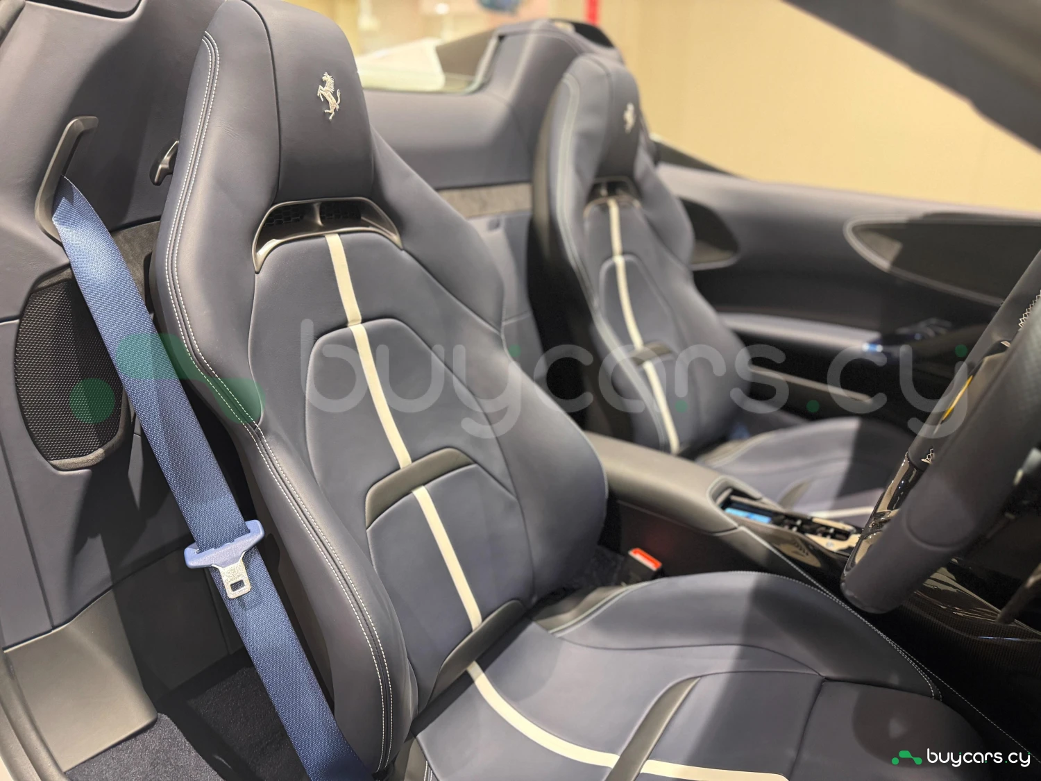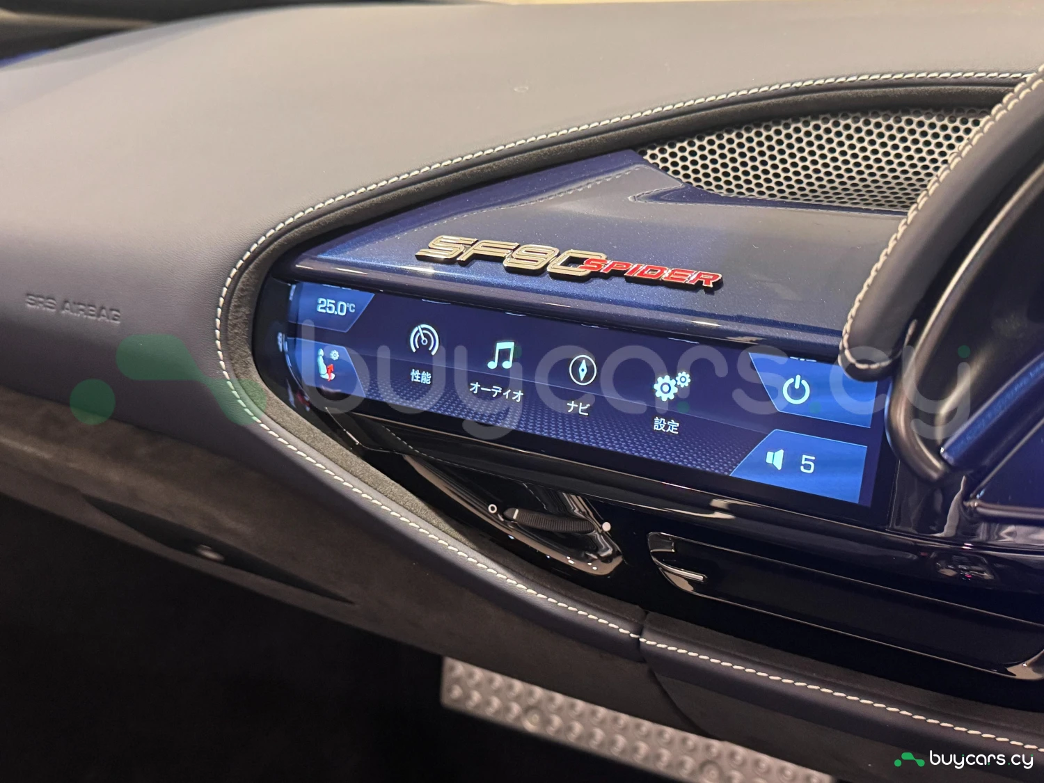 Салон выполнен с упором на премиальные материалы и технологии: кожаные сиденья, электропривод регулировок, карбоновые вставки. Оснащение включает навигацию с памятью, мультимедийную систему с Apple CarPlay и Android Auto, ETC, Bluetooth и другие опции подключения. Для комфорта предусмотрены климат-контроль с охлаждением, умный ключ, электростеклоподъёмники и расширенные функции управления.
