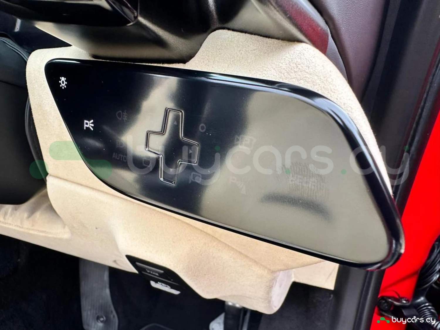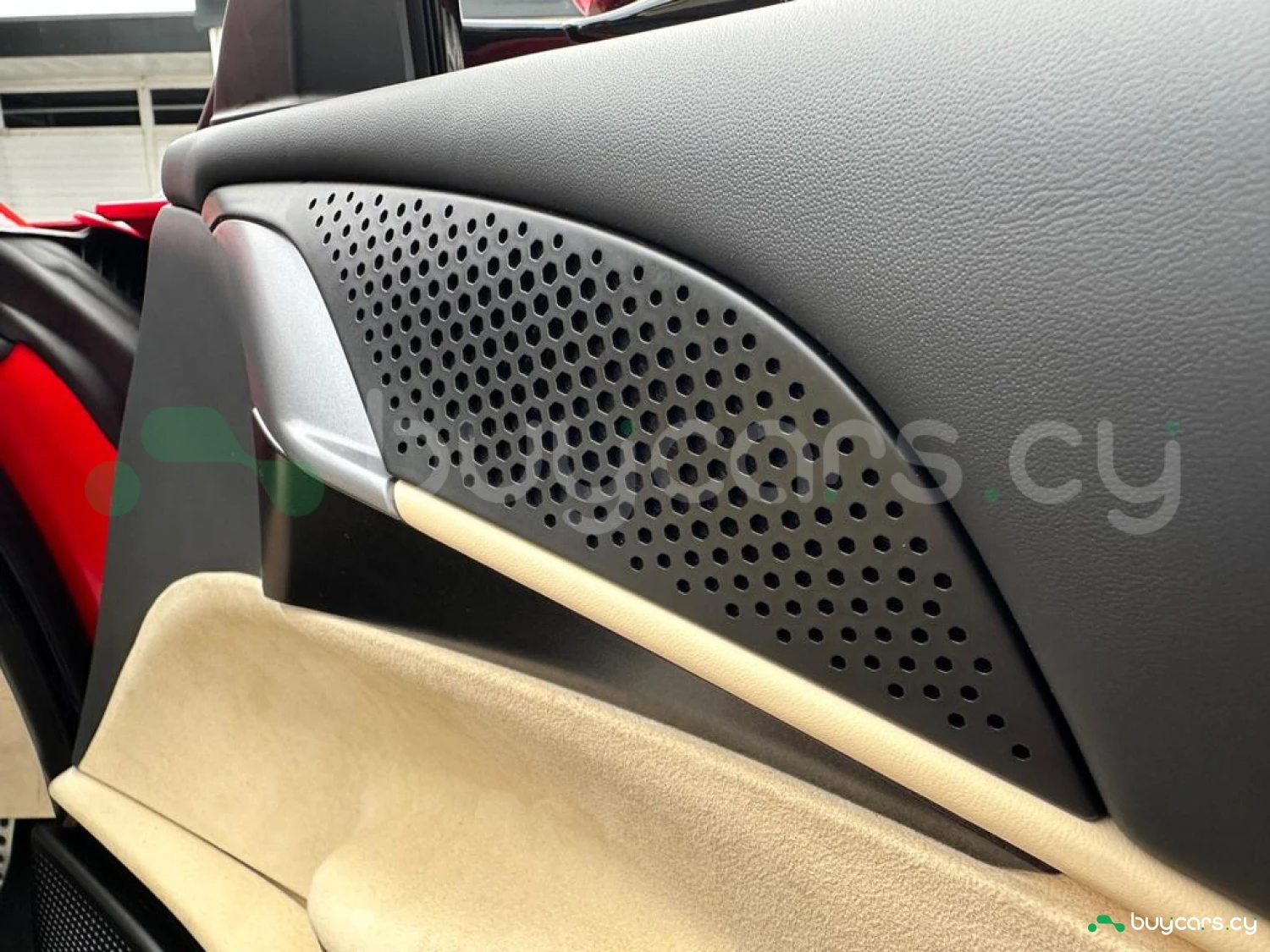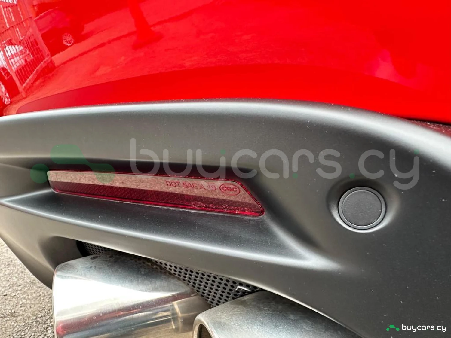 Экстерьер: Окраска Rosso Corsa, 20-дюймовые хромированные легкосплавные диски, желтые тормозные суппорты, металлический флаг на крыле, шины Pirelli, тканевый защитный кожух, полностью светодиодные фары, светодиодные задние фонари, электрические подогреваемые боковые зеркала с автоматическим складыванием.