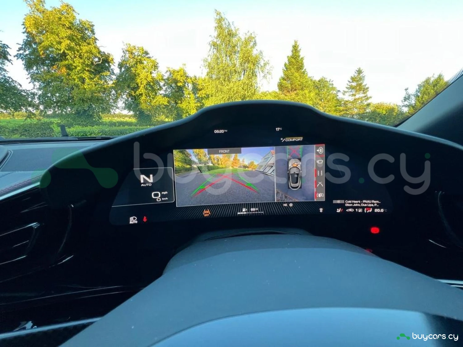 Системы помощи водителю: Автомобиль оснащен адаптивным круиз-контролем с автоматическим экстренным торможением, системой контроля полосы движения, ассистентом удержания в полосе и мониторингом слепых зон. Включены передние и задние парктроники, камера заднего вида, система кругового обзора и мониторинг давления и температуры в шинах (TPTMS). Переключатель Manettino с пятью режимами—Wet, Comfort, Sport, Race и ESC OFF—позволяет настроить автомобиль под любые условия вождения.