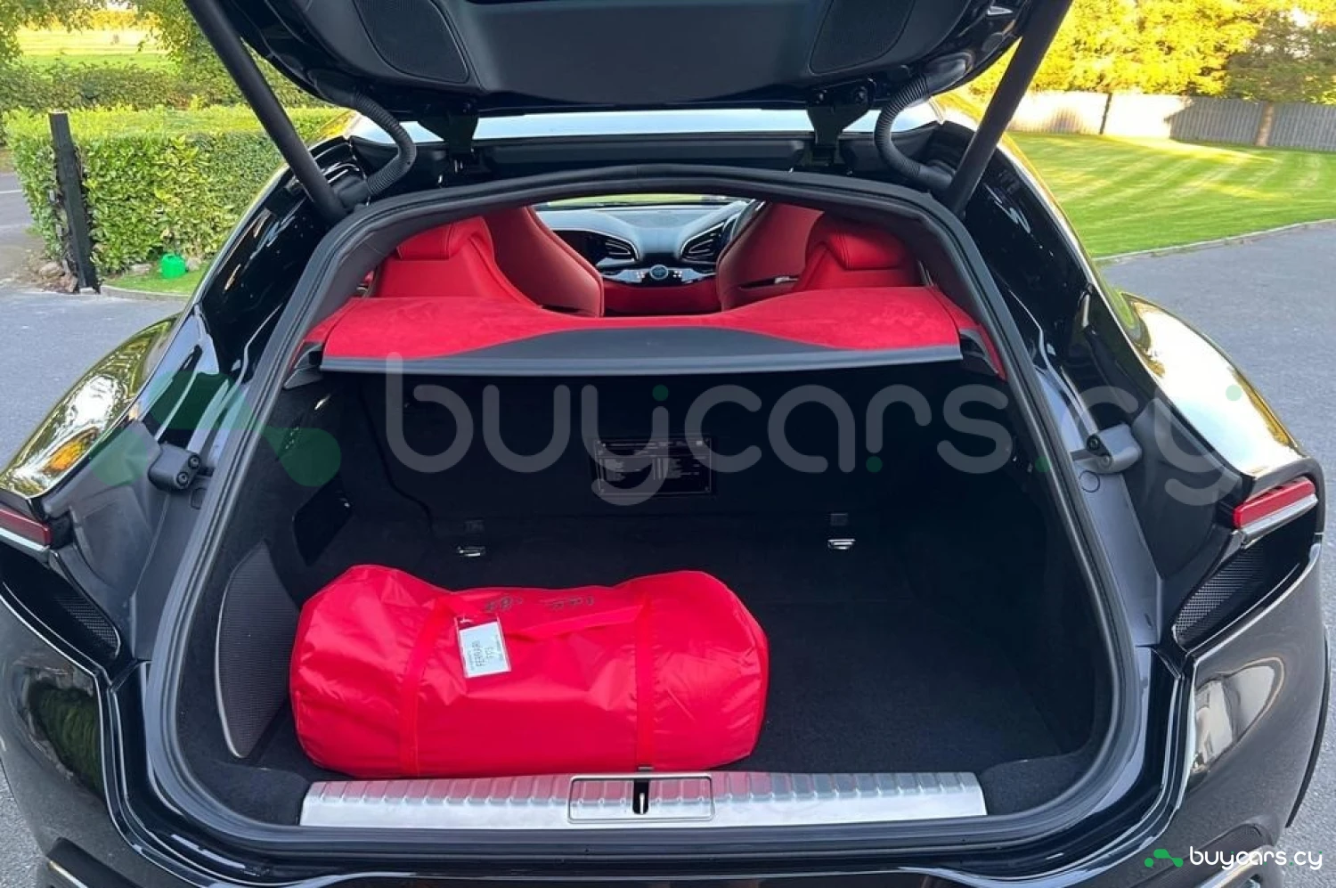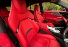 Интерьер: Красный полностью замшевый интерьер сочетается с сиденьями, полностью отделанными алькантарой (дополнительная опция), а также алькантарой Rosso (дополнительная опция). Панель приборов из карбона (дополнительная опция) и 16-дюймовая полностью цифровая приборная панель создают ультрасовременный стиль кокпита. Кожаная полоса на верхней дуге рулевого колеса (дополнительная опция) и набор для багажника добавляют уникальности и практичности.