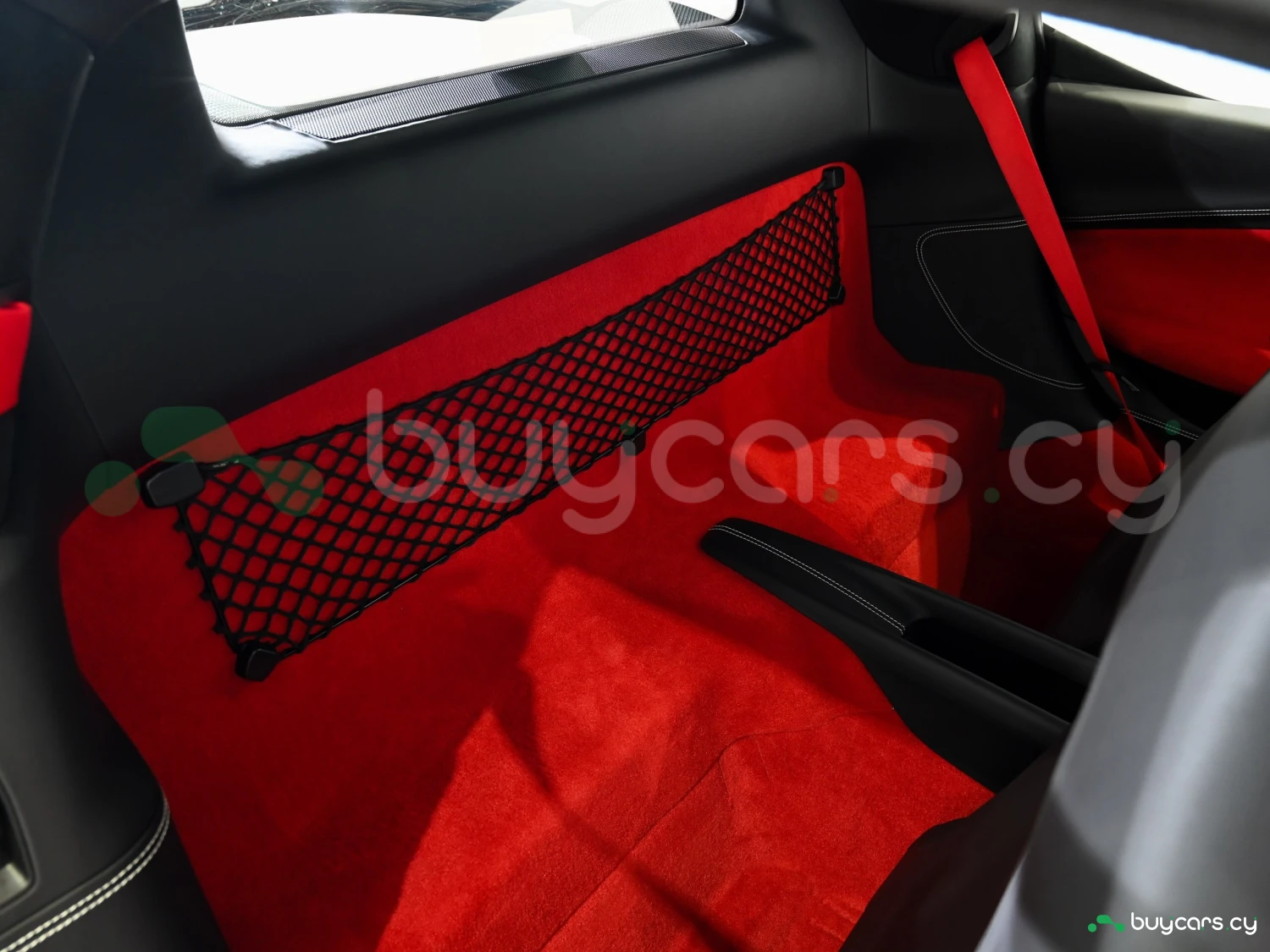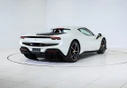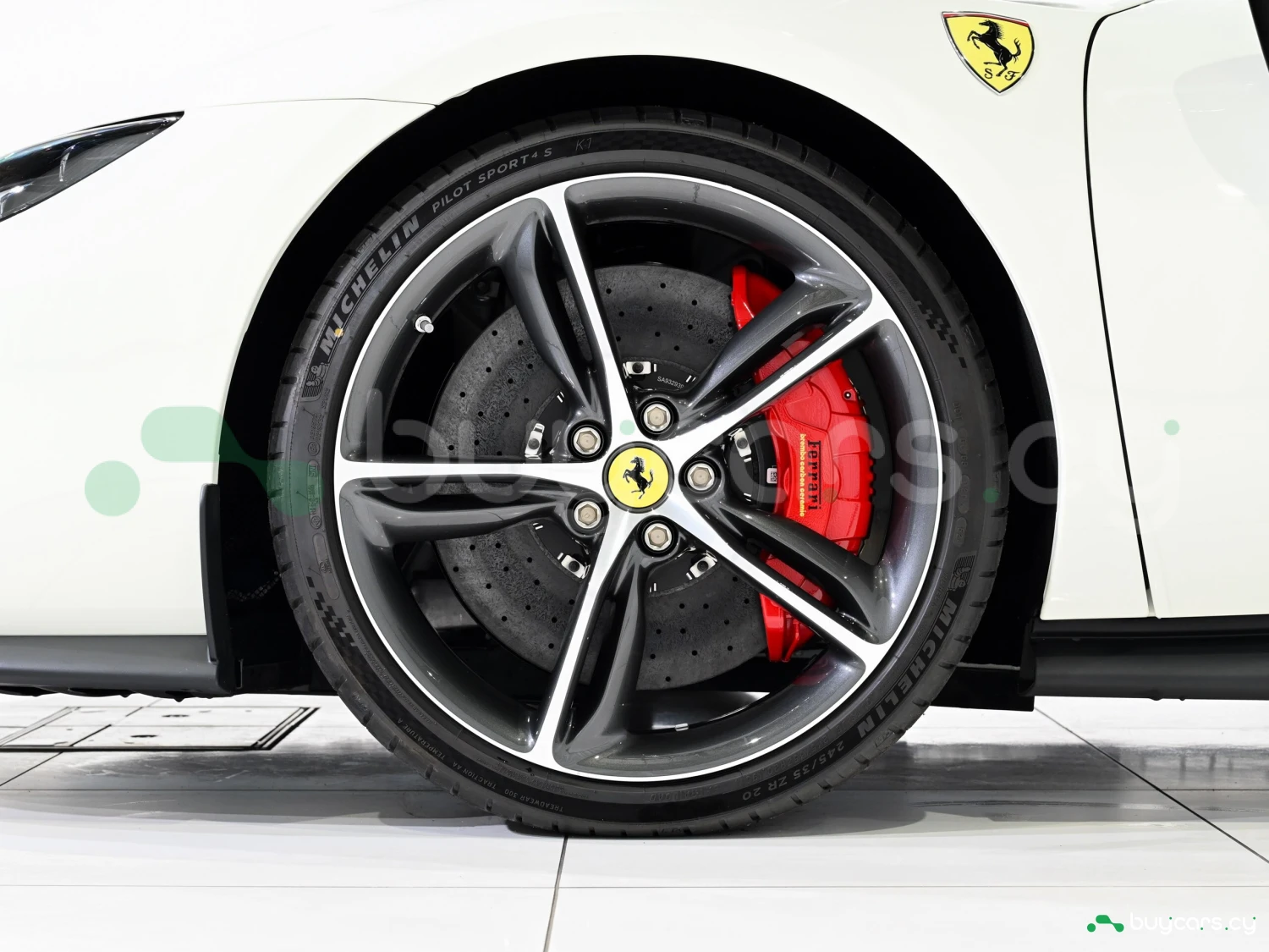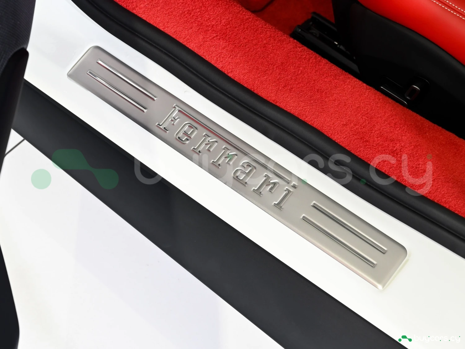 Дизайн автомобиля гармонично сочетает классические формы Ferrari с современными аэродинамическими решениями. Цвет Bianco Avus подчёркивает динамичные линии кузова, а такие элементы, как активный задний спойлер, светодиодная оптика и скрытые дверные ручки, подчеркивают спортивный дух модели. Пропорции и архитектура автомобиля указывают на его ориентацию на высокие скорости и маневренность.