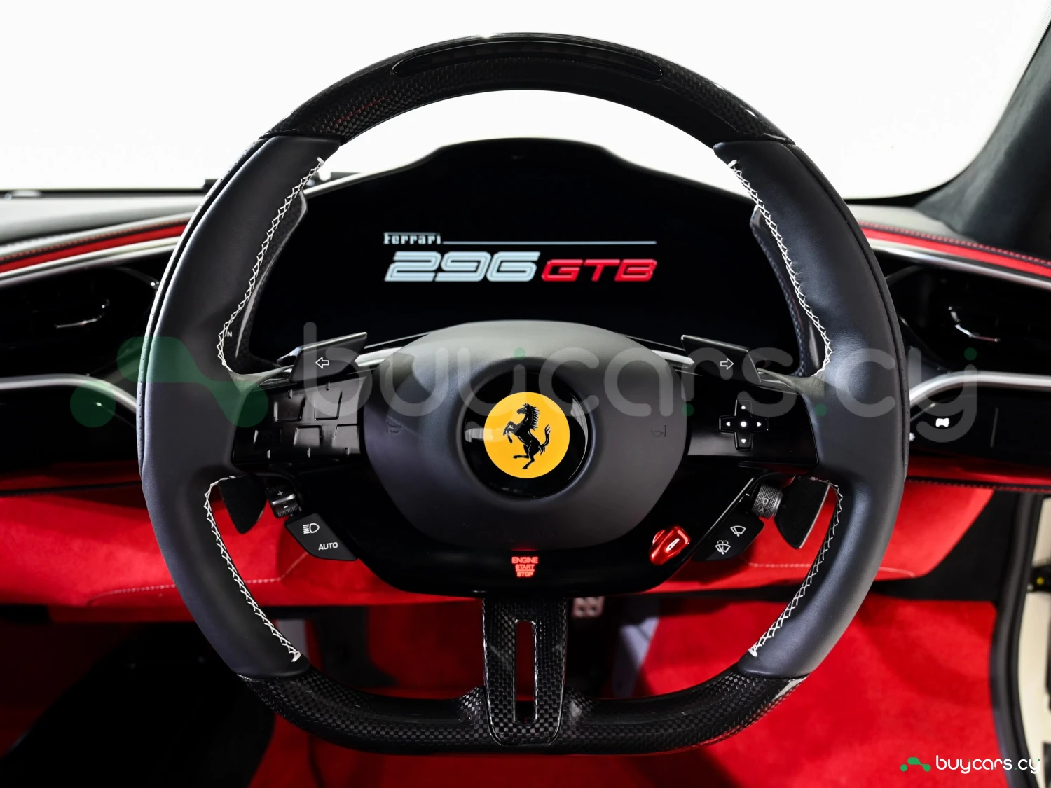 Салон 296 GTB сочетает в себе современный минимализм и роскошь в лучших традициях Ferrari. Вентилируемые и полностью электрорегулируемые сиденья обеспечивают оптимальную посадку и комфорт даже во время активного вождения. Цифровая приборная панель и мультимедийная система интегрированы в рулевое колесо и центральную консоль, делая управление функциями интуитивно понятным. Интерьер оформлен с использованием премиальных материалов и выполнен с ювелирной точностью.