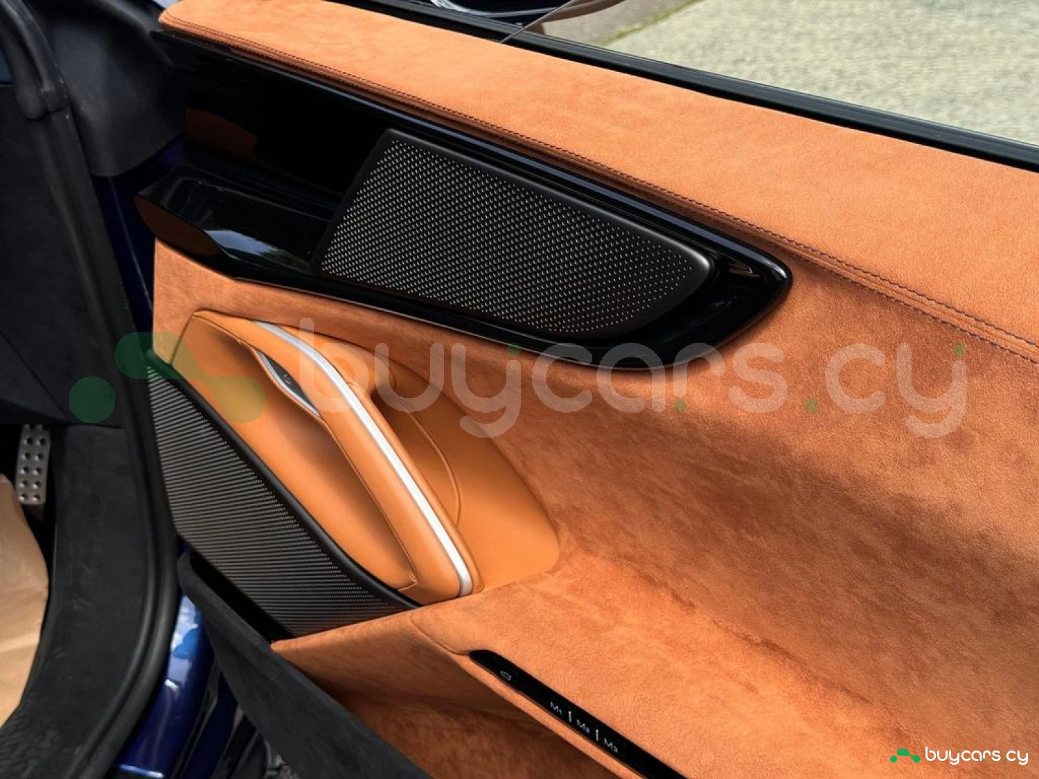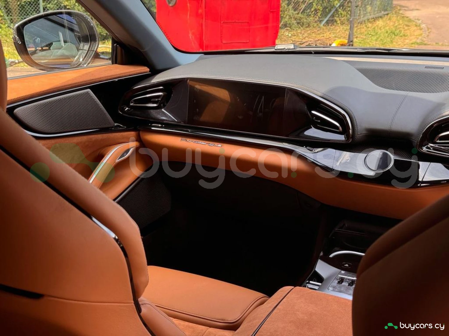 Рулевое колесо из углеродного волокна с LED-индикаторами, полностью электрические сиденья, система кругового обзора (360°), салон с отделкой из коричневой замши.
