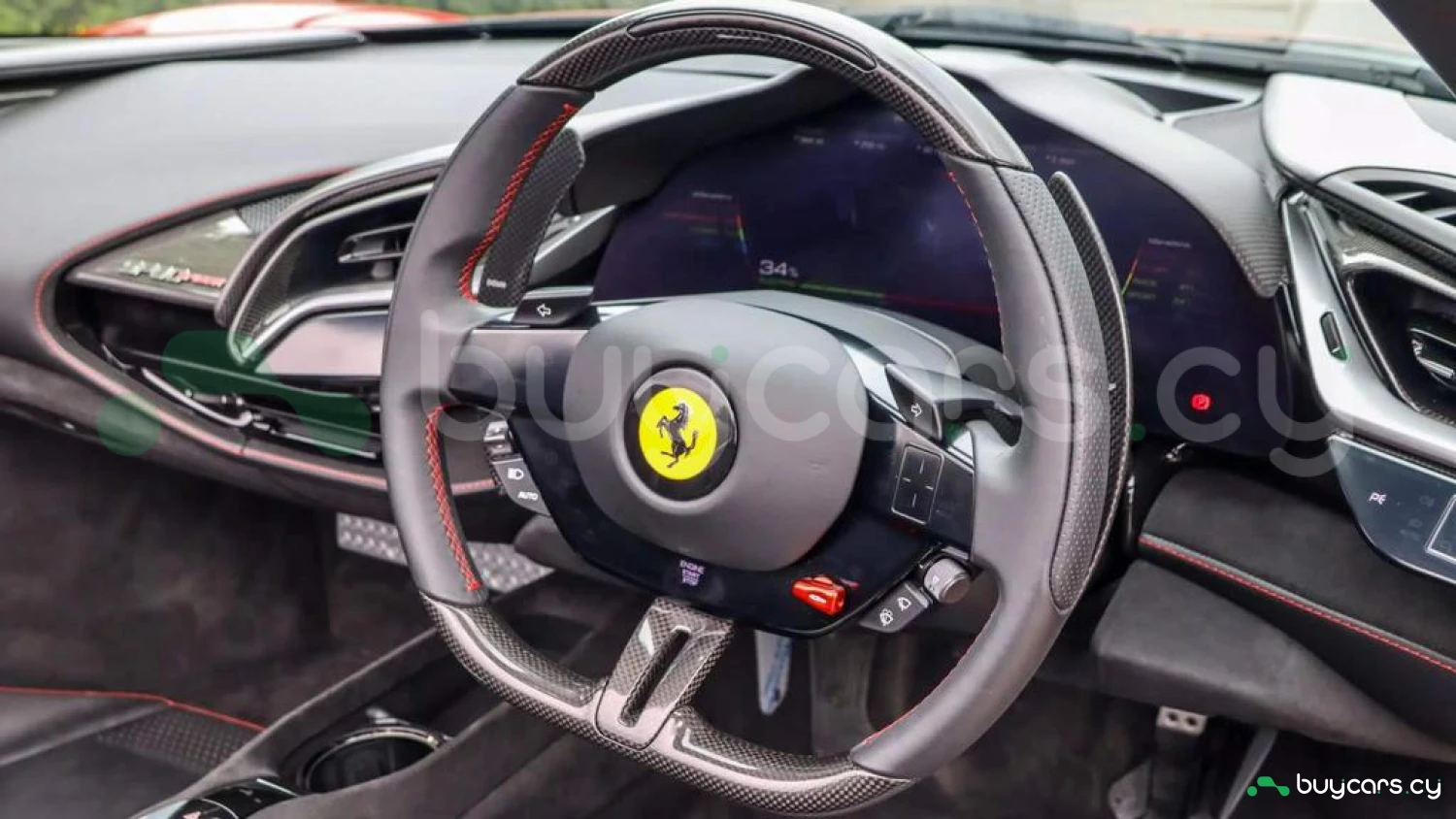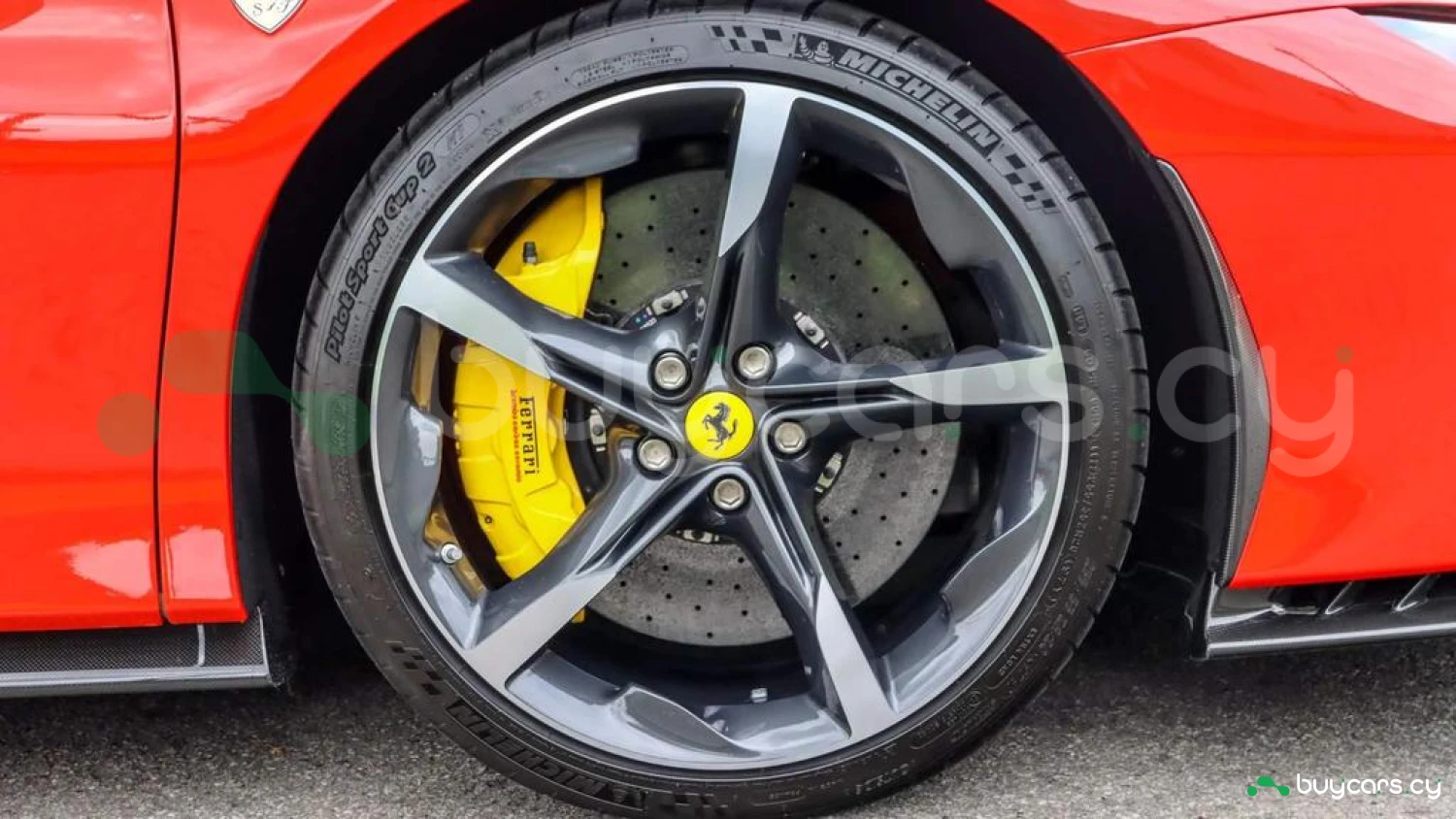 Интерьер и комфорт: Гоночные сиденья Daytona с лифтом, Вышитый логотип "Скачущий жеребец" на подголовниках, Контрастные цветные вставки в салоне, Коврики из премиальной кожи и алькантары, Двухзонный климат-контроль, Кнопка запуска двигателя на руле, Бесключевой доступ, Мультимедийная система, Коврики с вышитым логотипом Ferrari.